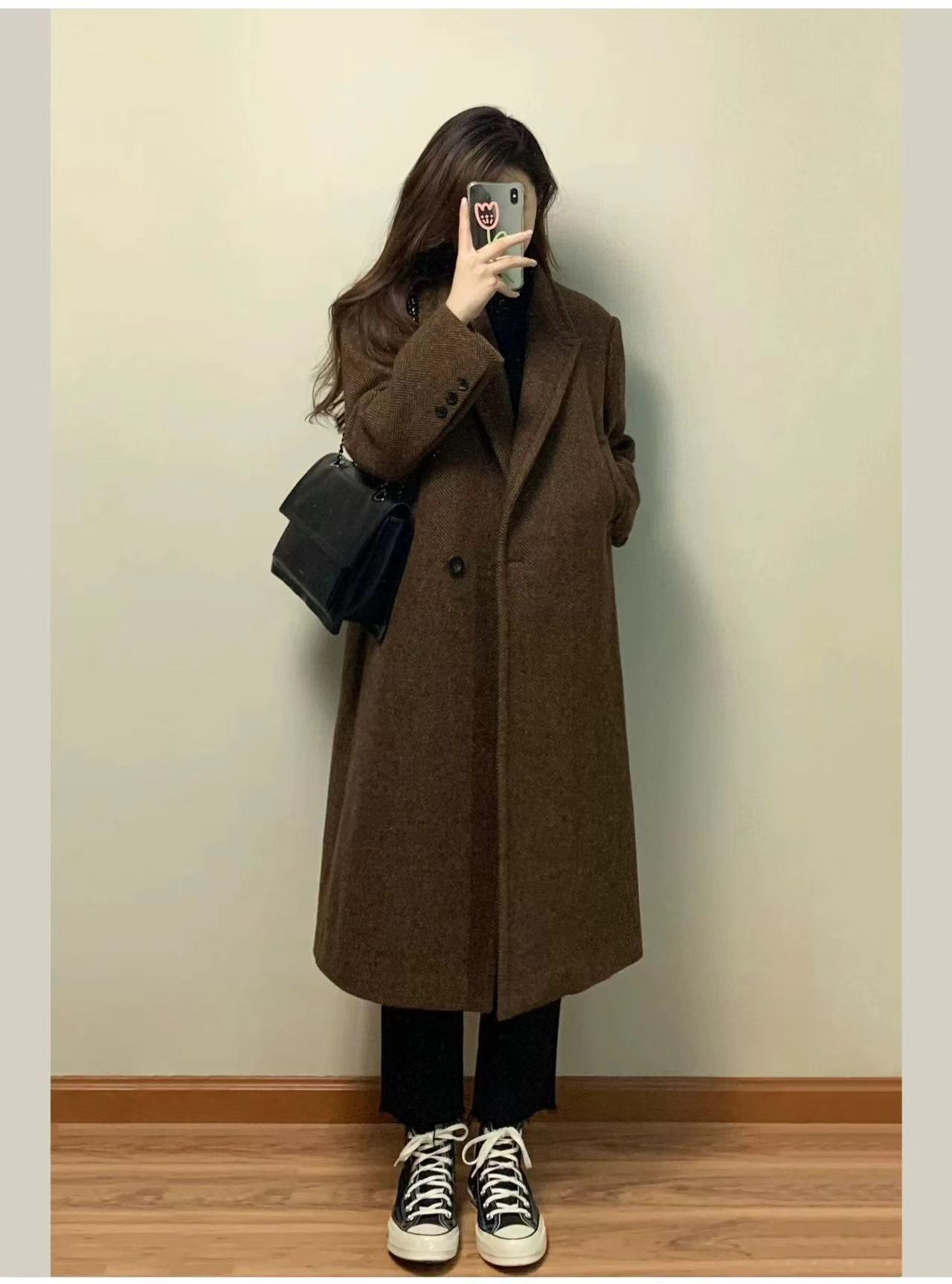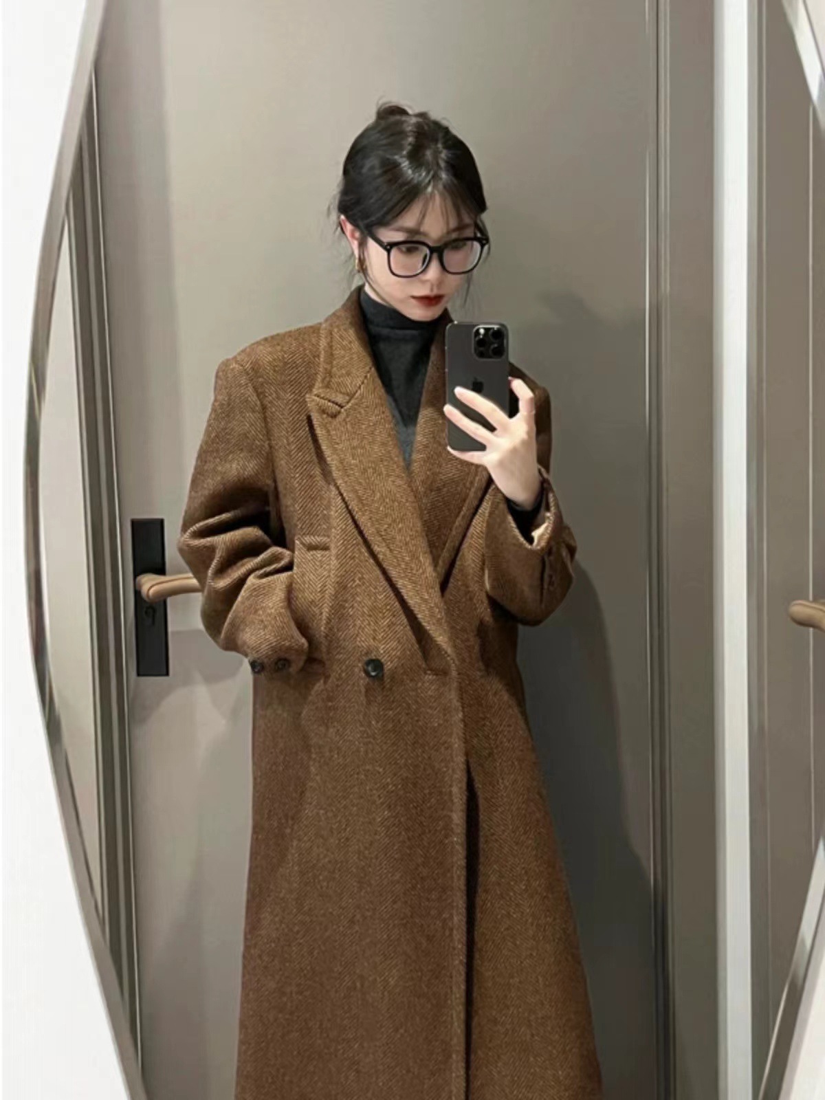 가을 겨울 여성 모직 코트 헤링본 모직 코트 2025 새로운 스타일 고급 두꺼운 햅번 스타일이 올해 인기가 있습니다스토어 가기