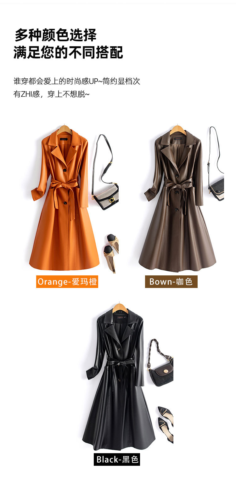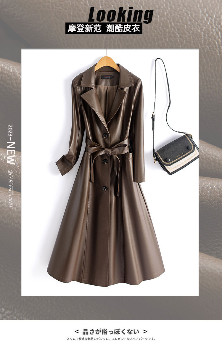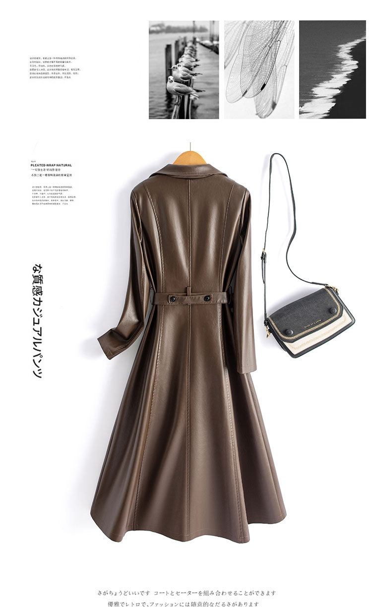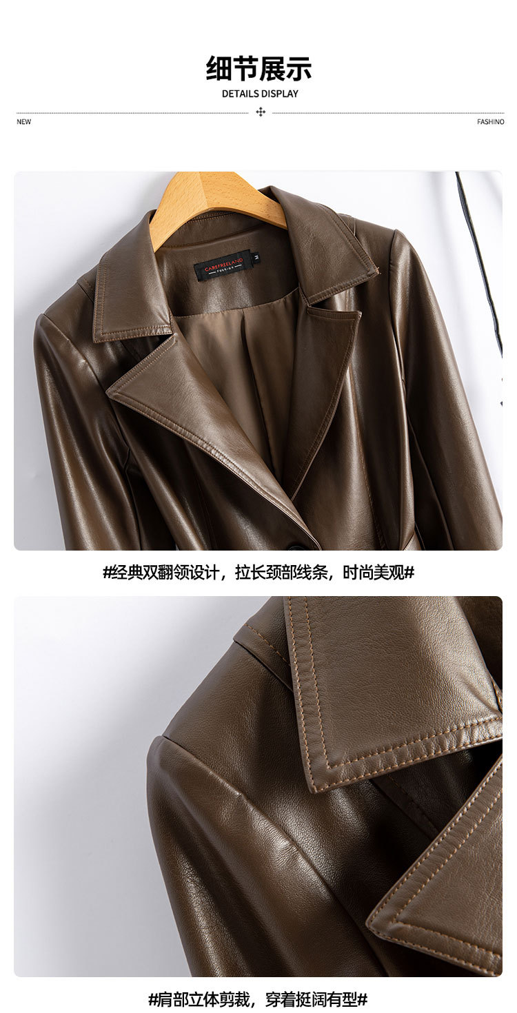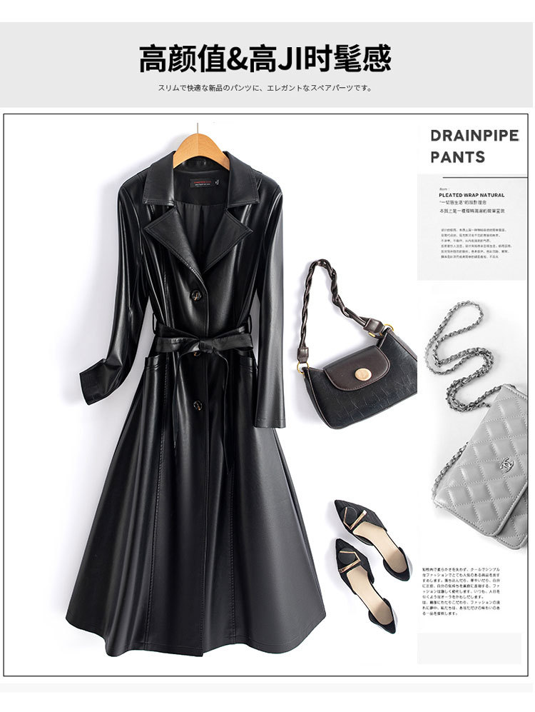 卡芙兰帝2024秋新款皮衣女皮风衣女士长款过膝皮外套修身显瘦百搭스토어 가기
