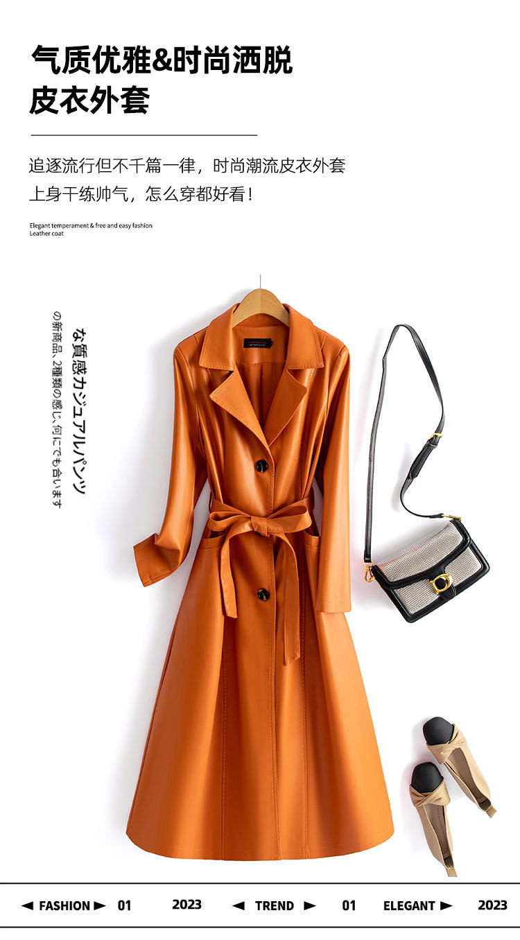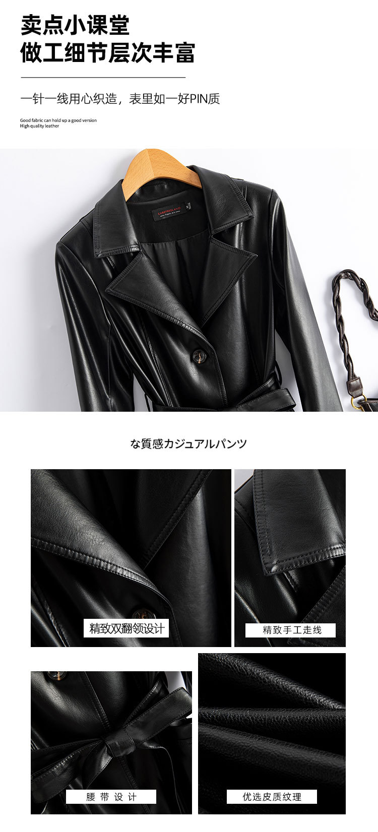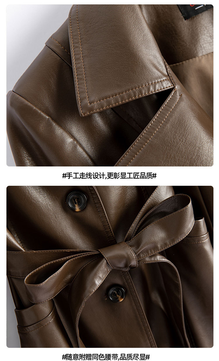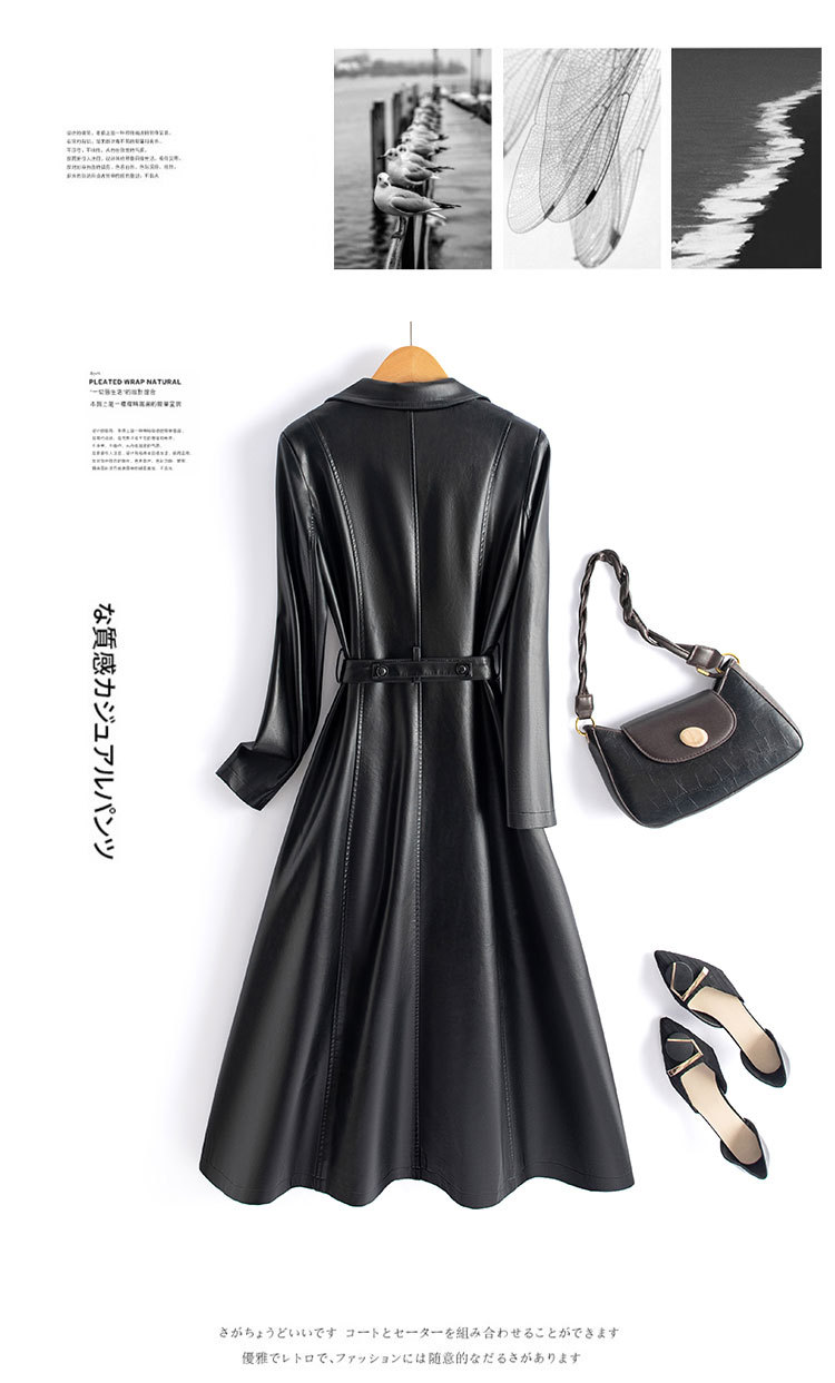 卡芙兰帝2024秋新款皮衣女皮风衣女士长款过膝皮外套修身显瘦百搭스토어 가기