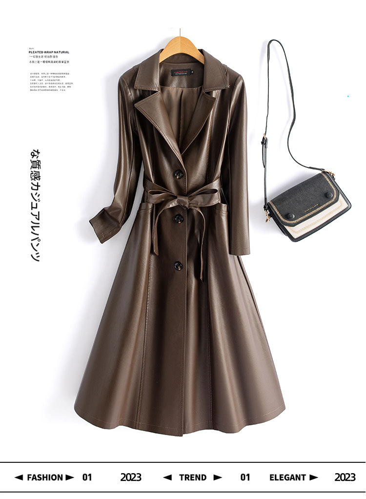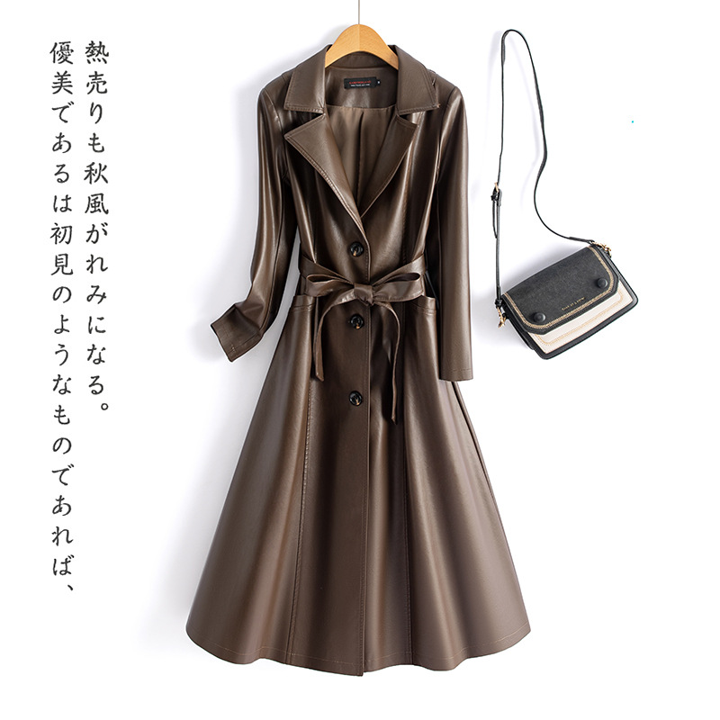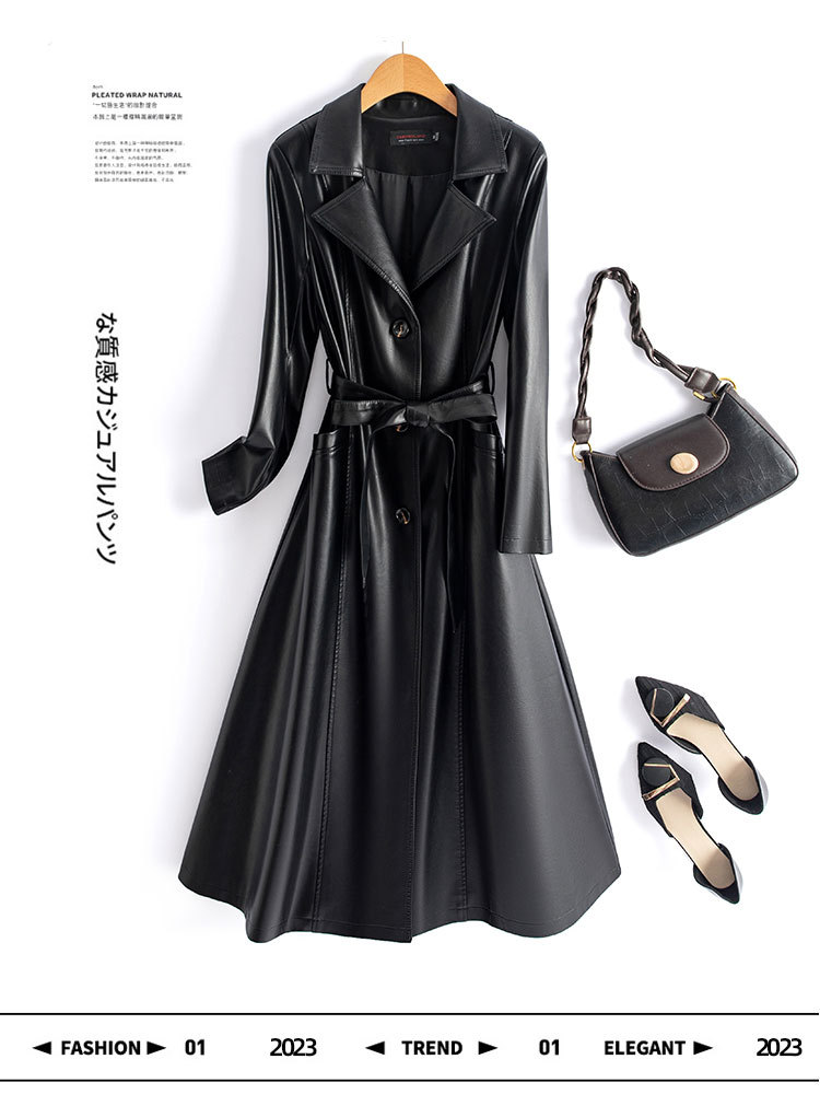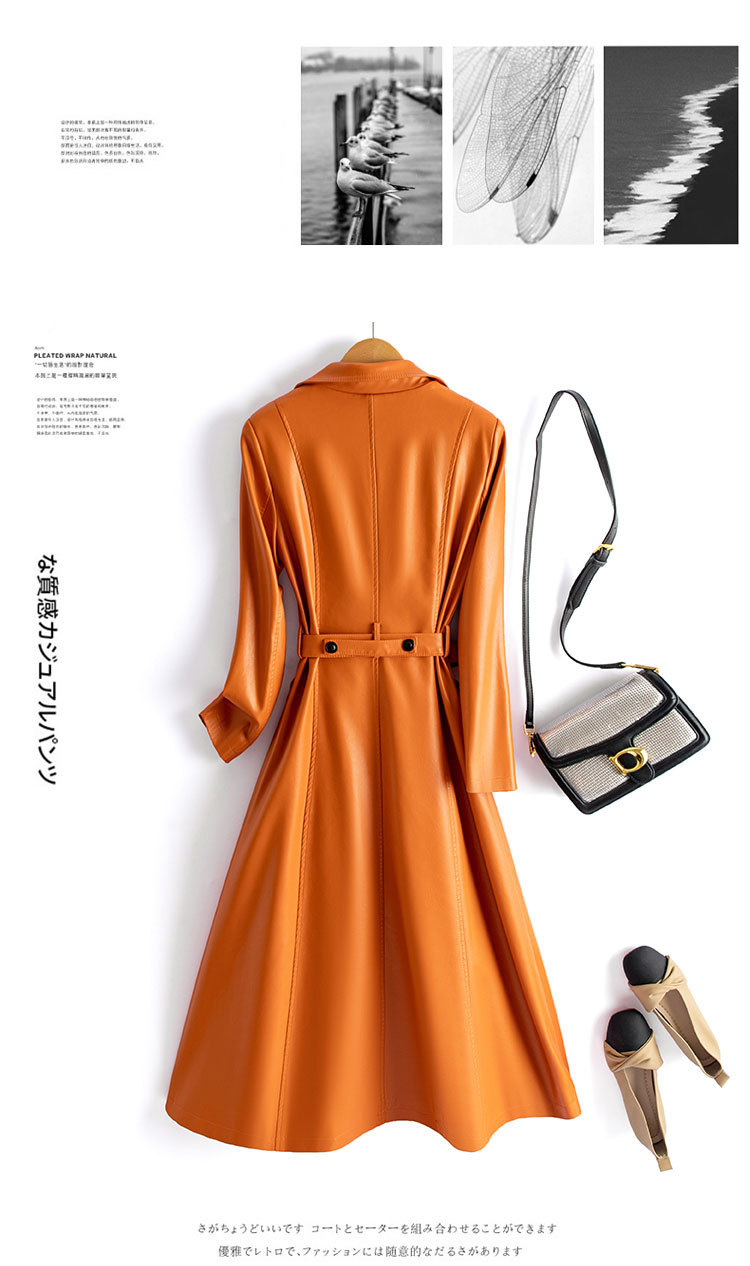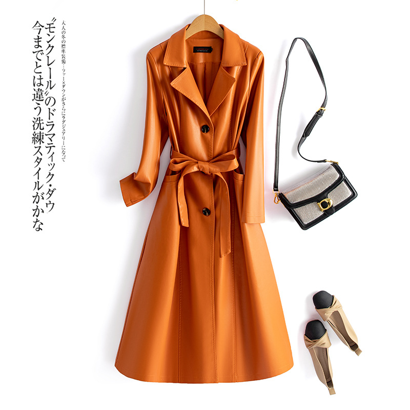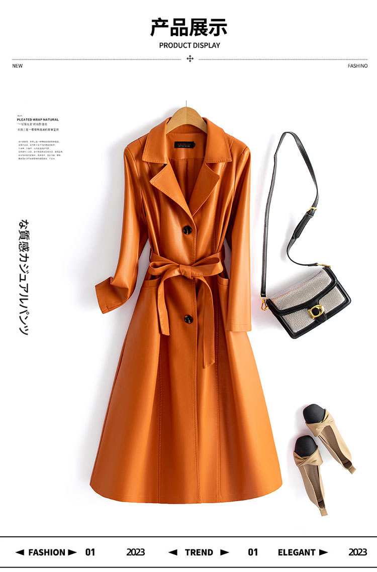 卡芙兰帝2024秋新款皮衣女皮风衣女士长款过膝皮外套修身显瘦百搭스토어 가기