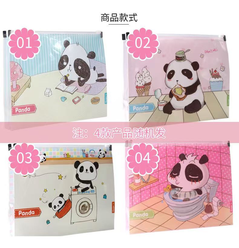 Guangbo HA002873 지퍼 가방 A5 지퍼 가방 만화 팬더 파일 가방 학생 PP 저장 가방 주제 가방스토어 가기