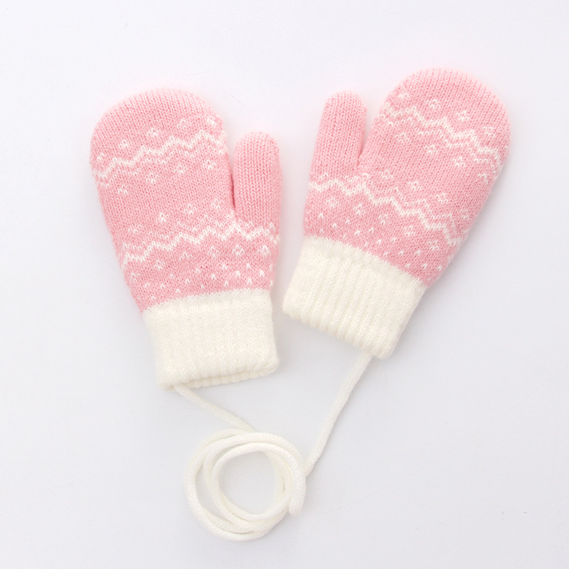 더블 레이어 기모 두꺼운 야외 감기 방지 목 어린이 가방 손가락 니트 귀여운 소녀 겨울 장갑 어린이 따뜻한 장갑