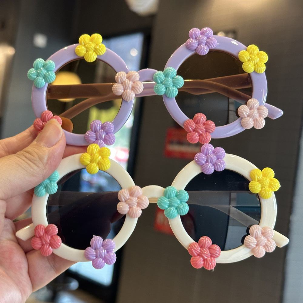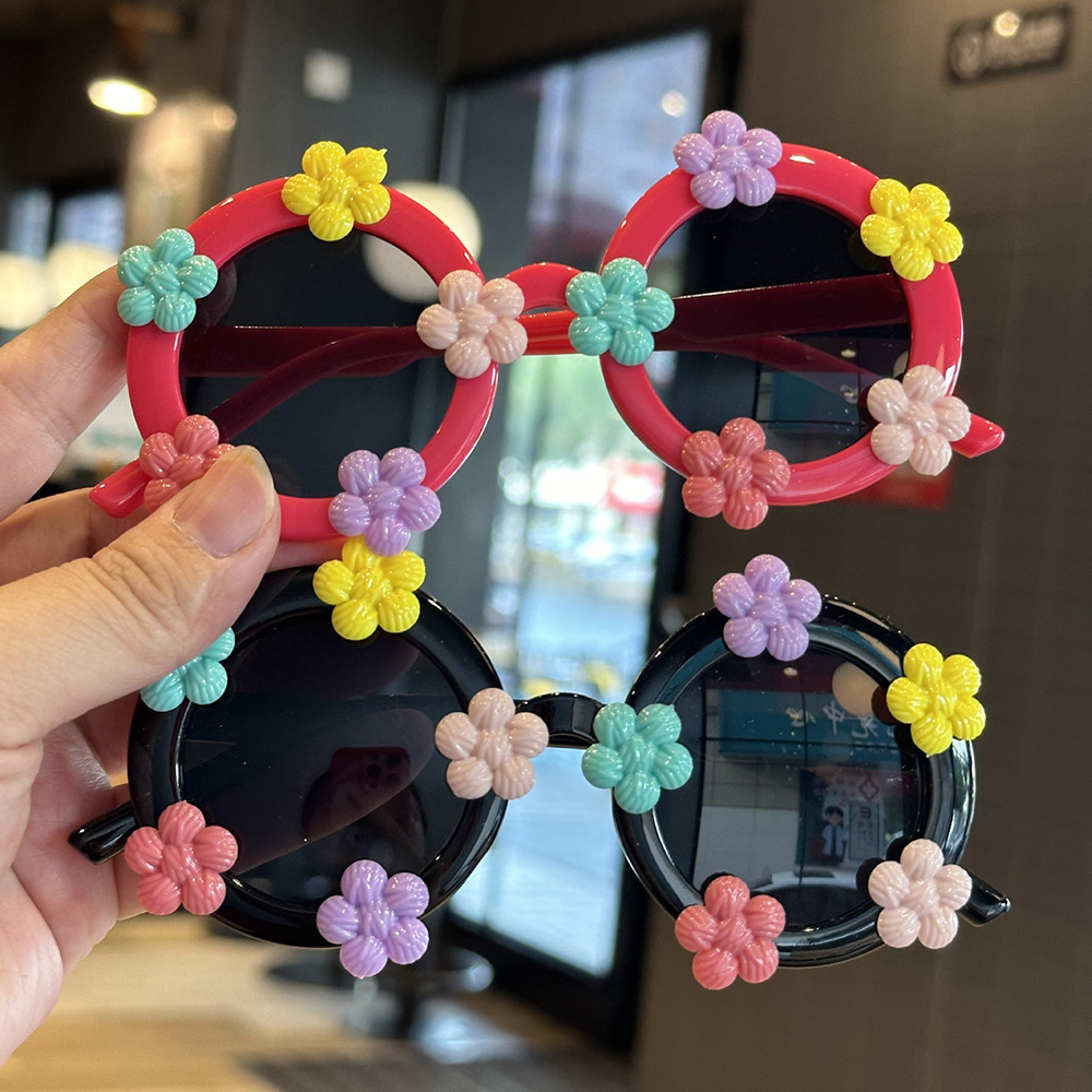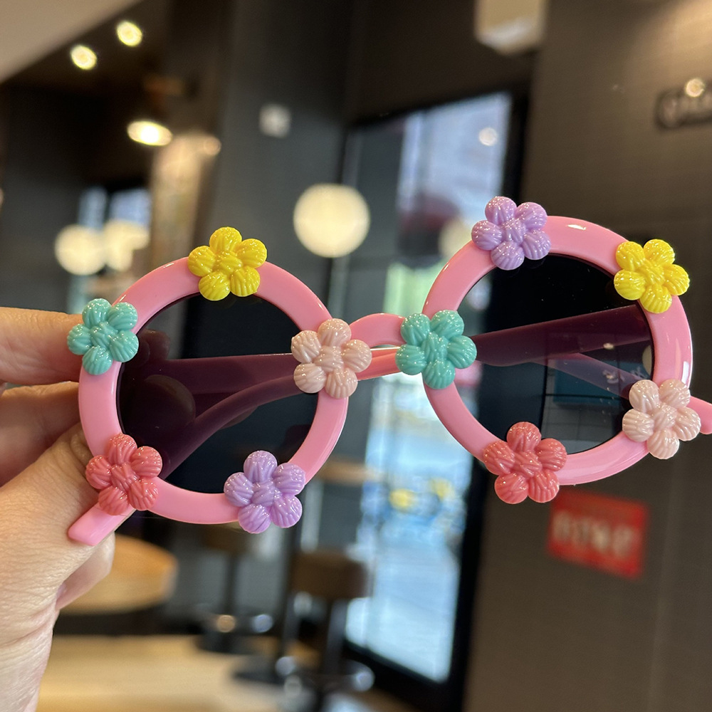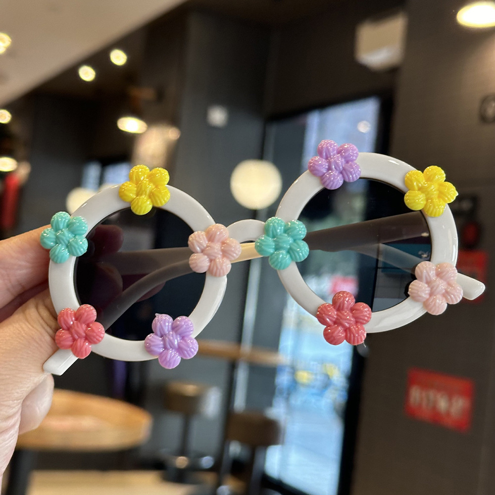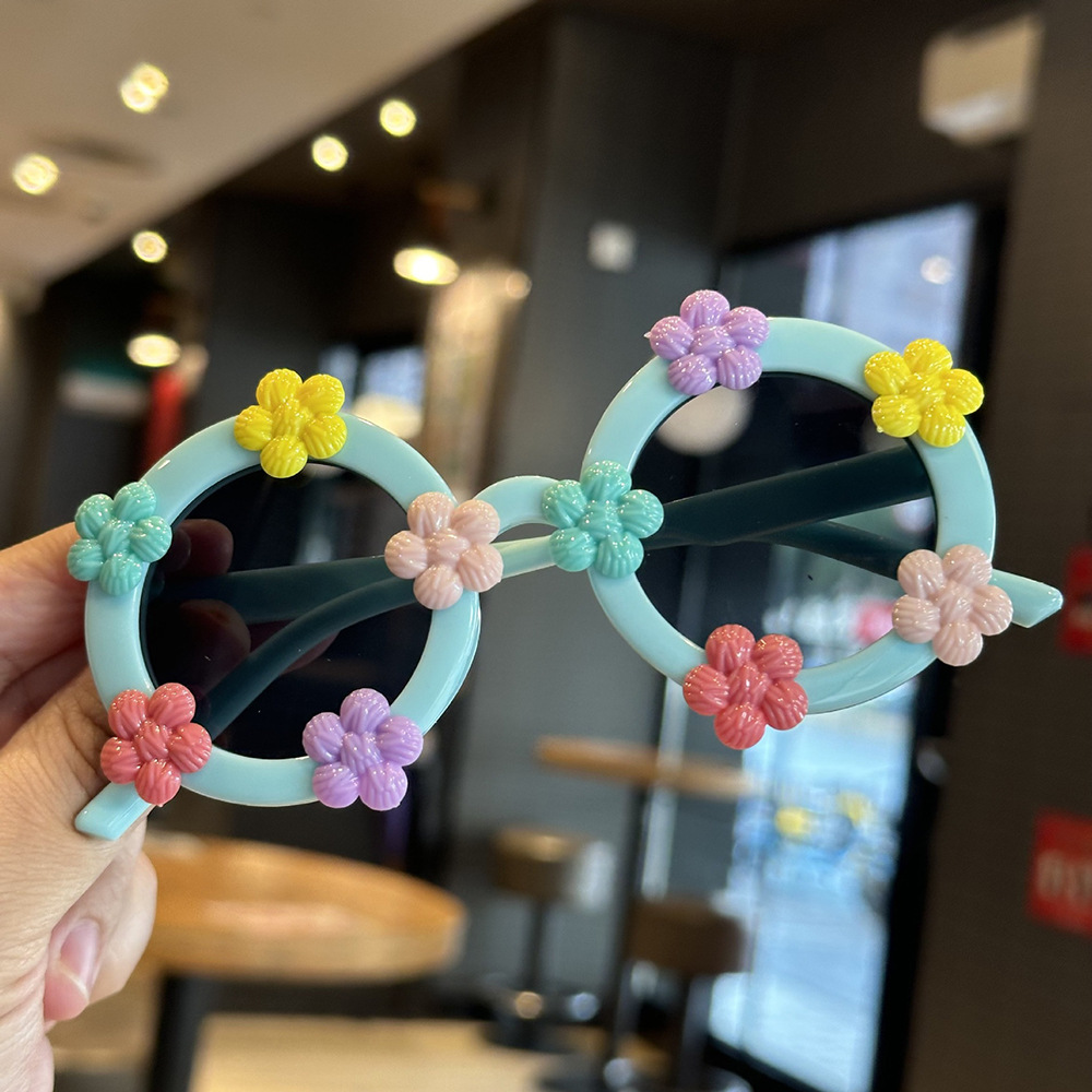 작은 꽃 어린이 귀여운 선글라스 한국 스타일 신선한 라운드 프레임 달콤한 선글라스 소녀들을위한 국경 꽃 안경