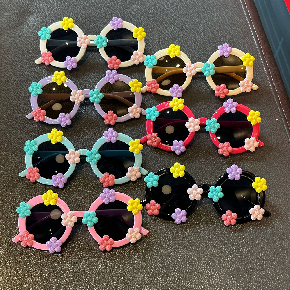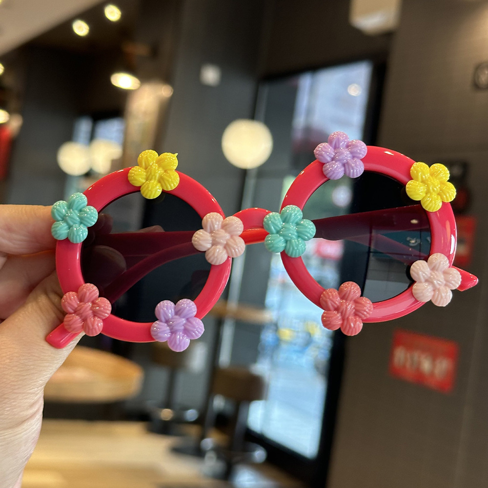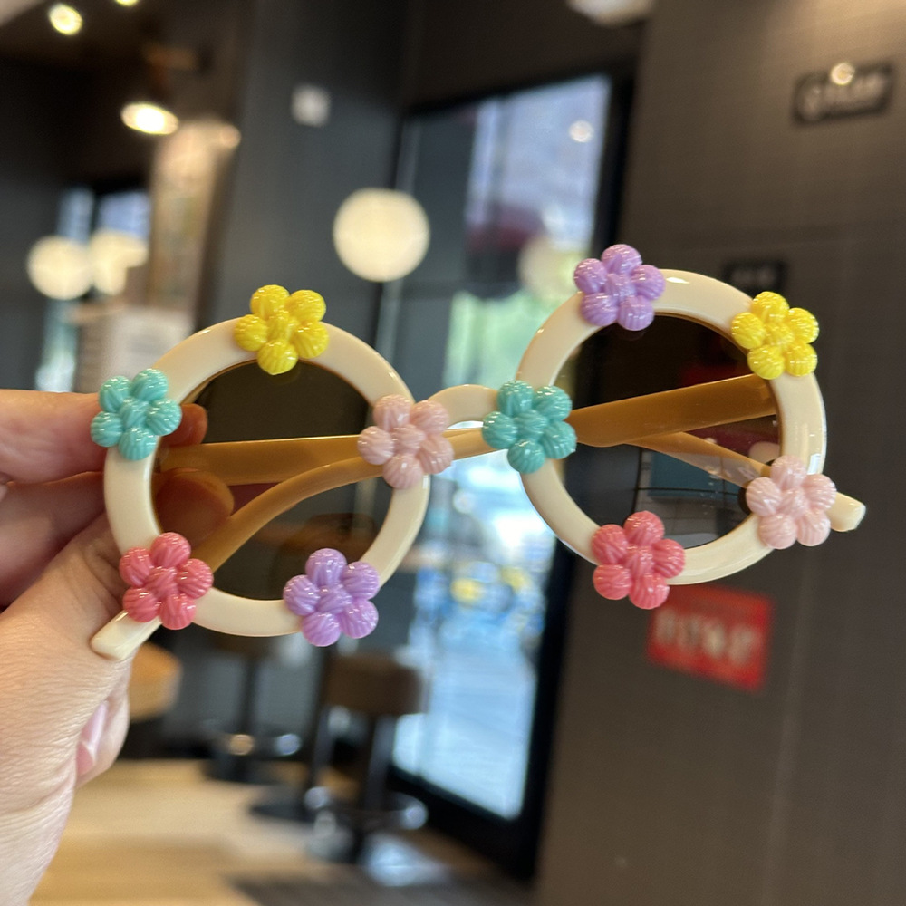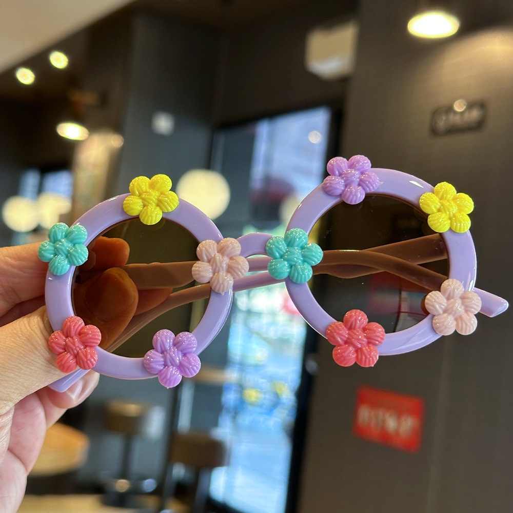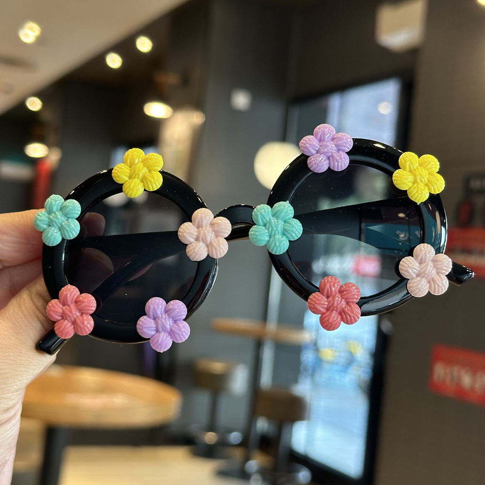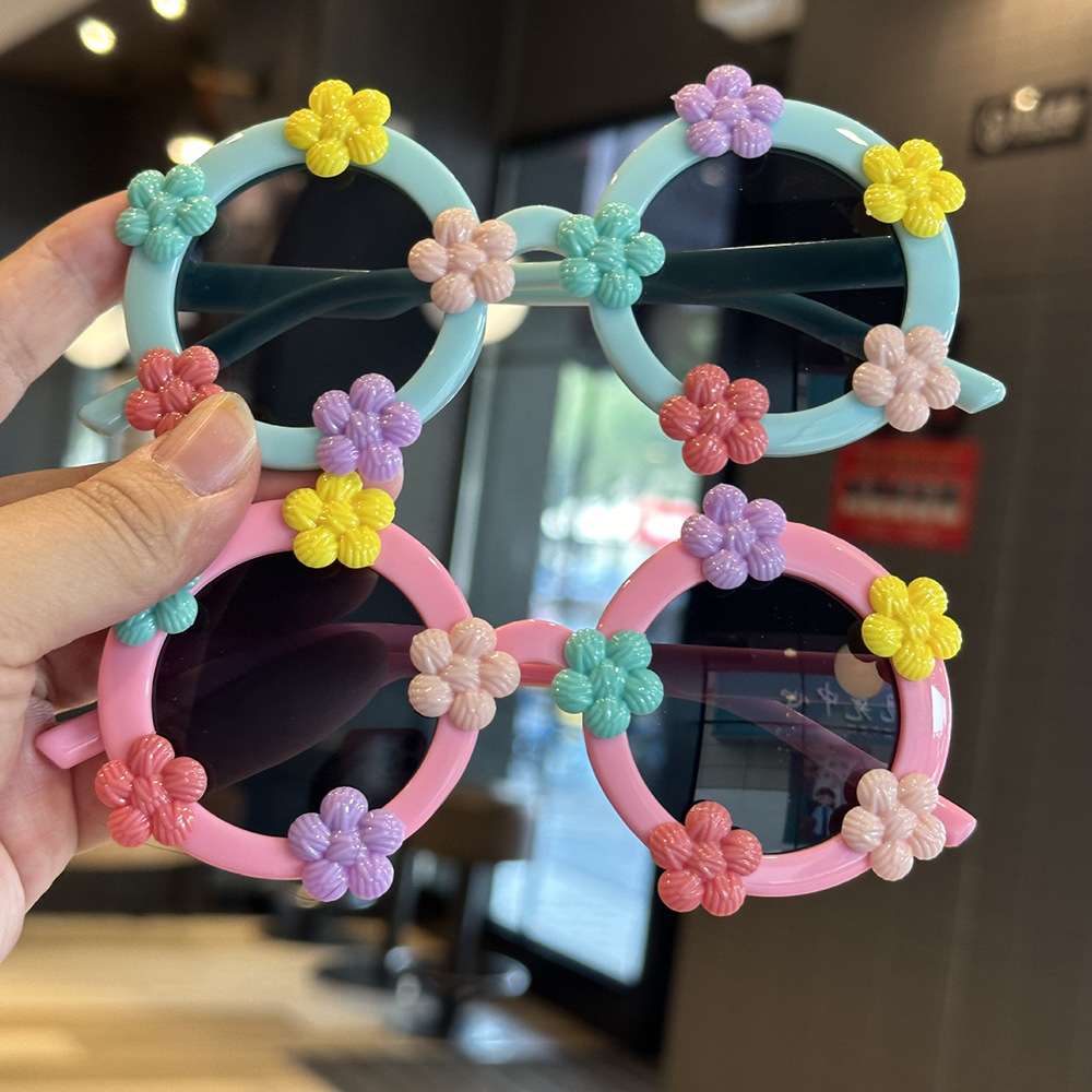 작은 꽃 어린이 귀여운 선글라스 한국 스타일 신선한 라운드 프레임 달콤한 선글라스 소녀들을위한 국경 꽃 안경