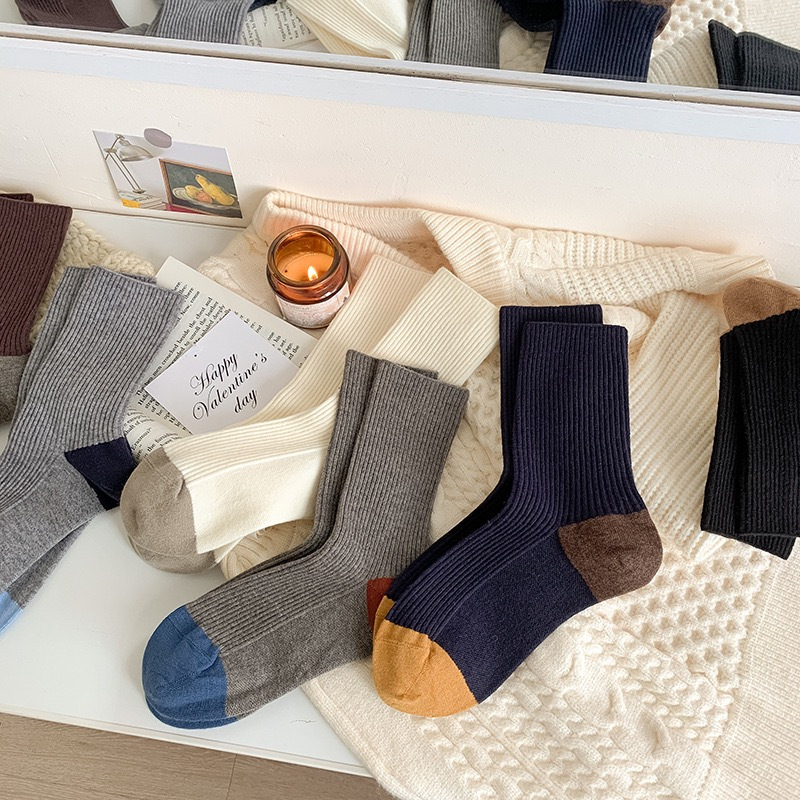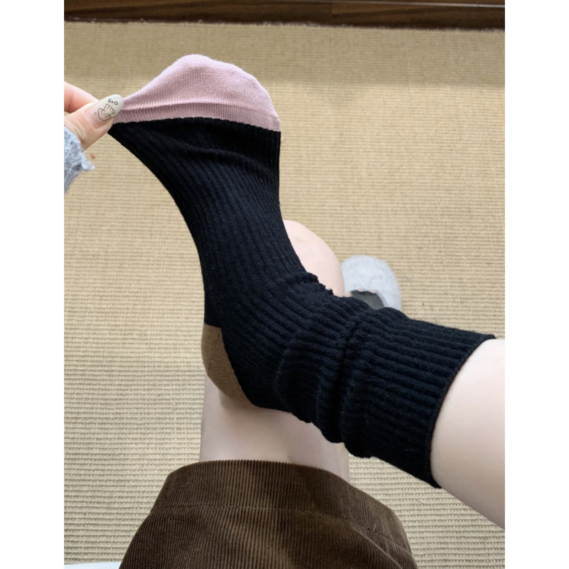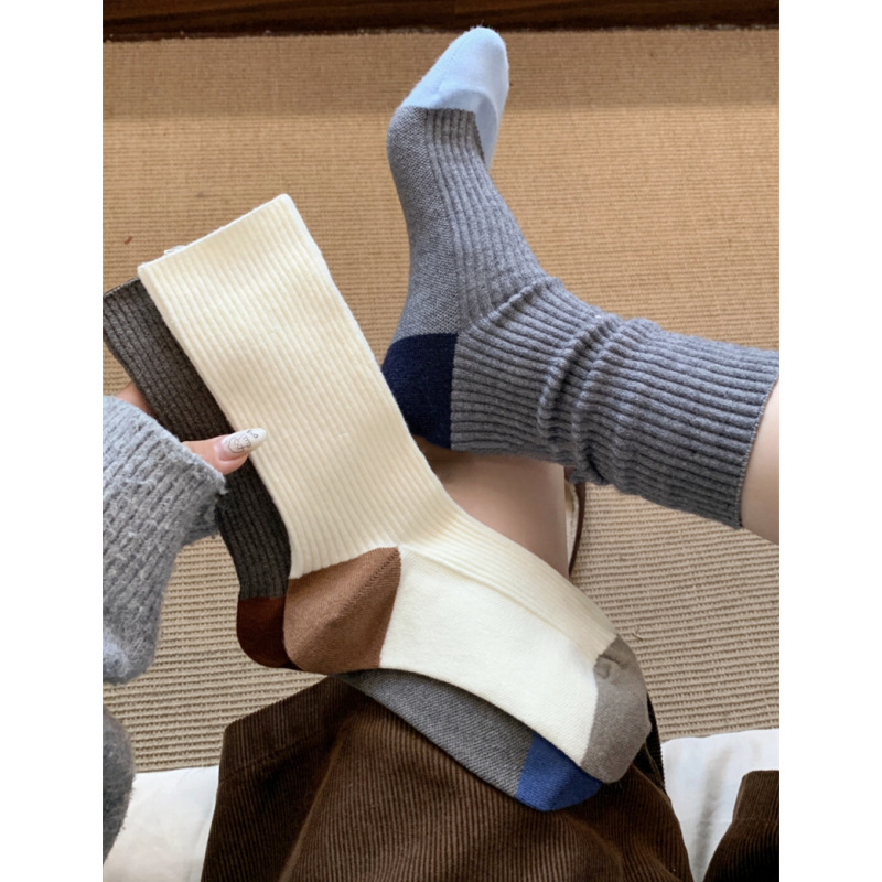 가을과 겨울 색상 일치하는 줄무늬 양모 양말 어린이 튜브 양말 겨울 다목적 더블 바늘 구덩이 두꺼운 따뜻한 더미 양말