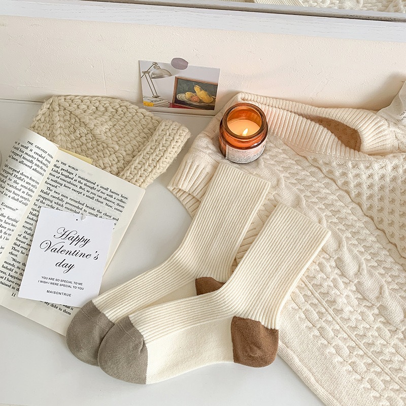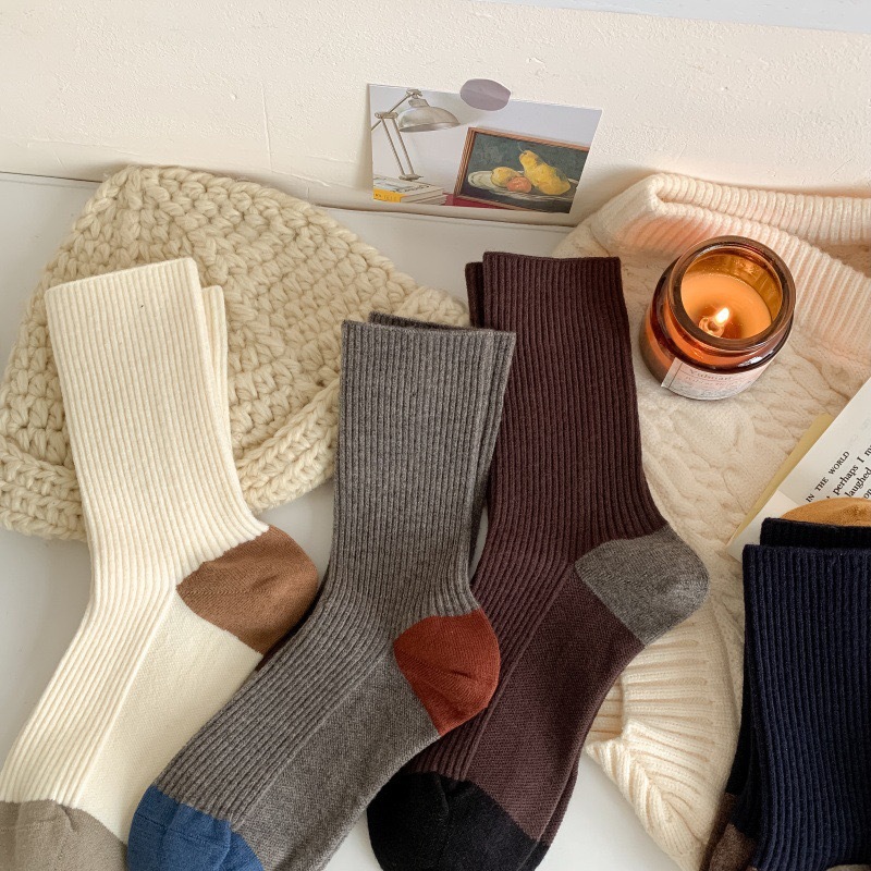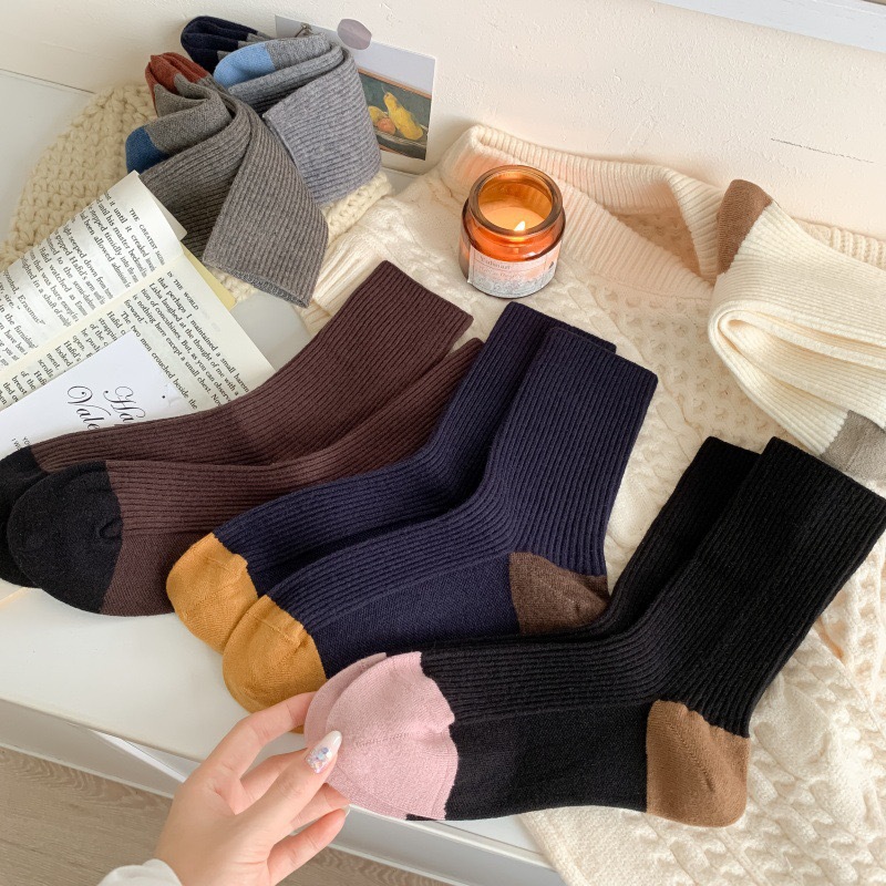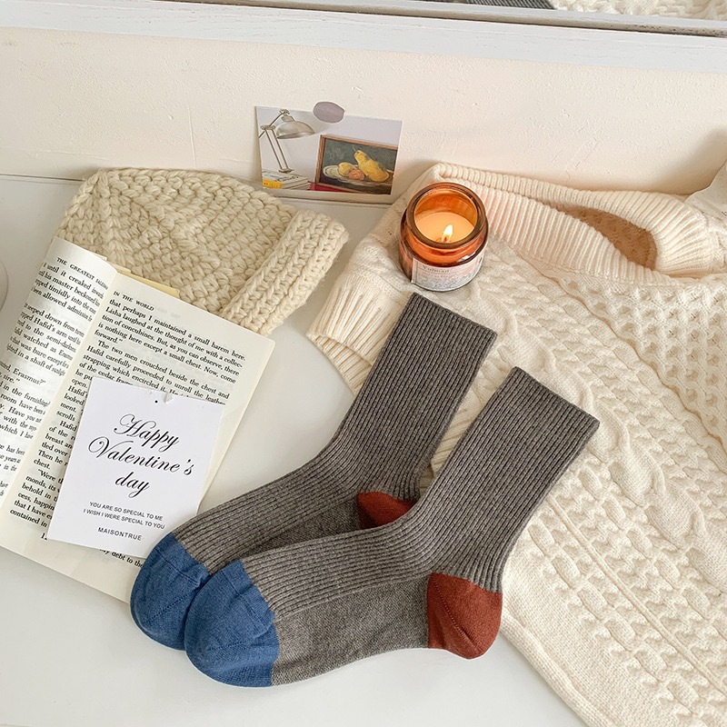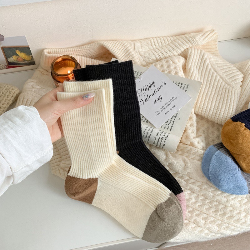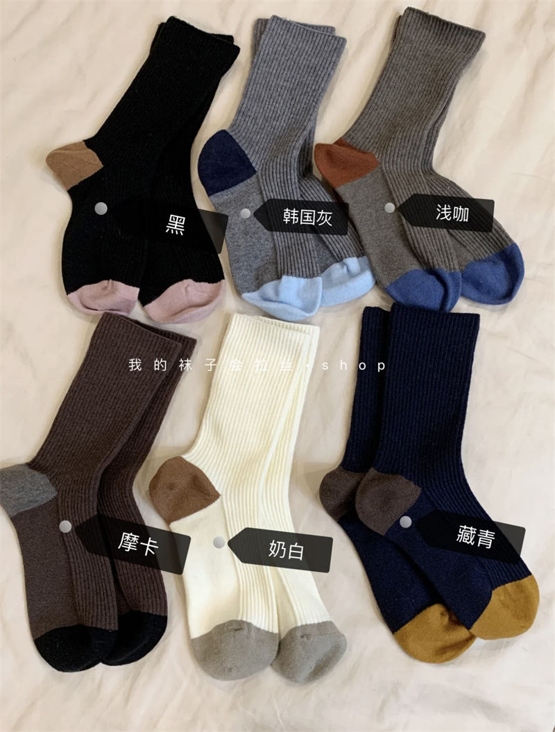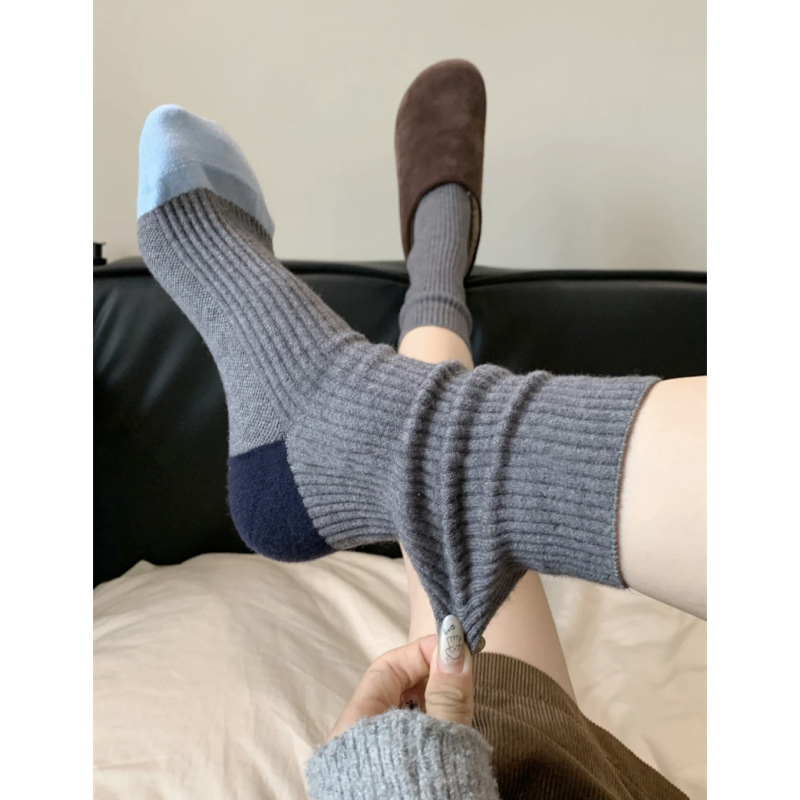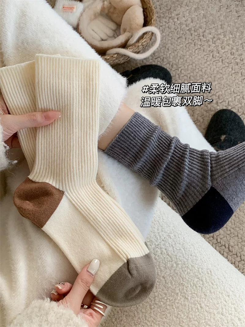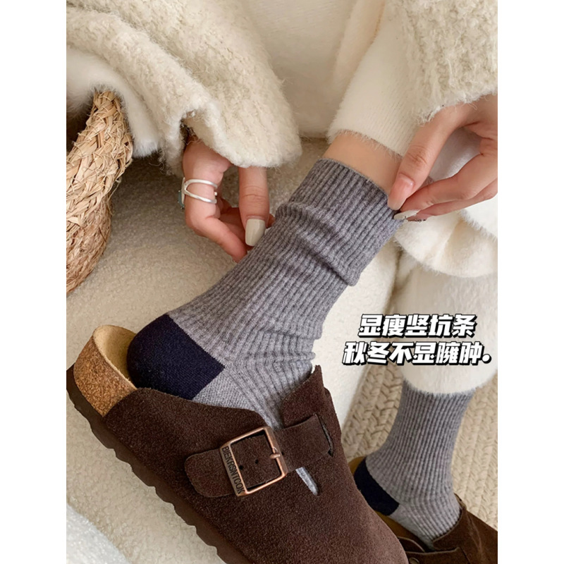 가을과 겨울 색상 일치하는 줄무늬 양모 양말 어린이 튜브 양말 겨울 다목적 더블 바늘 구덩이 두꺼운 따뜻한 더미 양말스토어 가기