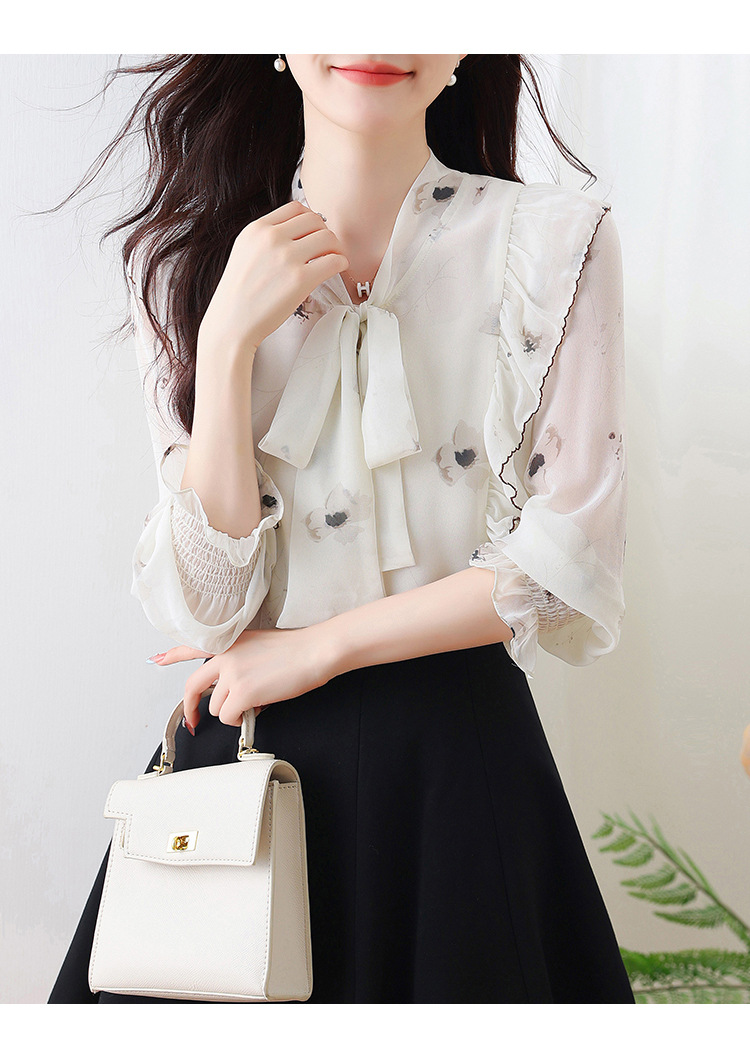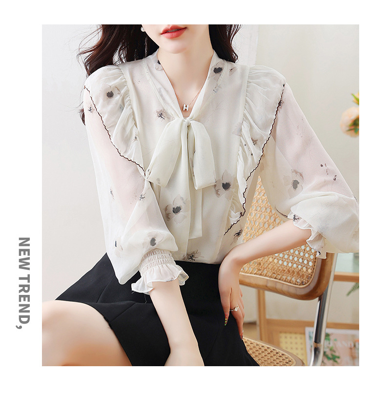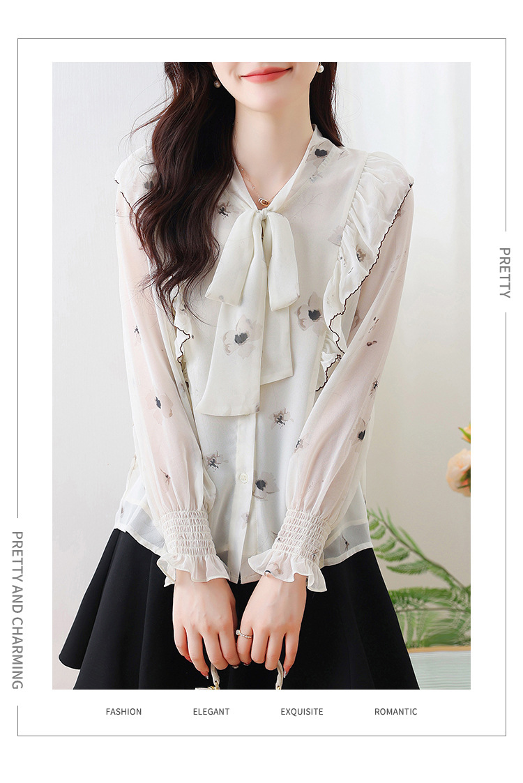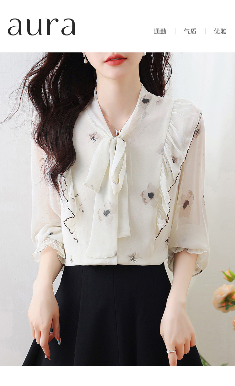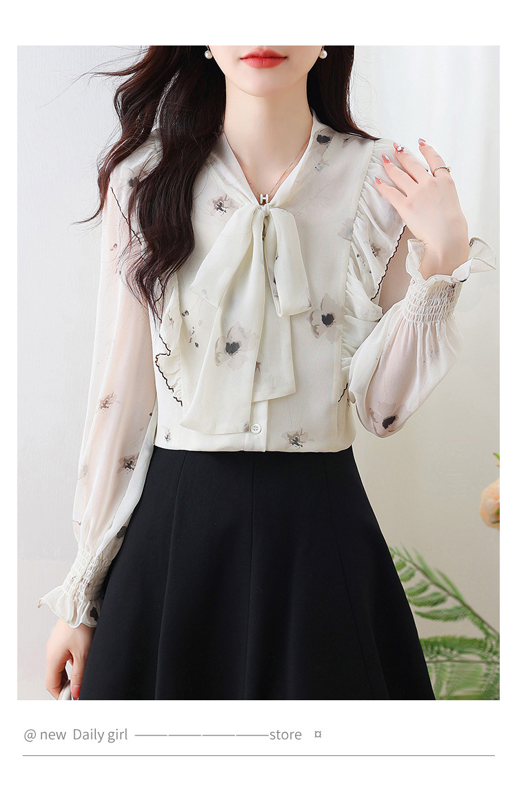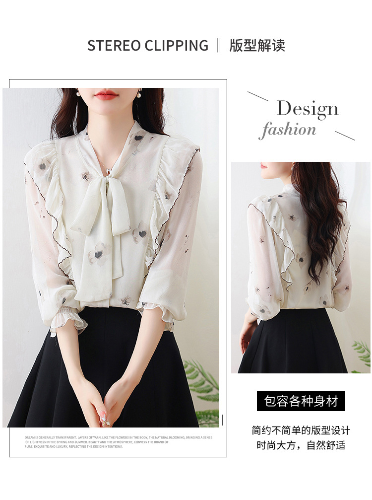 실제 촬영된 긴팔 칼라 쉬폰 셔츠 여성용 2025 가을 신상 패셔너블하고 다용도로 활용 가능한 나이를 줄여주는 루즈핏 상의스토어 가기