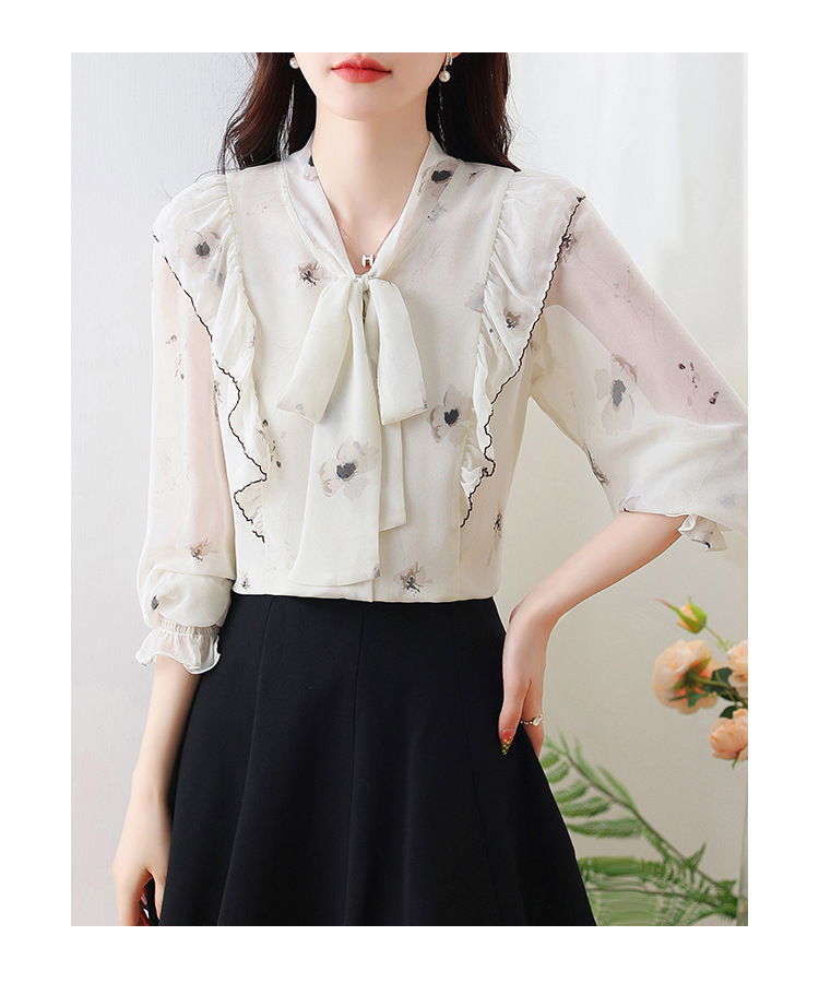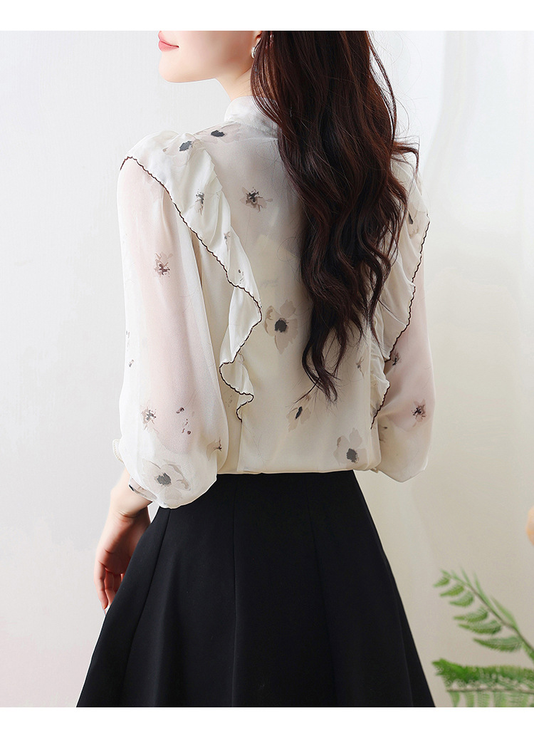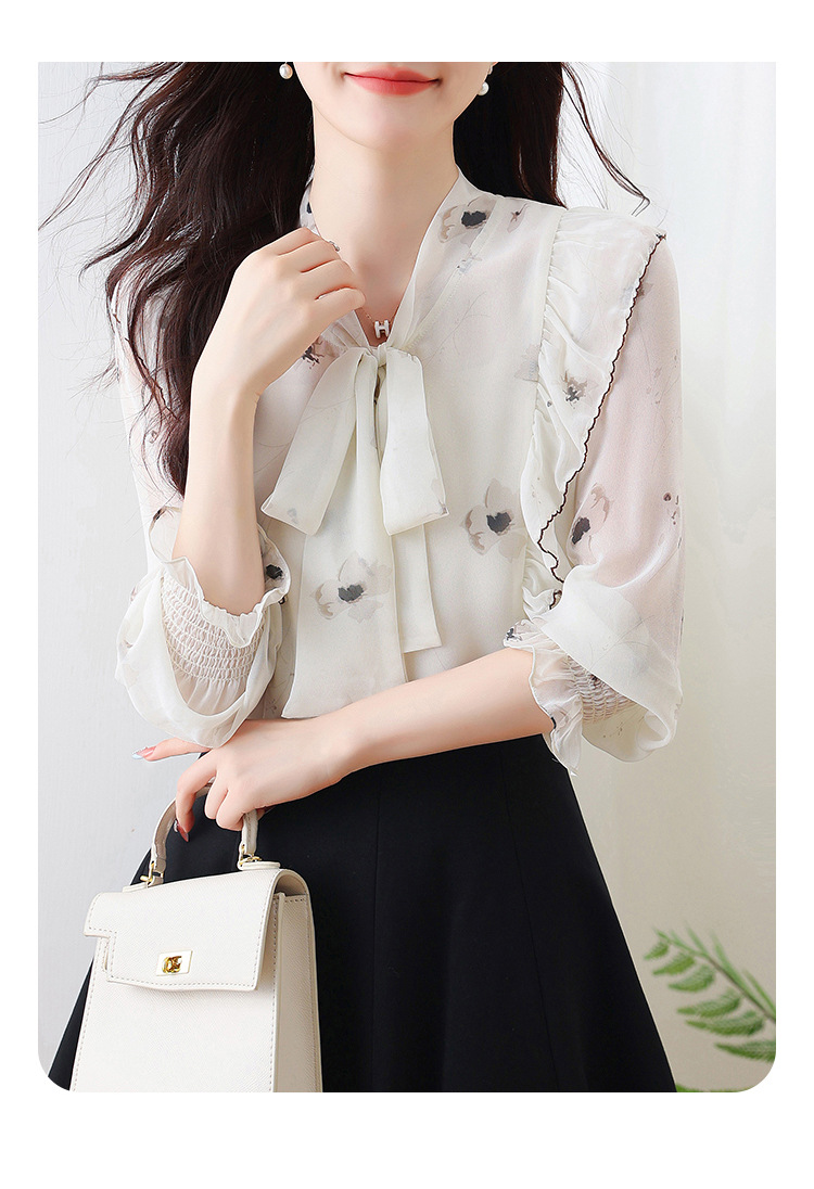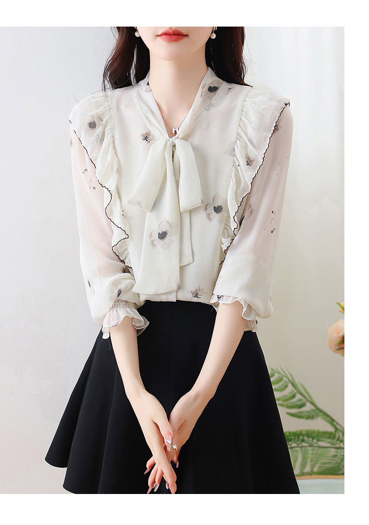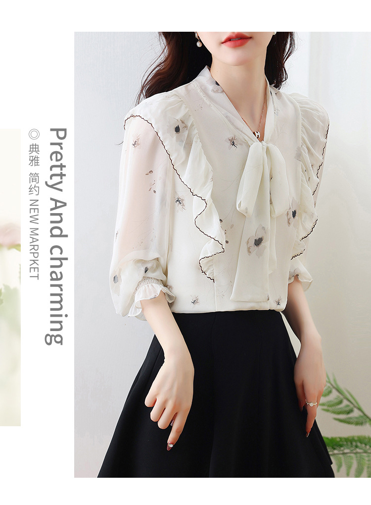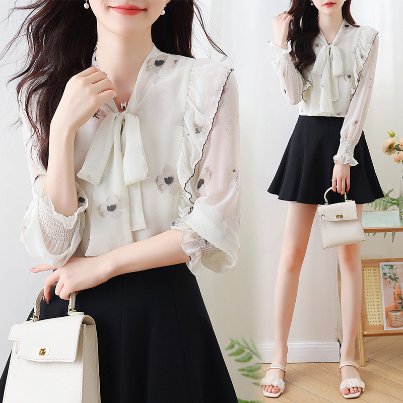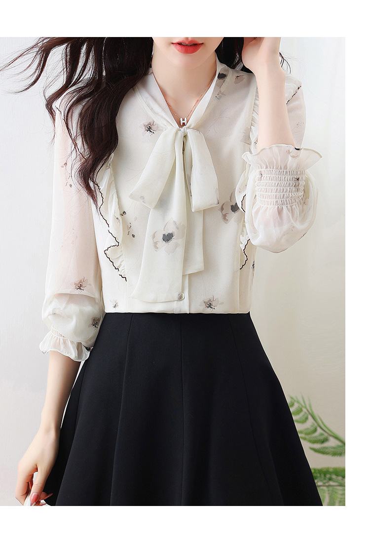 실제 촬영된 긴팔 칼라 쉬폰 셔츠 여성용 2025 가을 신상 패셔너블하고 다용도로 활용 가능한 나이를 줄여주는 루즈핏 상의스토어 가기