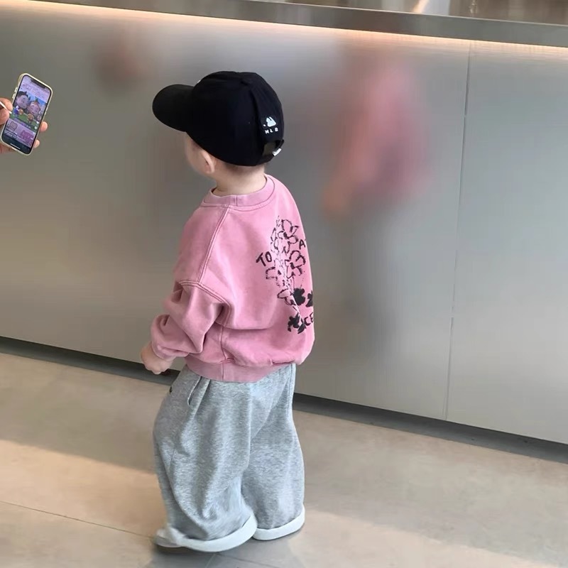어린이 의류 소년 서양식 귀여운 땀 가을 2024 한국 캐주얼 패시 인쇄 잘생긴 어린이 가을 의류스토어 가기