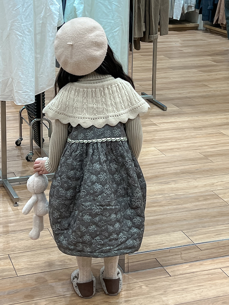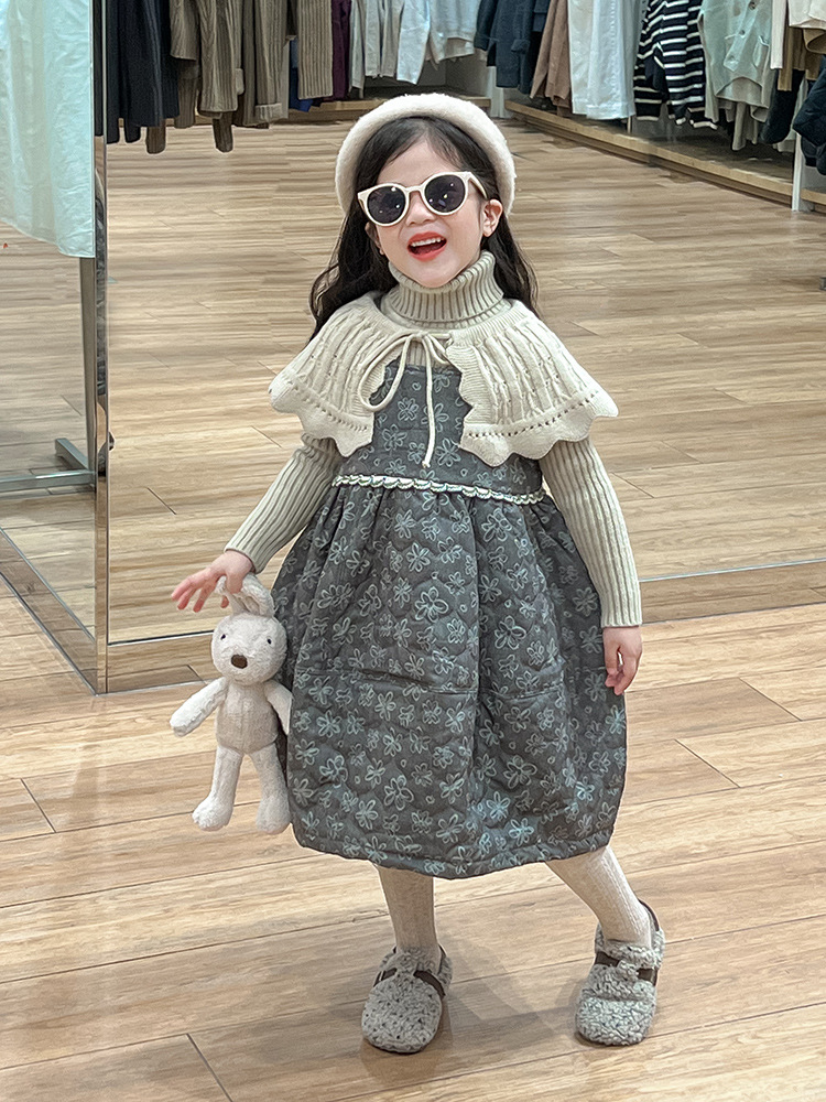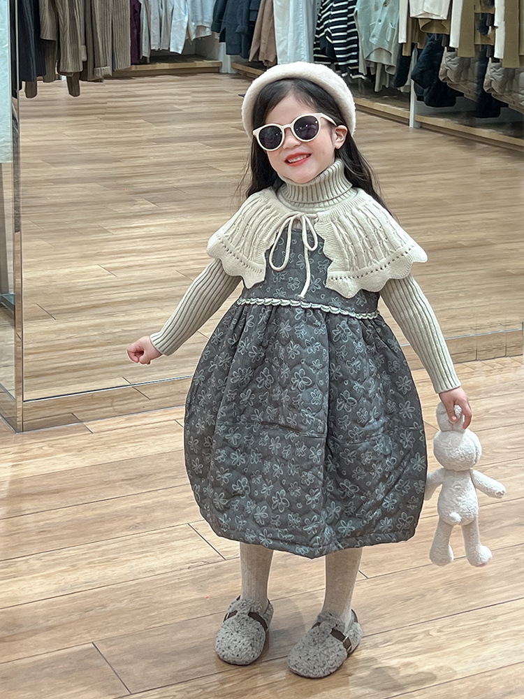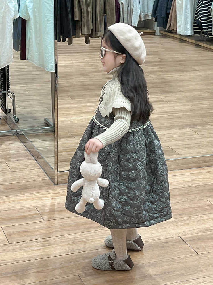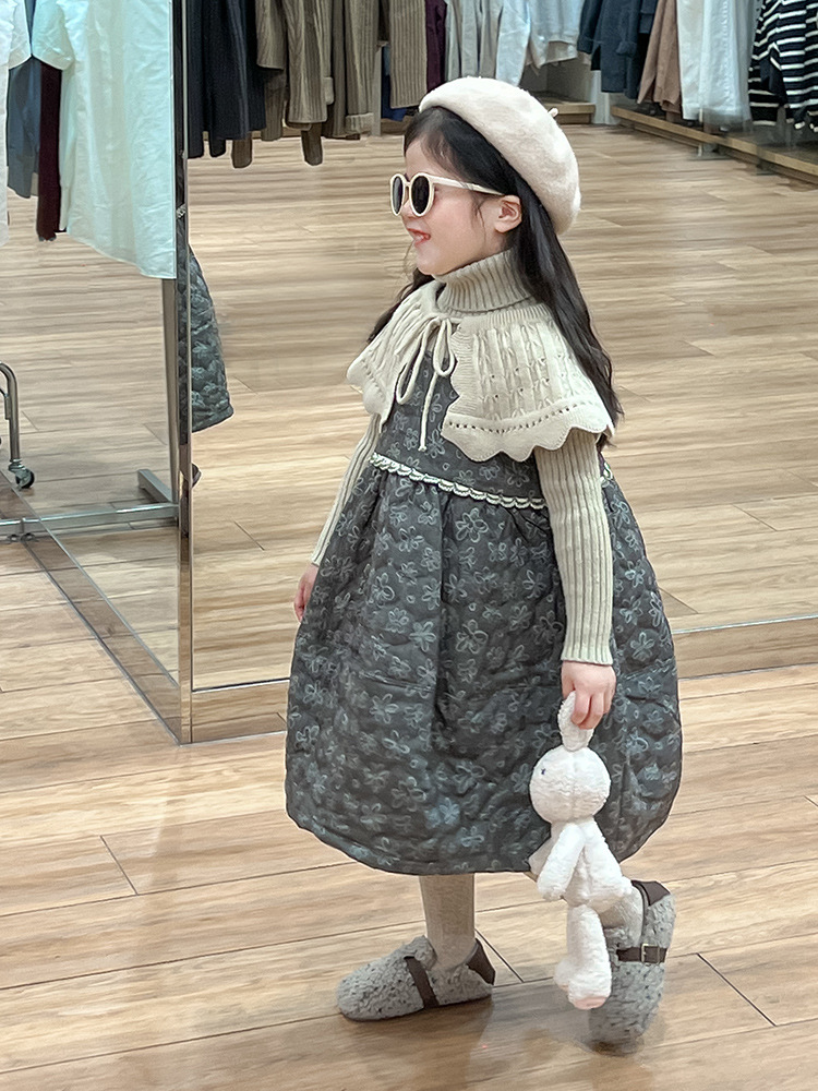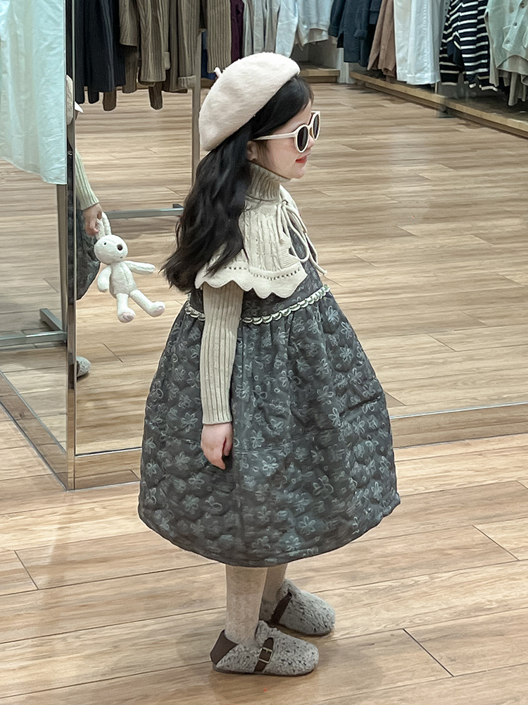 소녀의 세트 2024 가을과 겨울 옷깃 스웨터베이스 퀼트 기모 꽃 스커트 니트 레이스 목도리스토어 가기