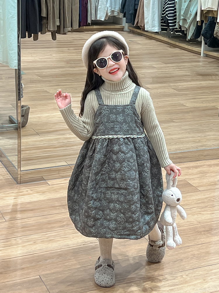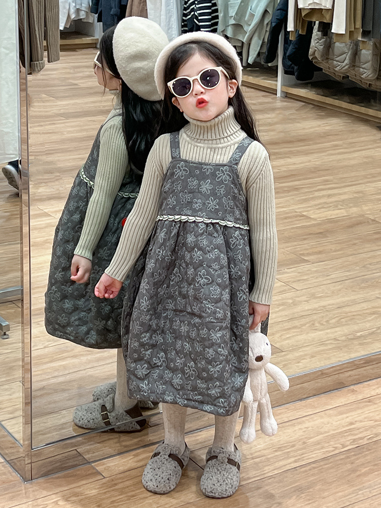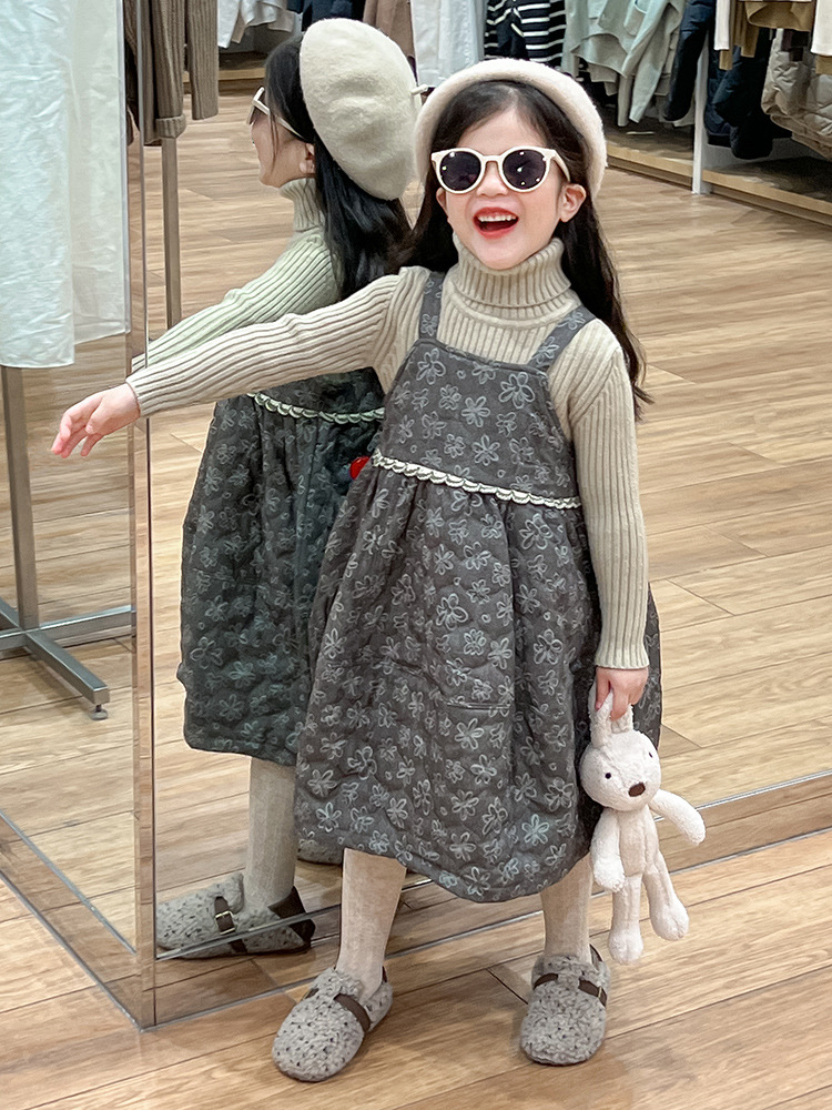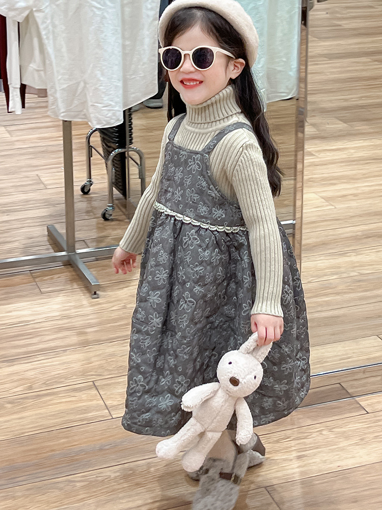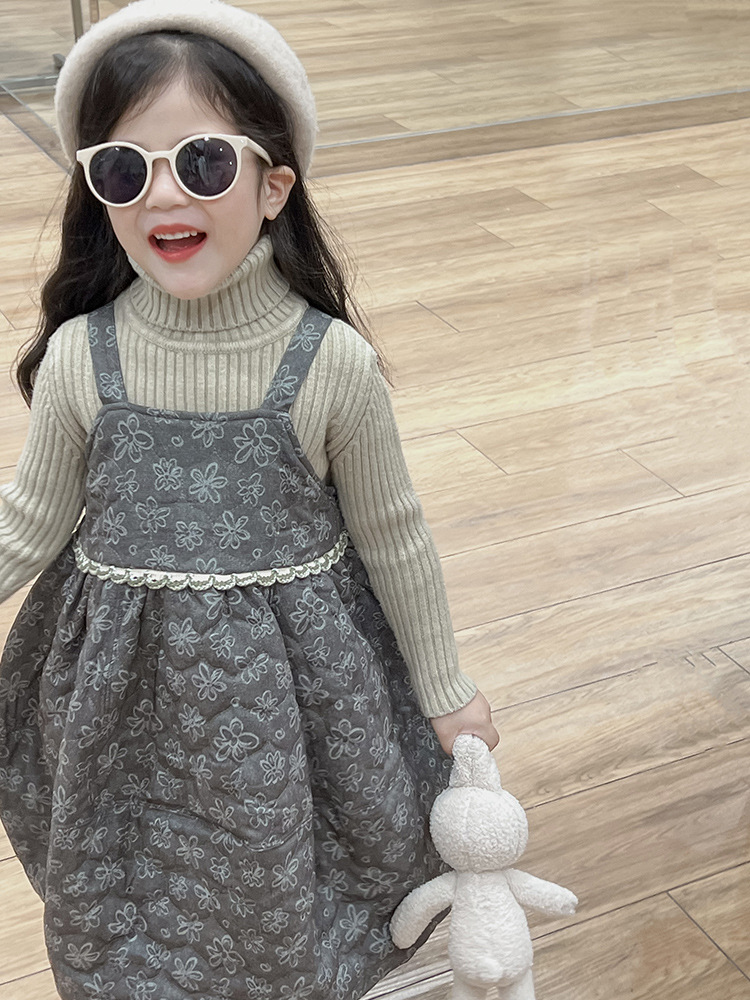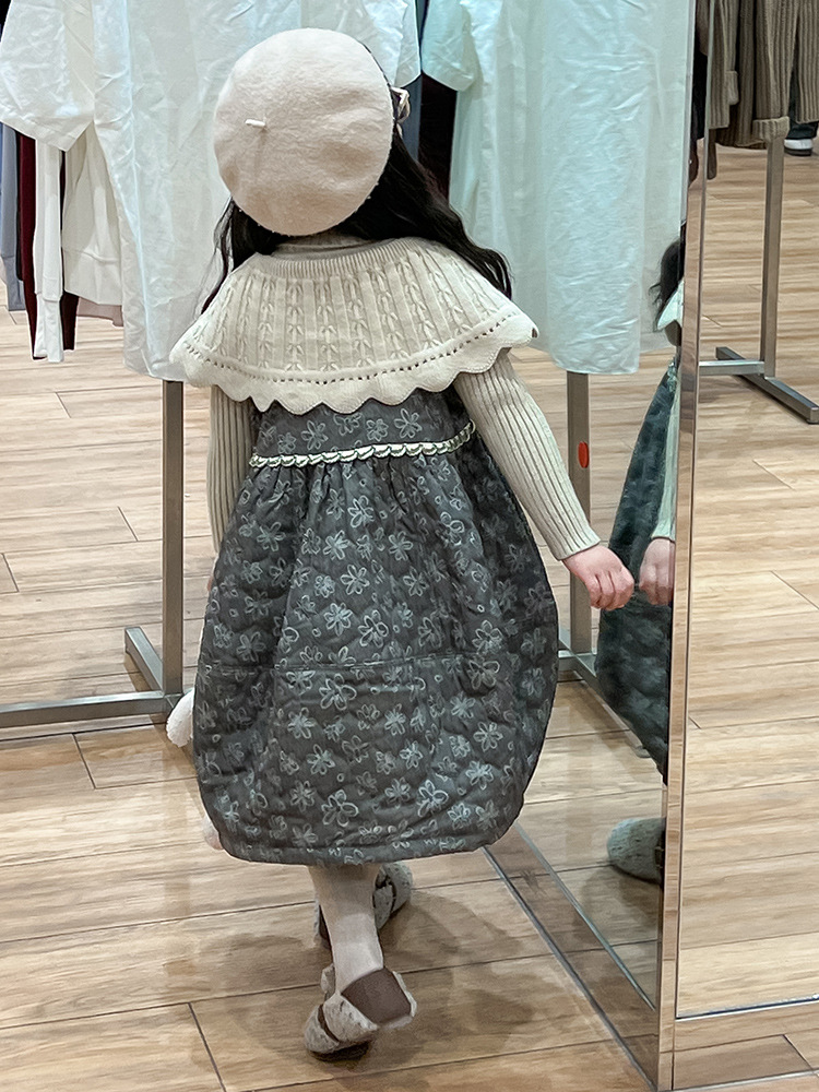 소녀의 세트 2024 가을과 겨울 옷깃 스웨터베이스 퀼트 기모 꽃 스커트 니트 레이스 목도리스토어 가기