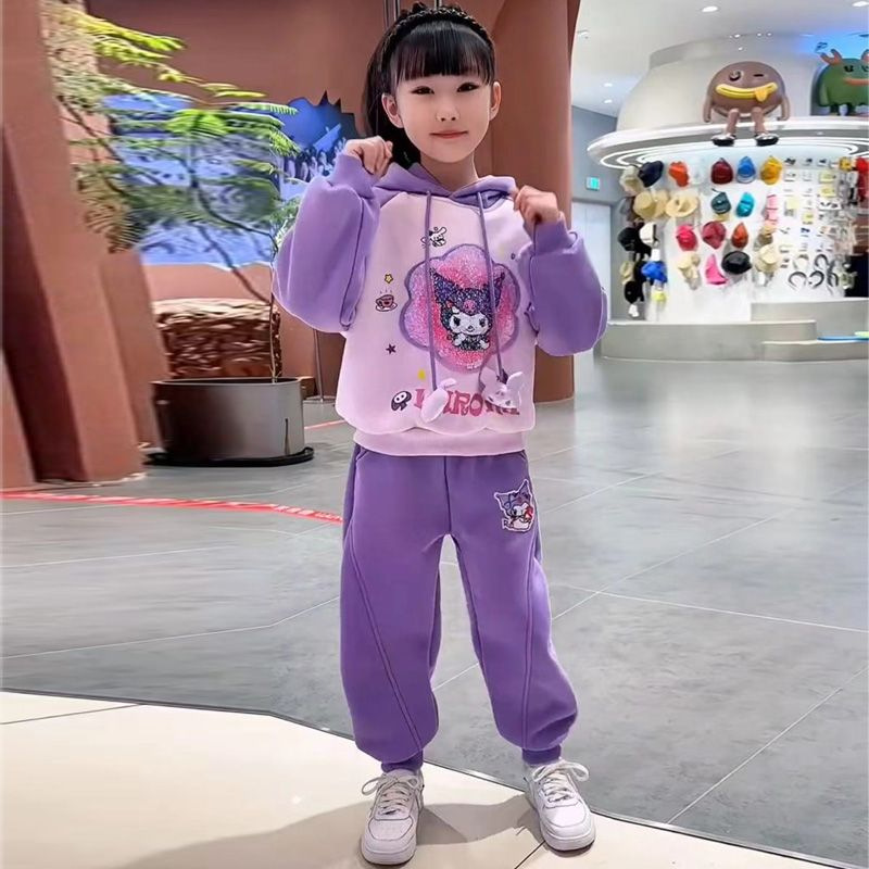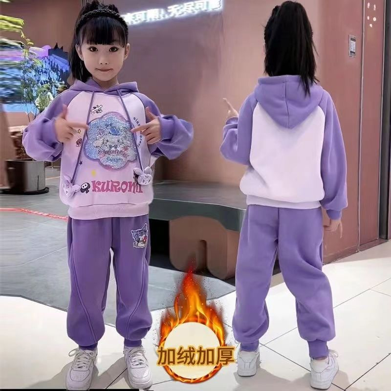소녀 벨벳 세트 가을과 겨울 2024 새로운 큰 어린이 캐주얼 패션 서양식 두꺼운 따뜻한 후드 투피스 세트스토어 가기