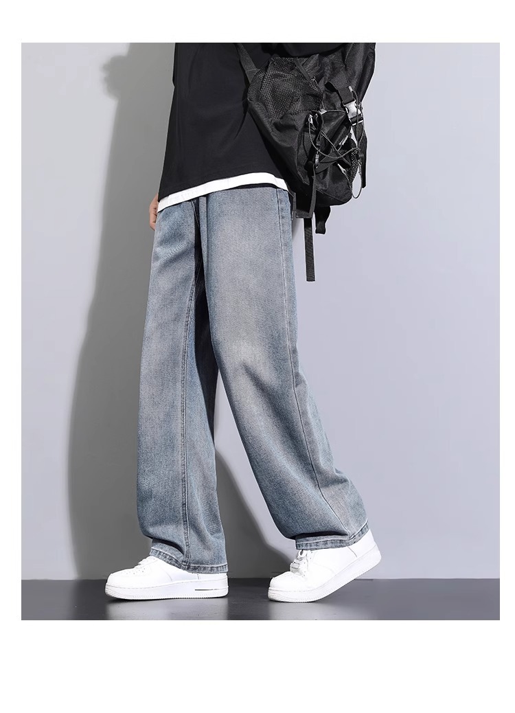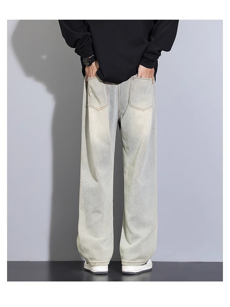 NASA 아메리칸 레트로 청바지 남자 가을 겨울 2024 새로운 패션 브랜드 스트레이트 루즈 캐주얼 바지