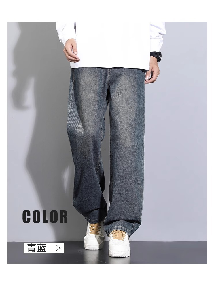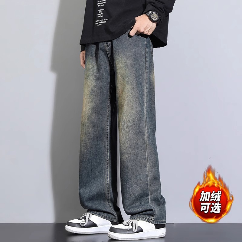 NASA 아메리칸 레트로 청바지 남자 가을 겨울 2024 새로운 패션 브랜드 스트레이트 루즈 캐주얼 바지스토어 가기