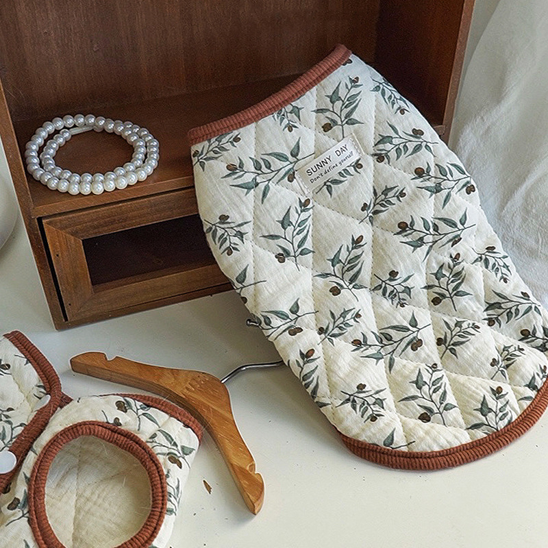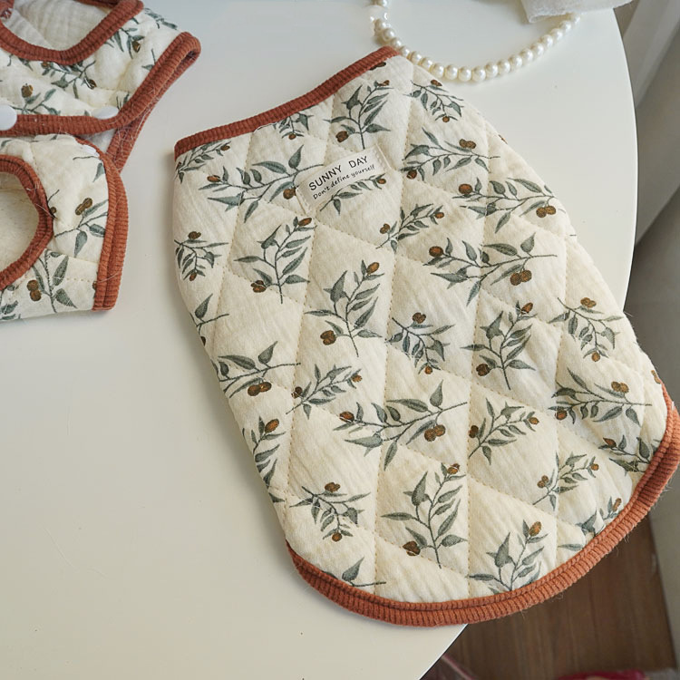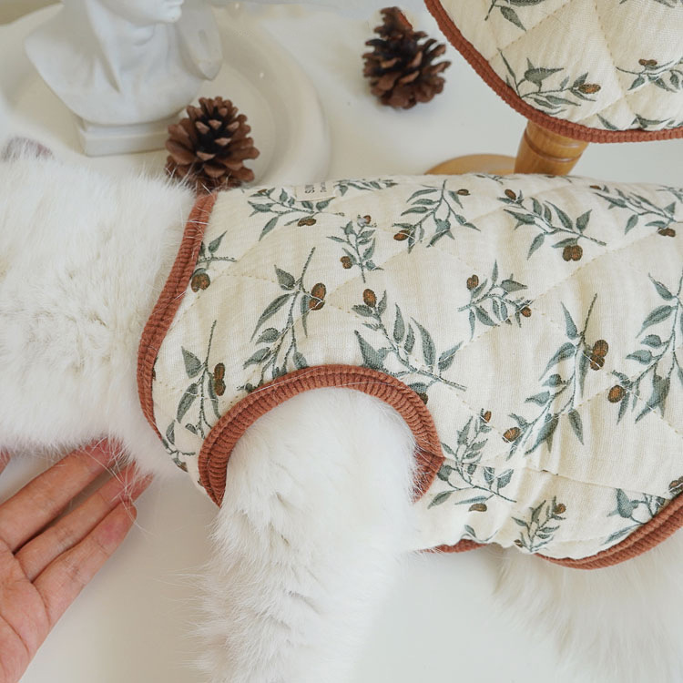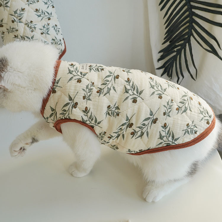 겨울 순면 옷 고양이 옷 두꺼운 가을과 겨울 빈티지 꽃 민소매 조끼 애완 동물 개 따뜻한 조끼