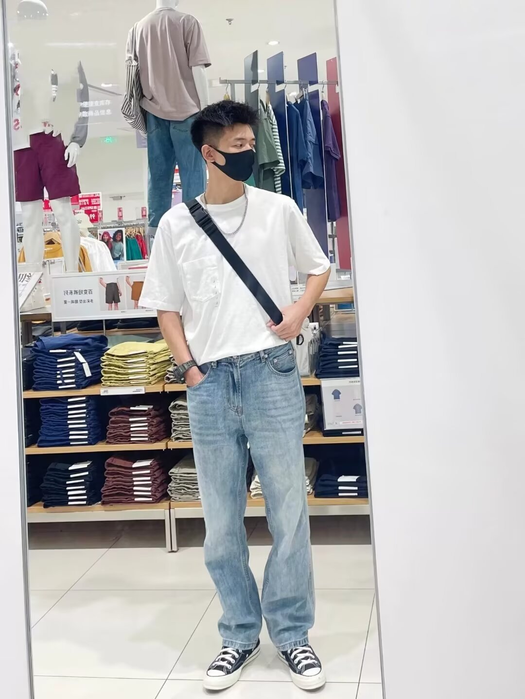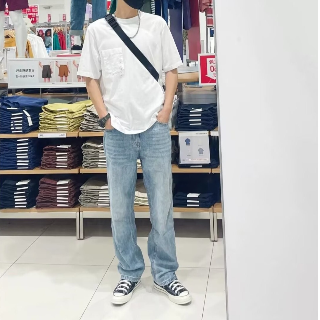 미국 거리 씻은 약한 청바지 남성용 봄과 가을 스트레이트 와이드 디자인 센스 틈새 바이브 스타일 긴 바지스토어 가기