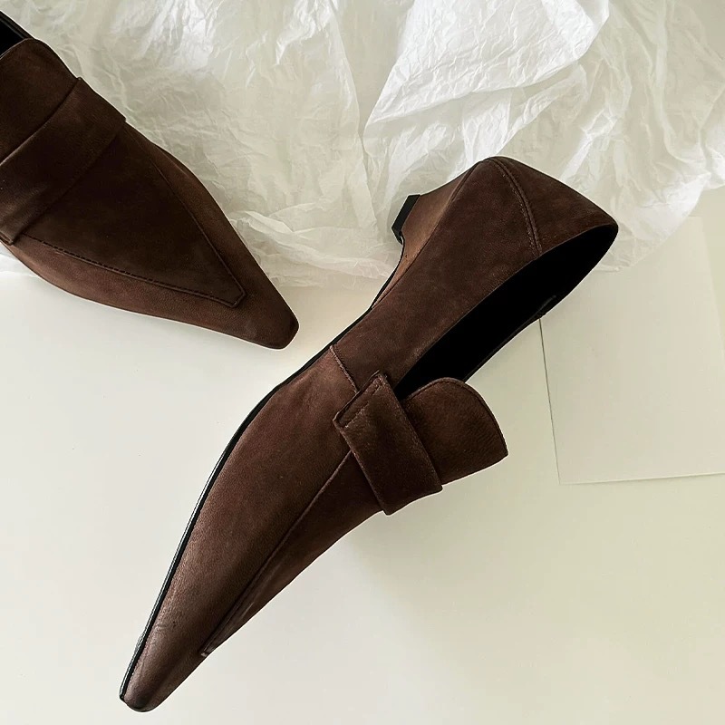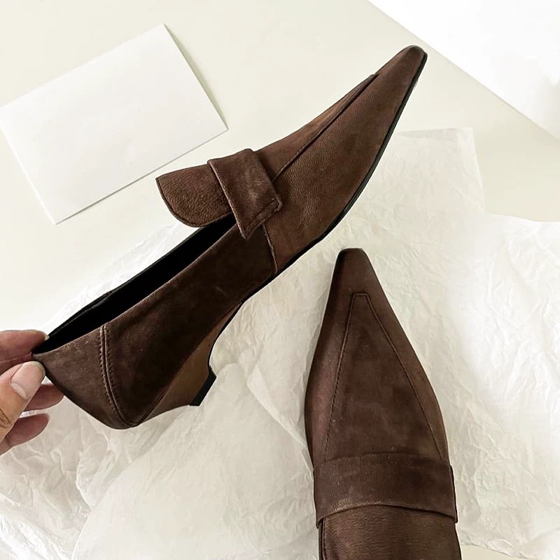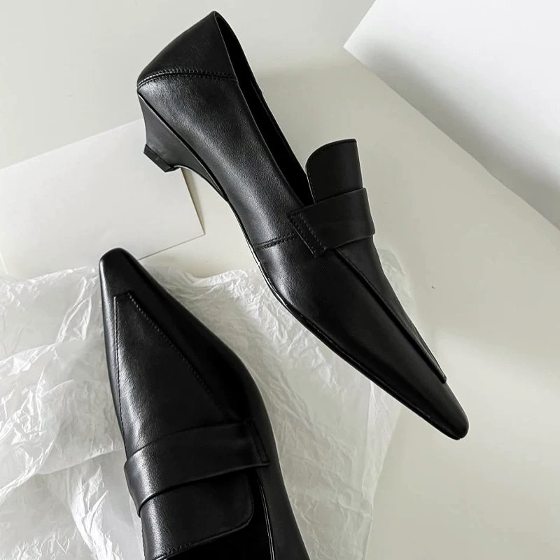 프랑스 니치 포인팅 테이퍼 힐 로퍼 작은 가죽 신발 여성의 가을과 겨울 새로운 올매치 하이 레벨 스타일 발가락 신발스토어 가기
