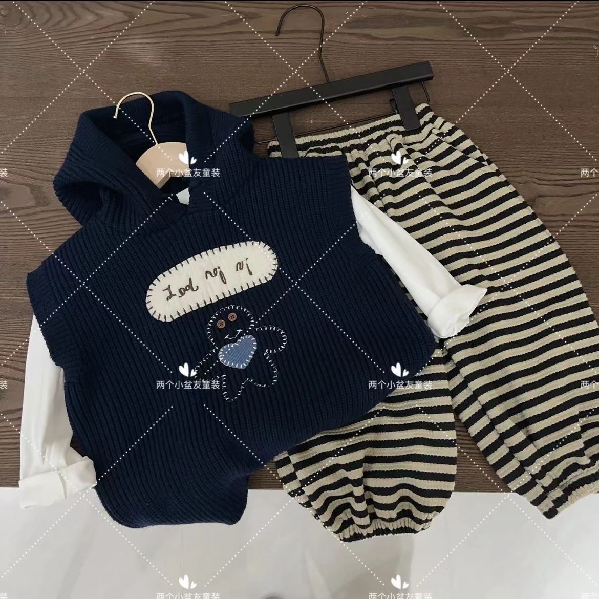 어린이 스웨터 2024 가을 새로운 한국 스타일 올매치 패션 조끼 소년 소녀 아기의 탑 모리 니트 스웨터