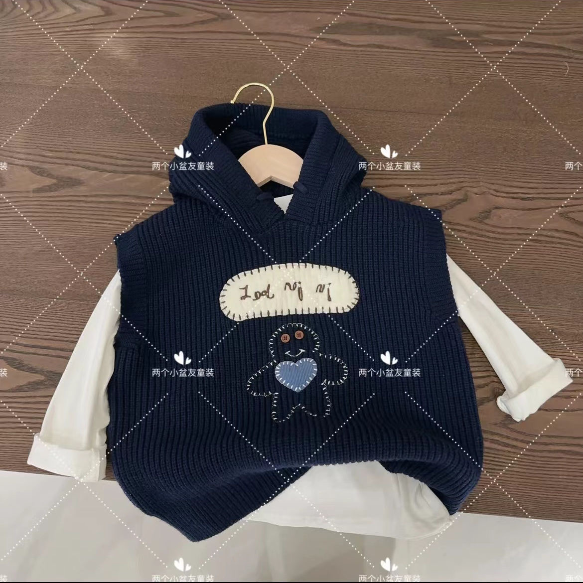 어린이 스웨터 2024 가을 새로운 한국 스타일 올매치 패션 조끼 소년 소녀 아기의 탑 모리 니트 스웨터스토어 가기