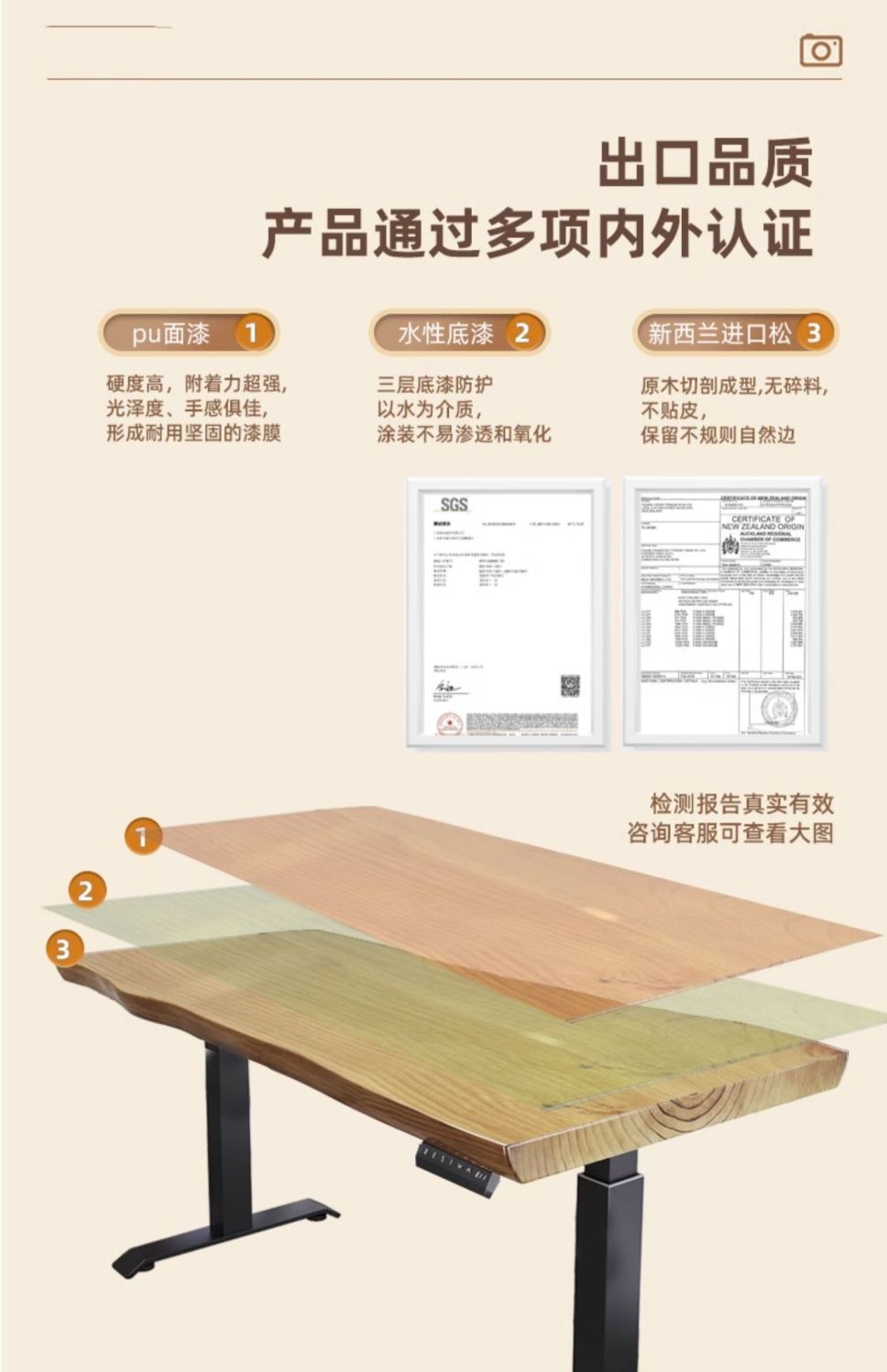 로그 대형 보드 데스크 학습 사무실 컴퓨터 데스크 솔리드 우드 스탠딩 워크 벤치 홈 지능형 전기 리프팅 테이블스토어 가기
