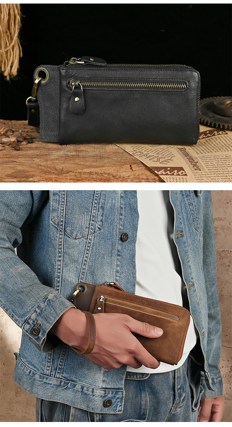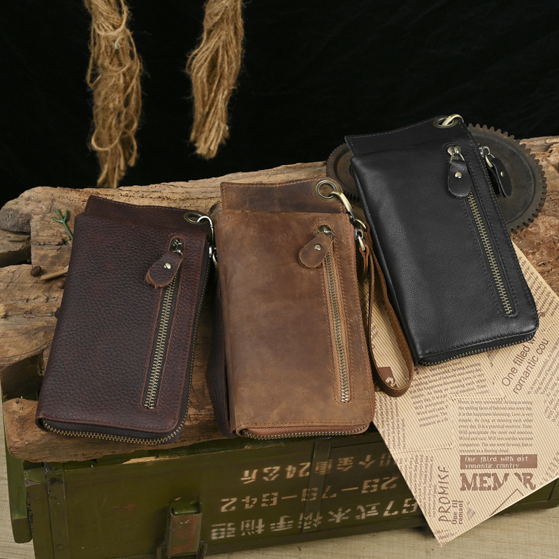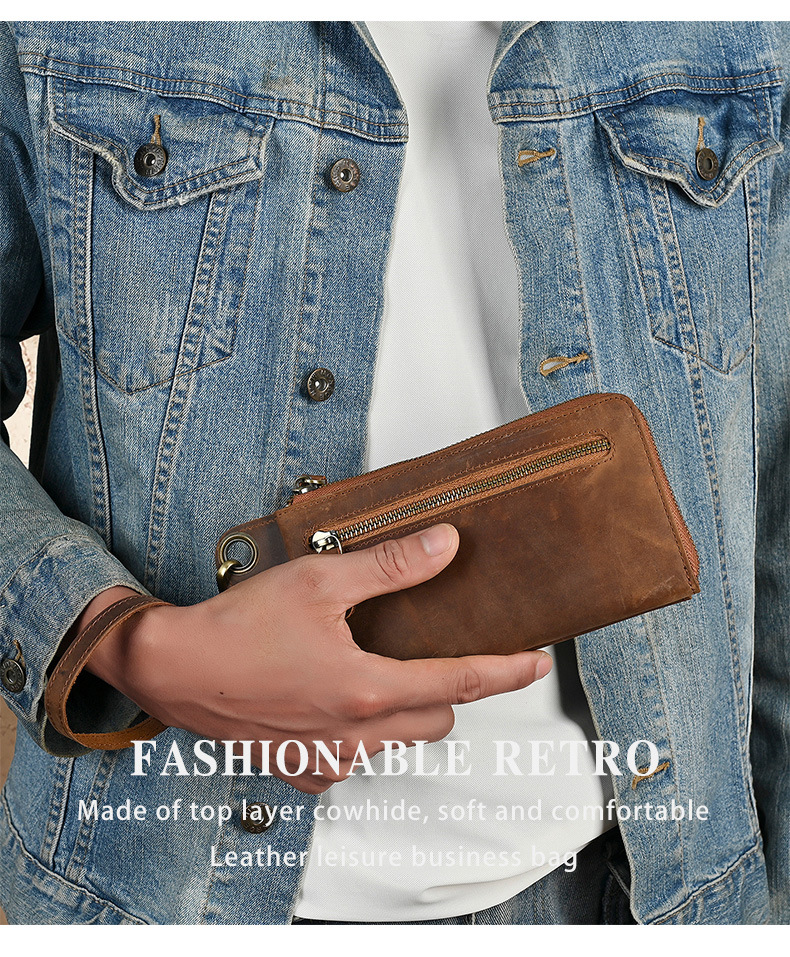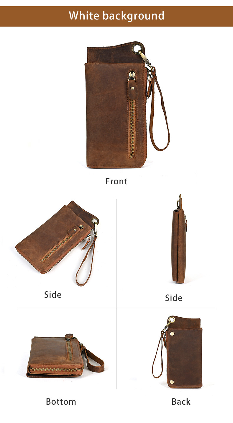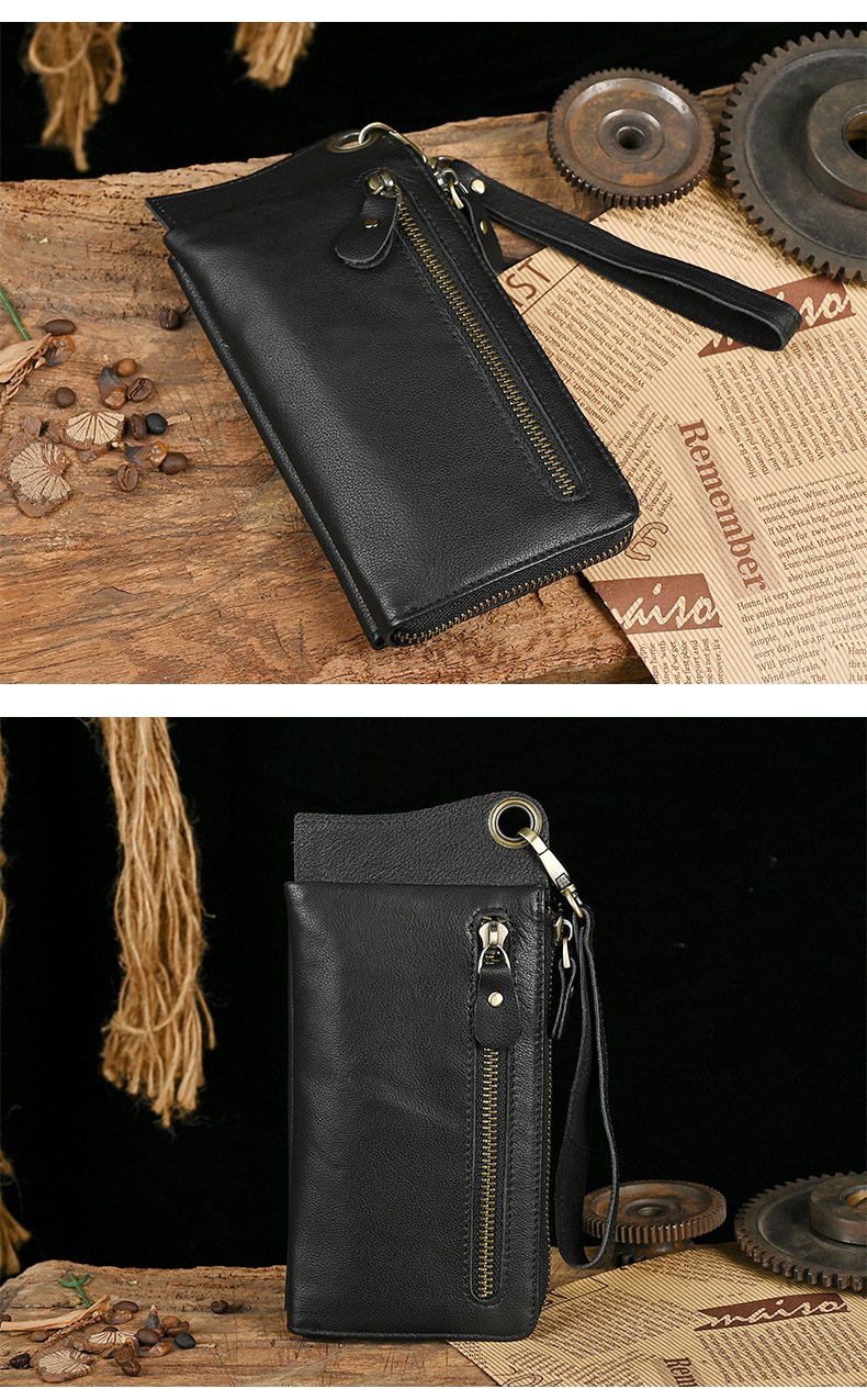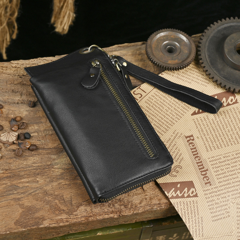 정품 가죽 클러치 백 남성의 새로운 대용량 캐주얼 클러치 백 다기능 지갑 멀티 카드 지퍼 휴대 전화 가방