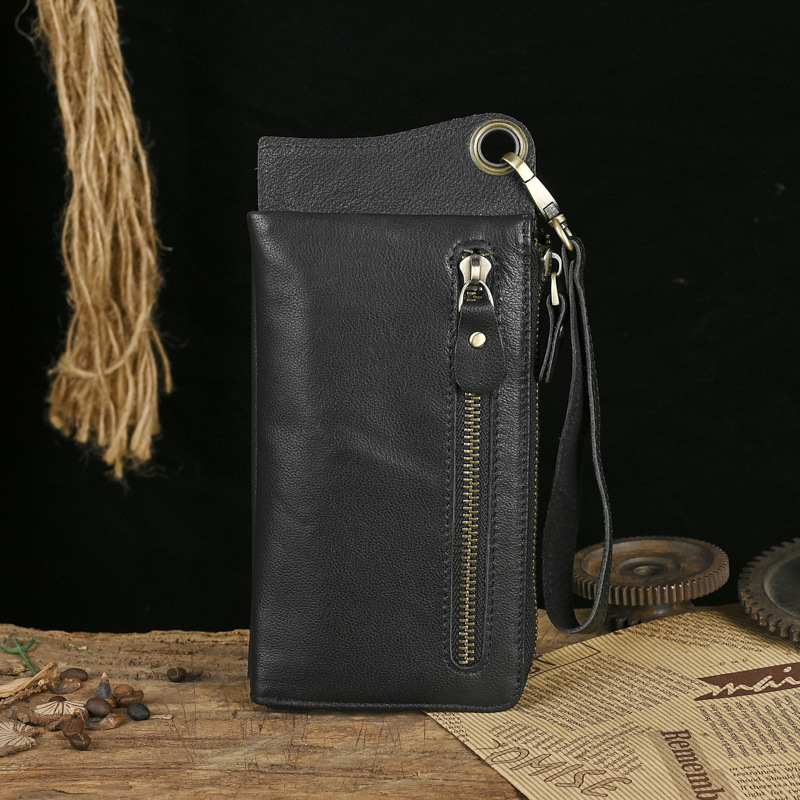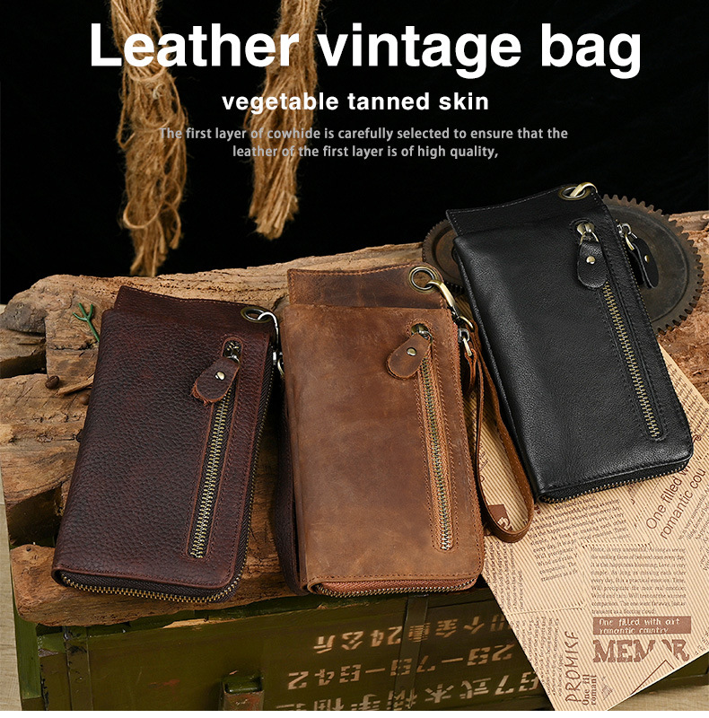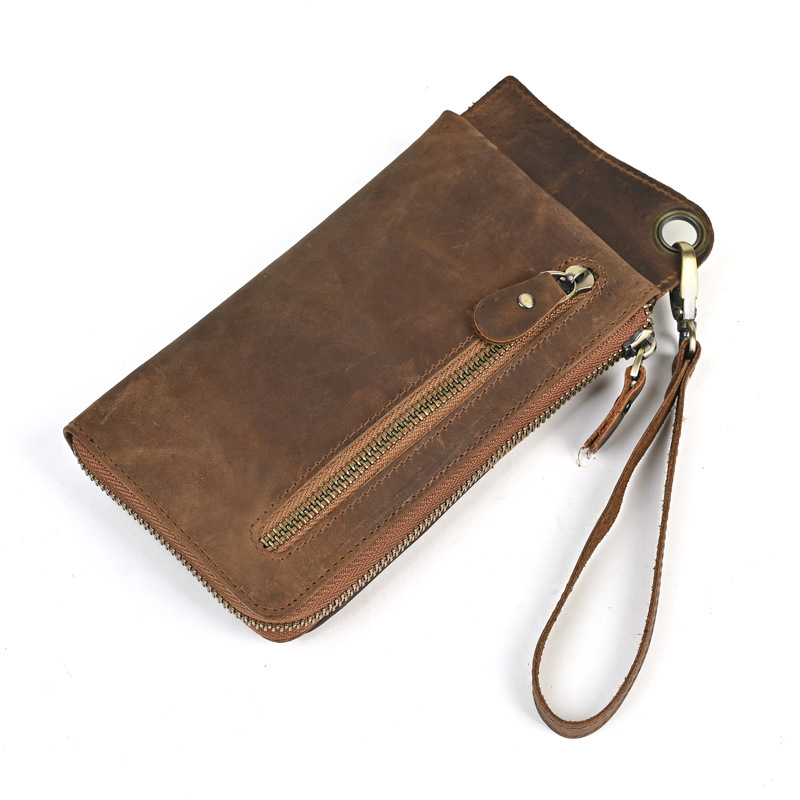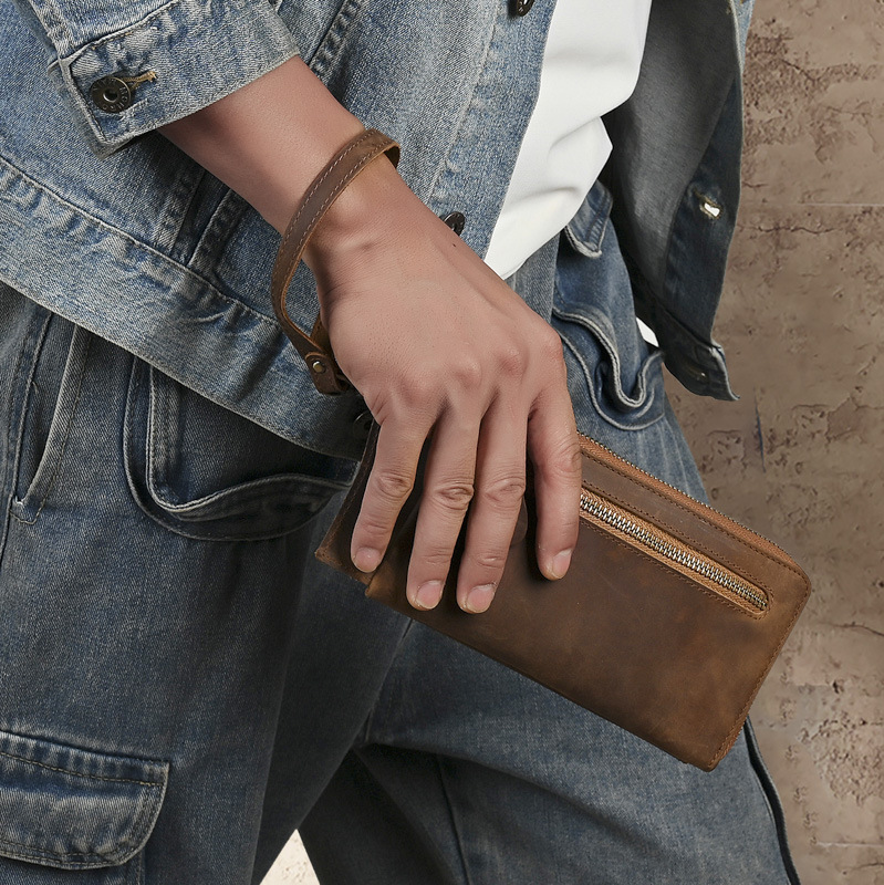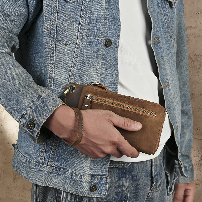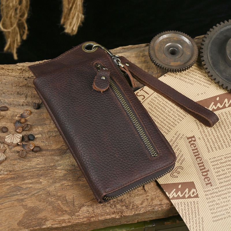 정품 가죽 클러치 백 남성의 새로운 대용량 캐주얼 클러치 백 다기능 지갑 멀티 카드 지퍼 휴대 전화 가방