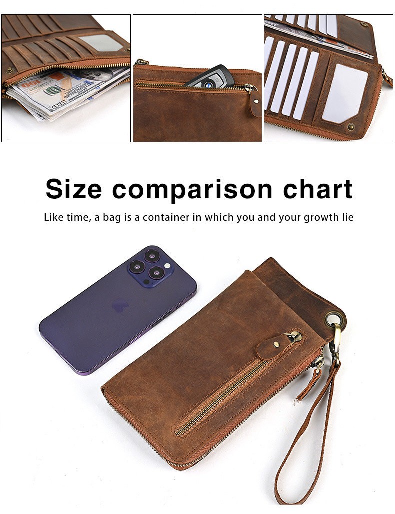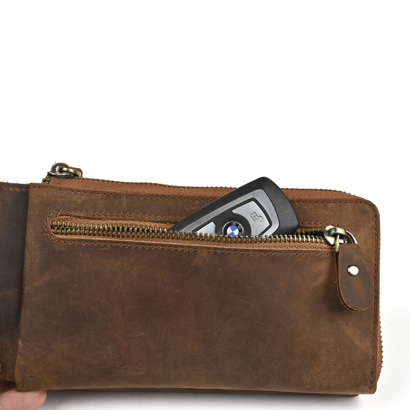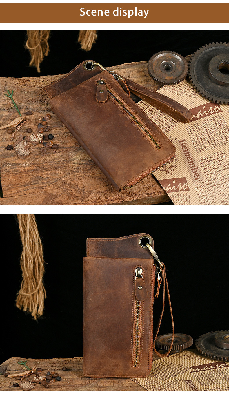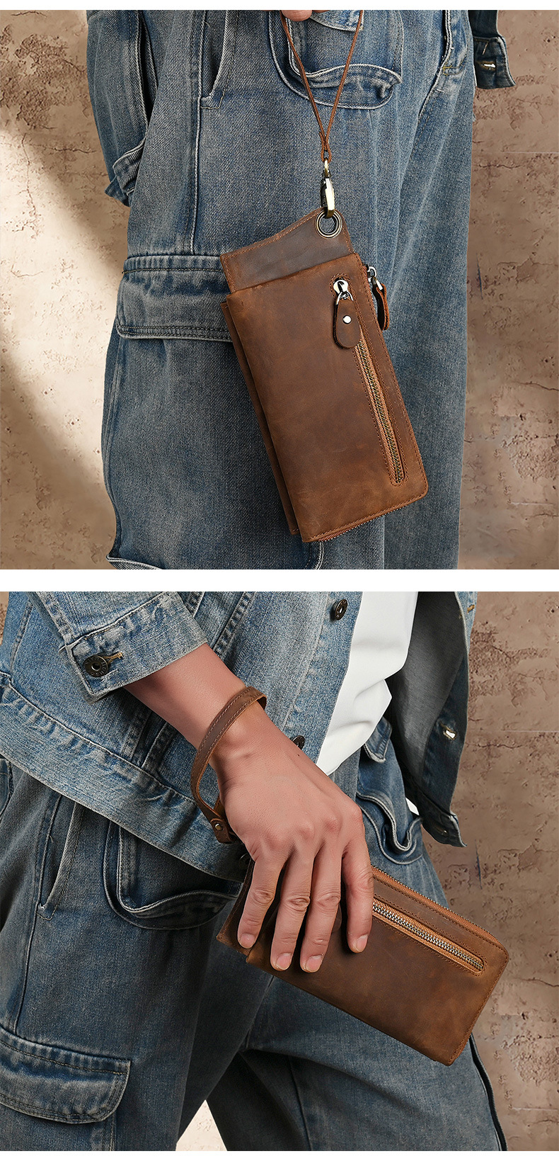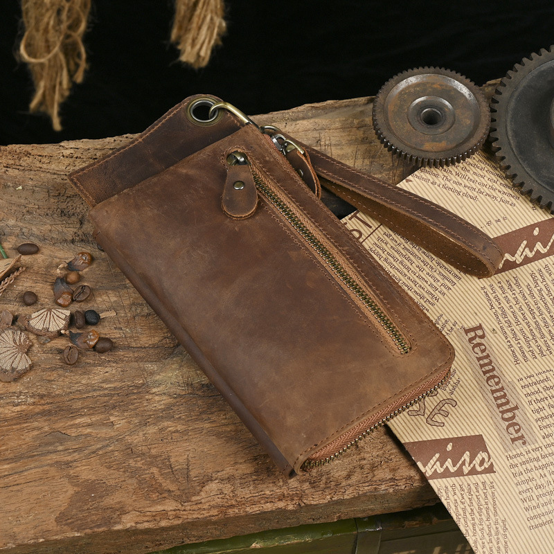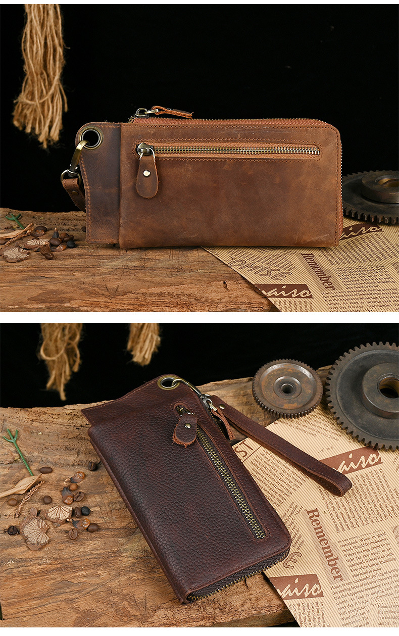 정품 가죽 클러치 백 남성의 새로운 대용량 캐주얼 클러치 백 다기능 지갑 멀티 카드 지퍼 휴대 전화 가방