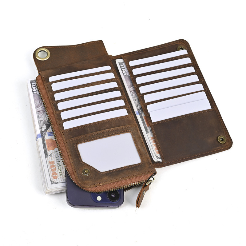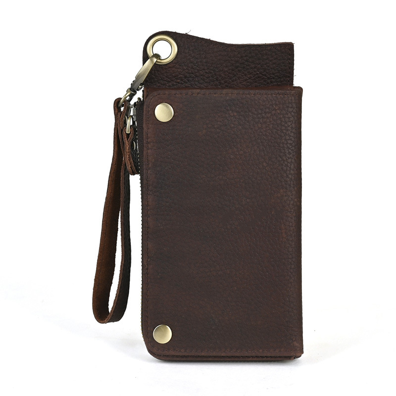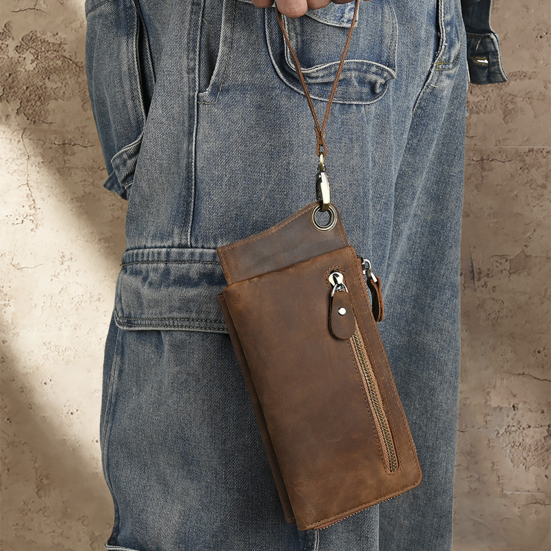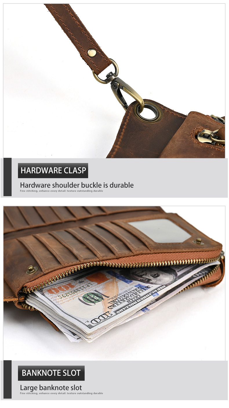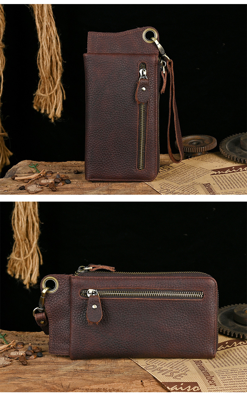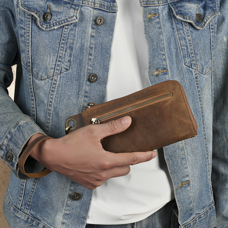 정품 가죽 클러치 백 남성의 새로운 대용량 캐주얼 클러치 백 다기능 지갑 멀티 카드 지퍼 휴대 전화 가방