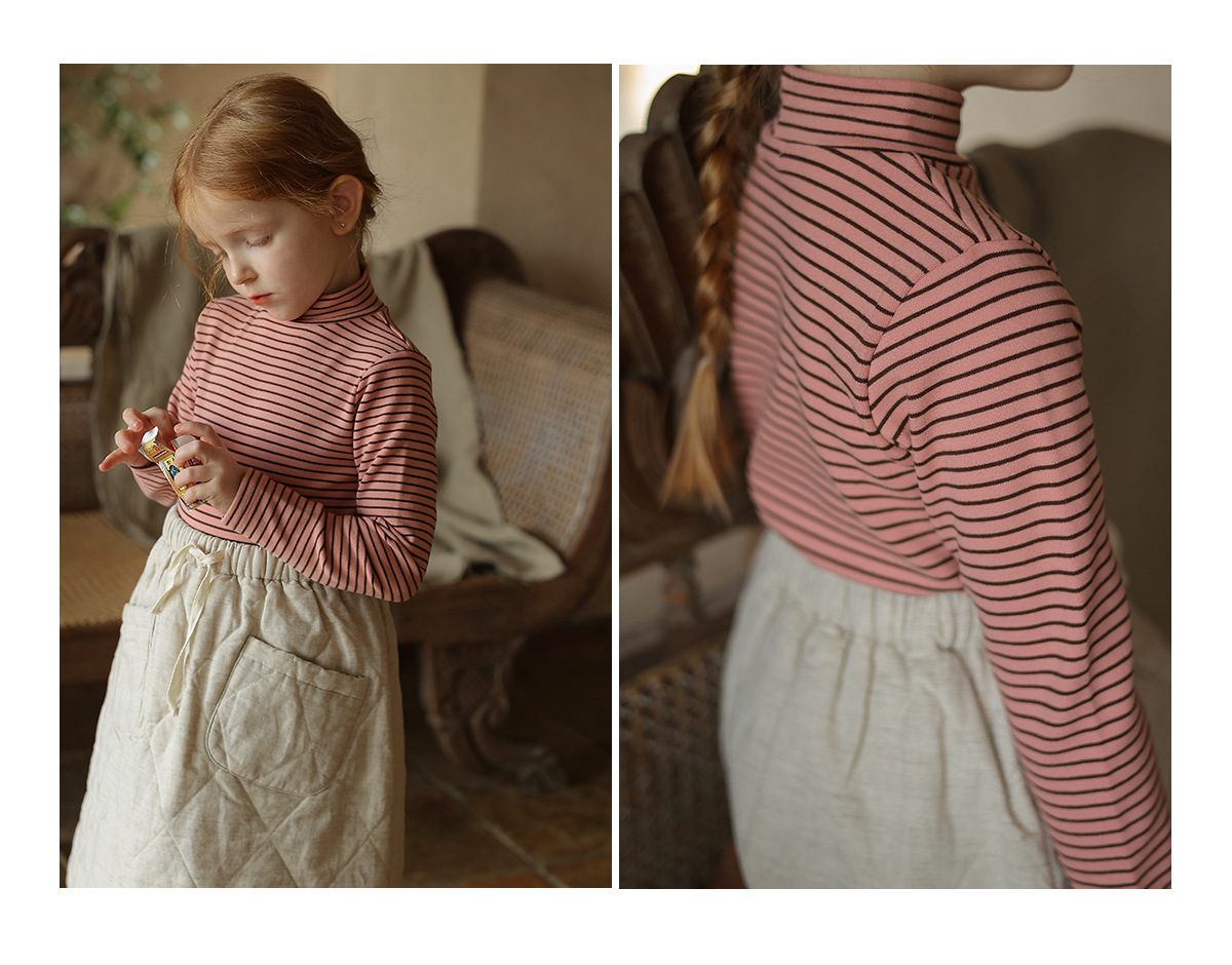 클래스 A 아기 유치원 하이 칼라 베이스 셔츠 소녀 가을 및 겨울 새로운 서양 스타일 하프 하이 칼라 티셔츠 어린이 탑스토어 가기