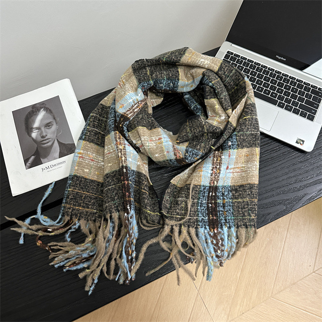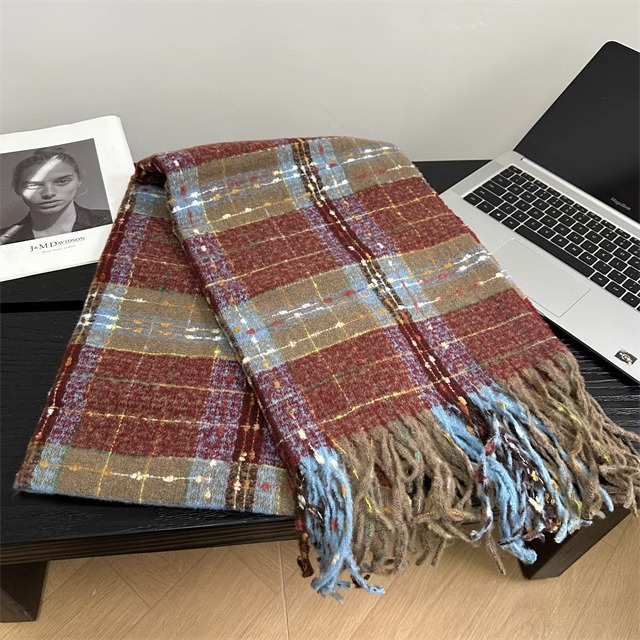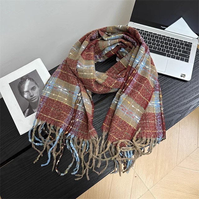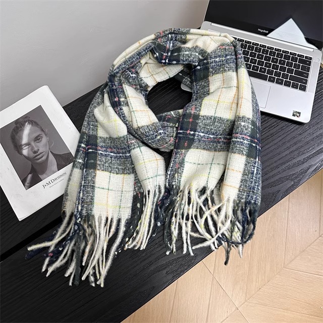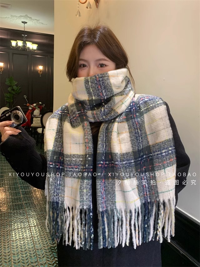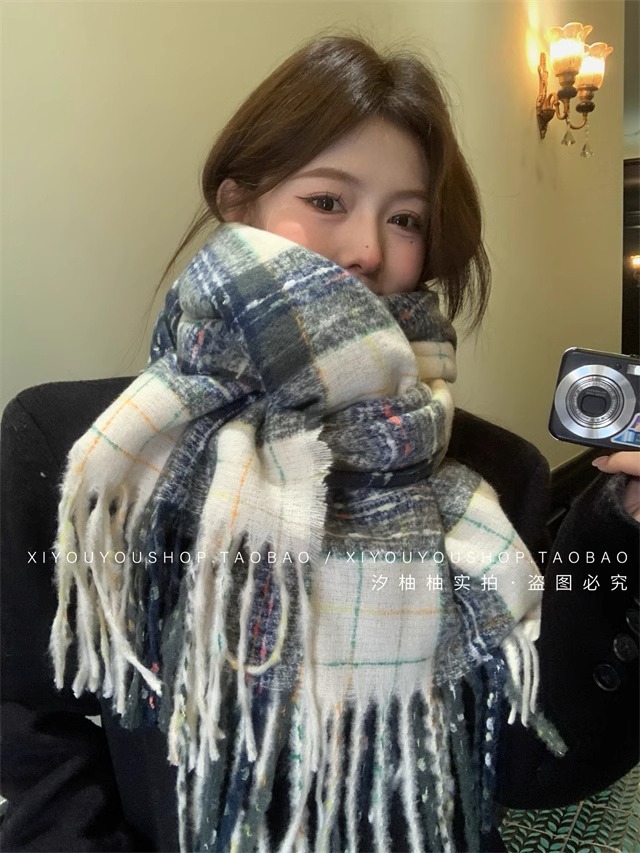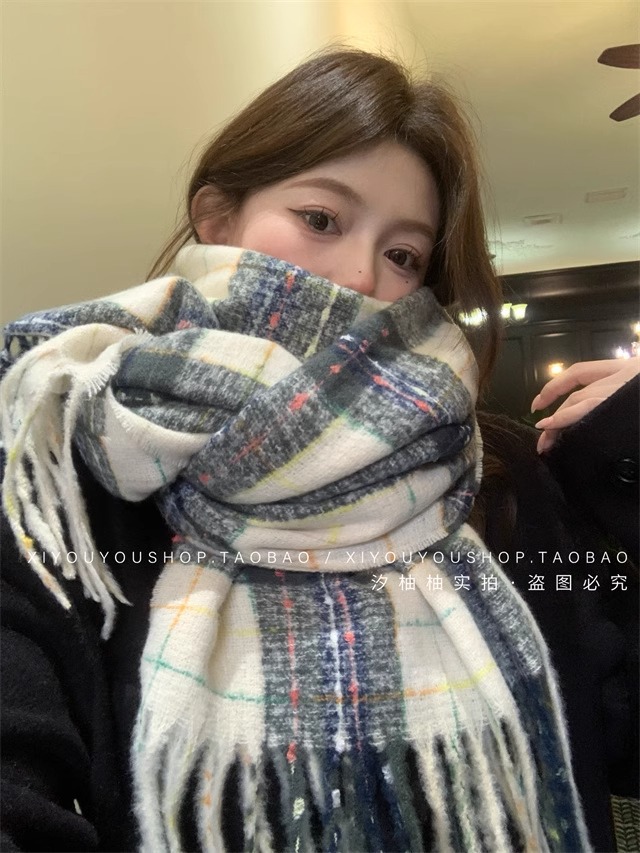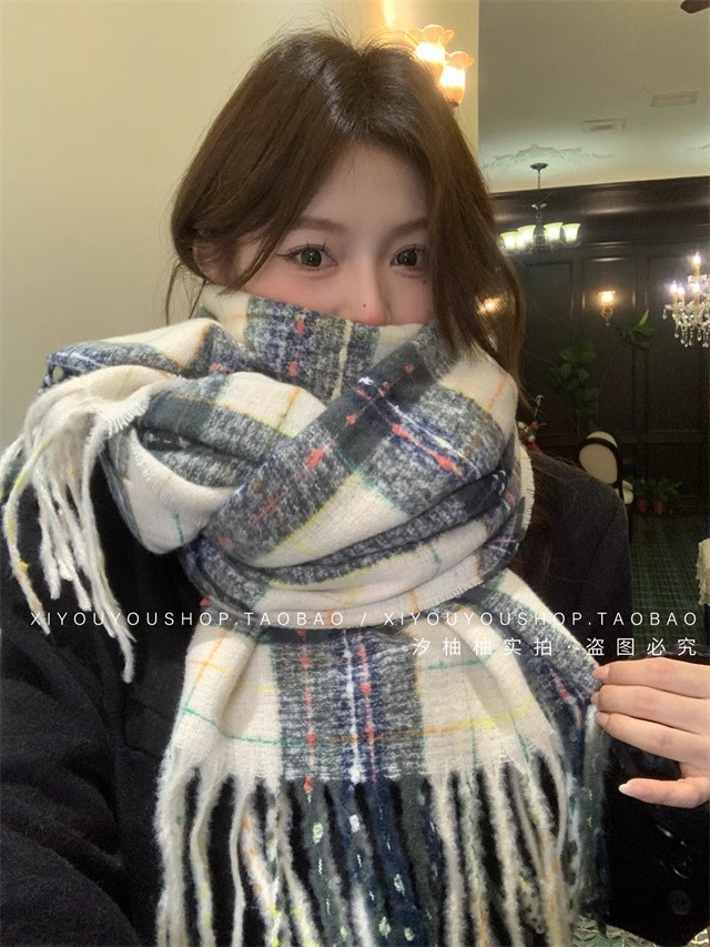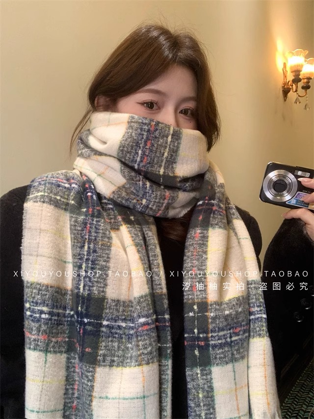 2024 새로운 도착 분위기 격자 무늬 스카프 여자 겨울 한국 스타일 올 매치 JK 학생들을위한 귀여운 두꺼운 스카프 따뜻한 패션스토어 가기