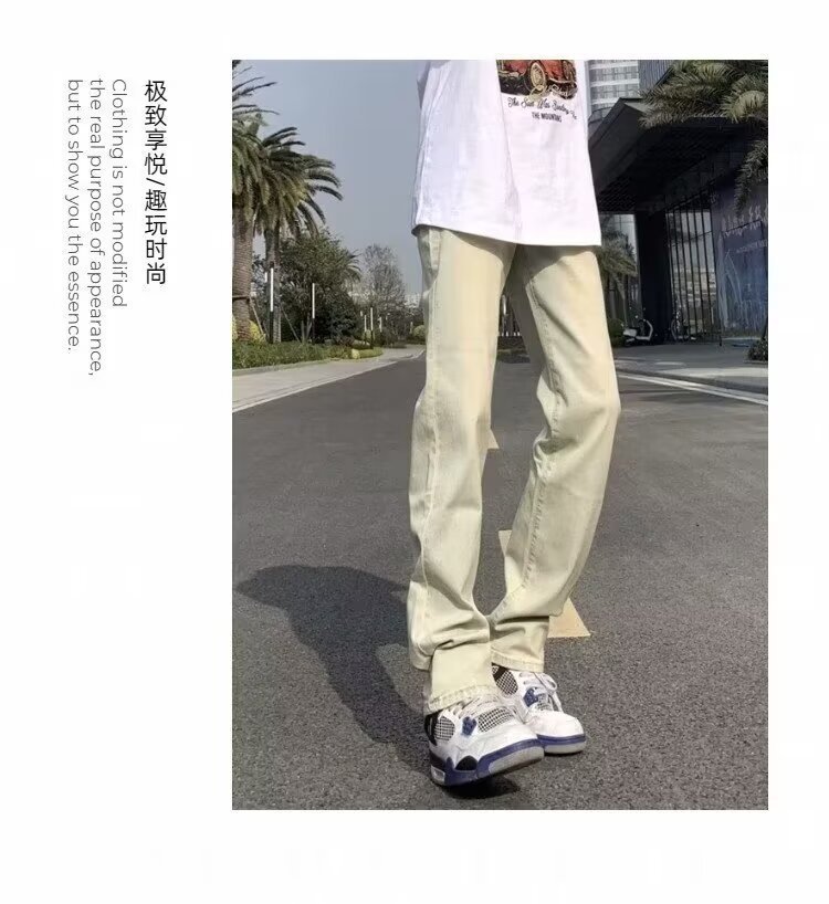 아메리칸 스타일 레트로 바지 하이 스트리트 트렌디 브랜드 옐로우 머드 청바지 남성 디자인 센스 스트레이트 세척 봄과 가을 긴 바지
