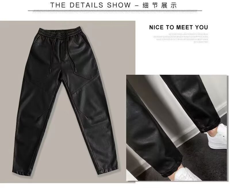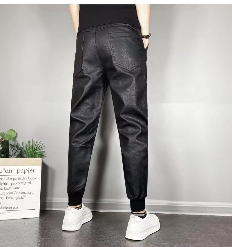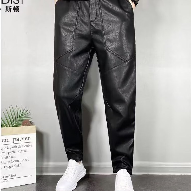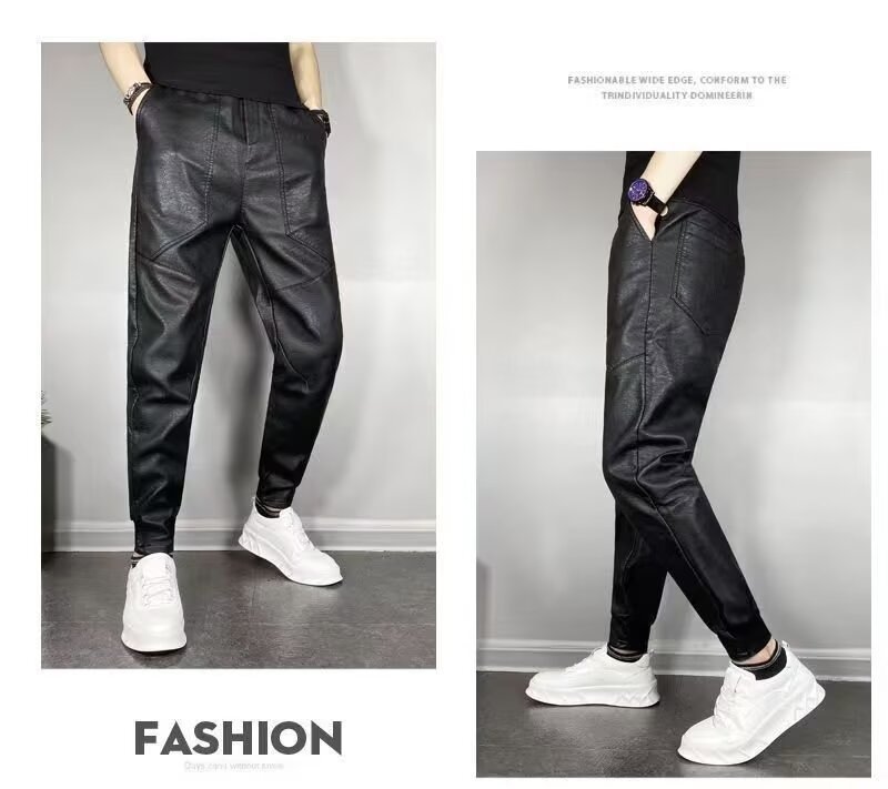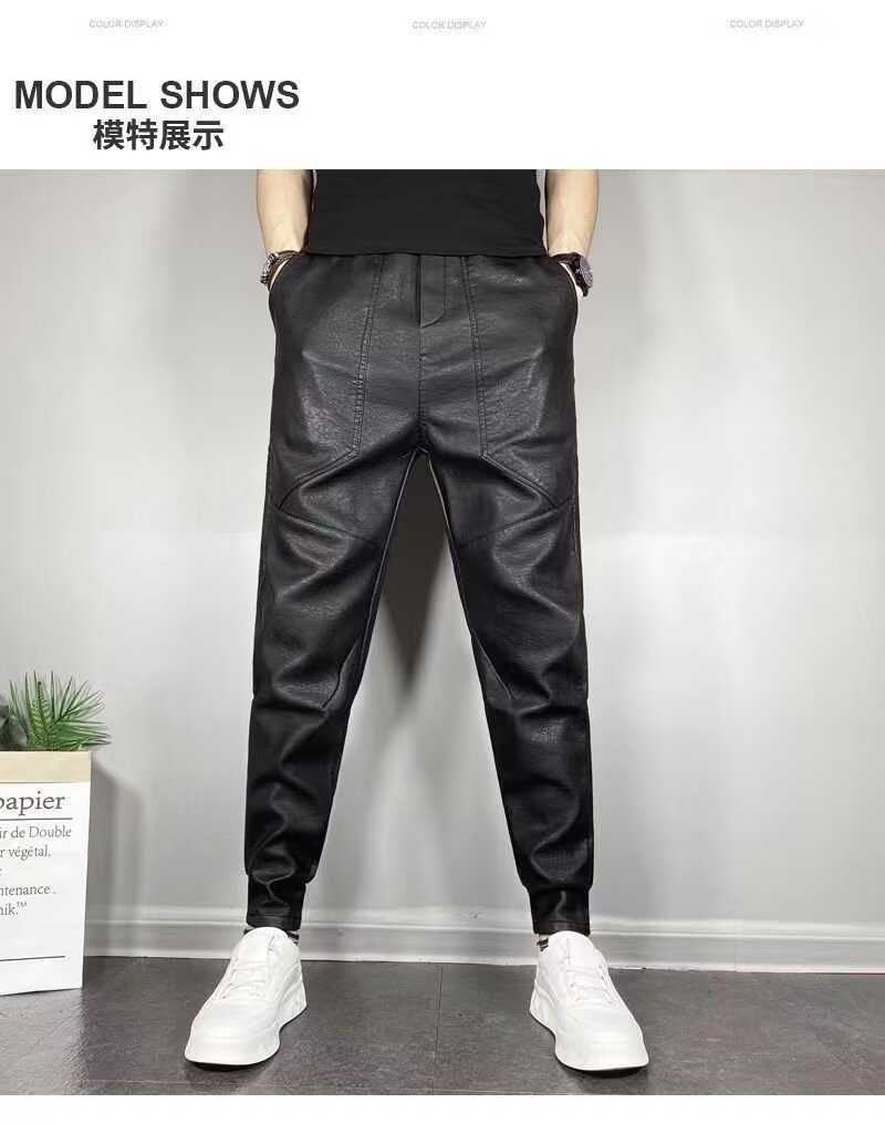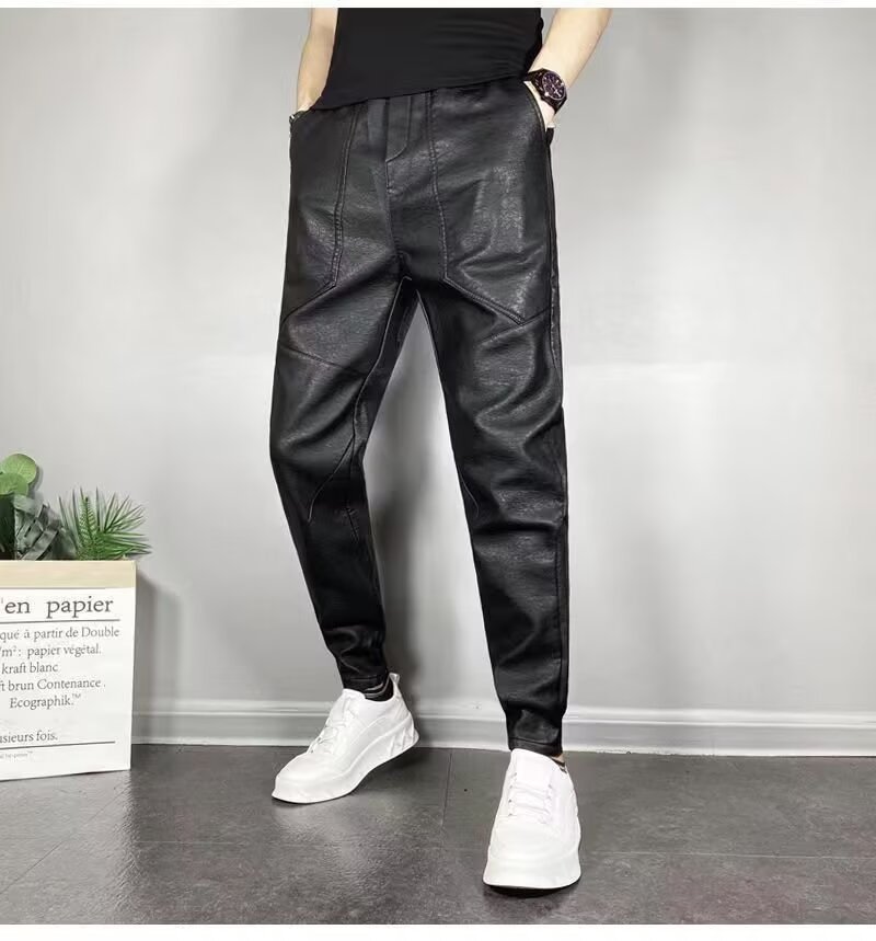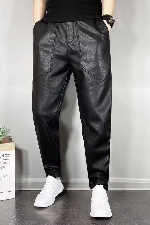 겨울 남자 기모 두꺼운 따뜻한 가죽 바지 오토바이 방풍 방수 가죽 바지 스트레치 캐주얼 따뜻한 스트레이트 바지스토어 가기