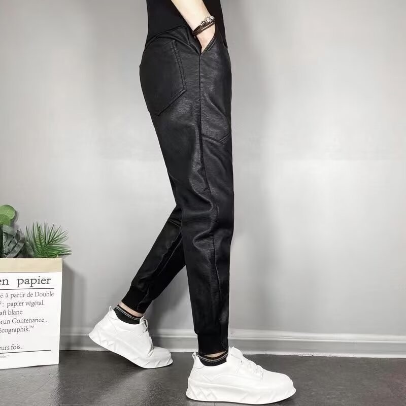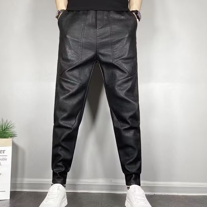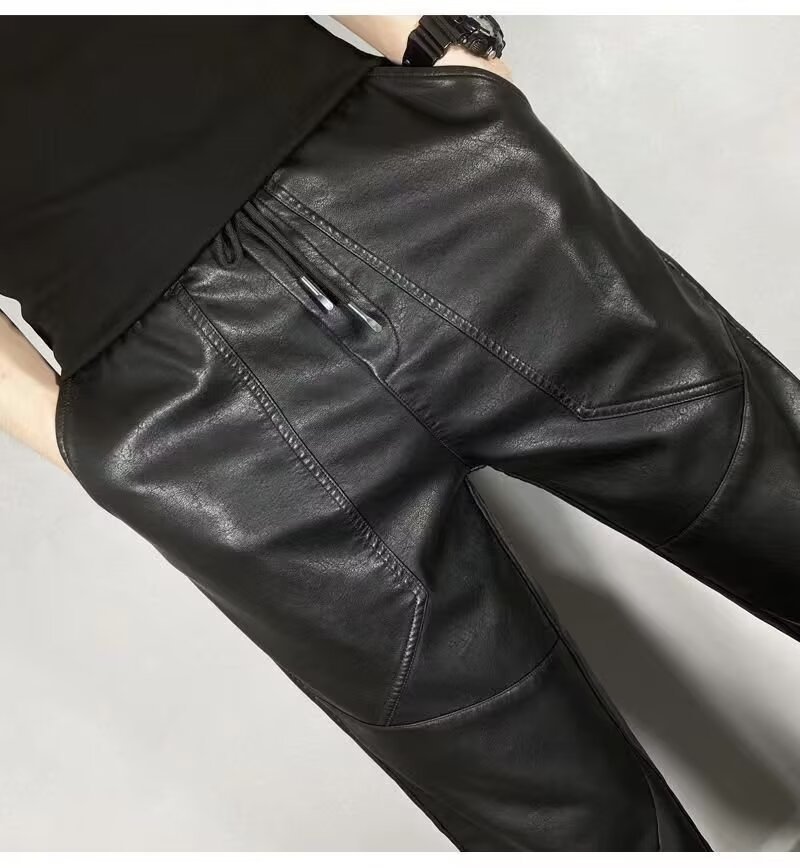 겨울 남자 기모 두꺼운 따뜻한 가죽 바지 오토바이 방풍 방수 가죽 바지 스트레치 캐주얼 따뜻한 스트레이트 바지