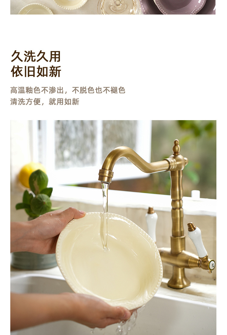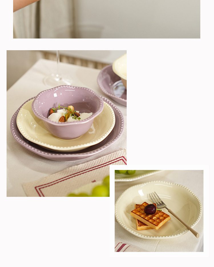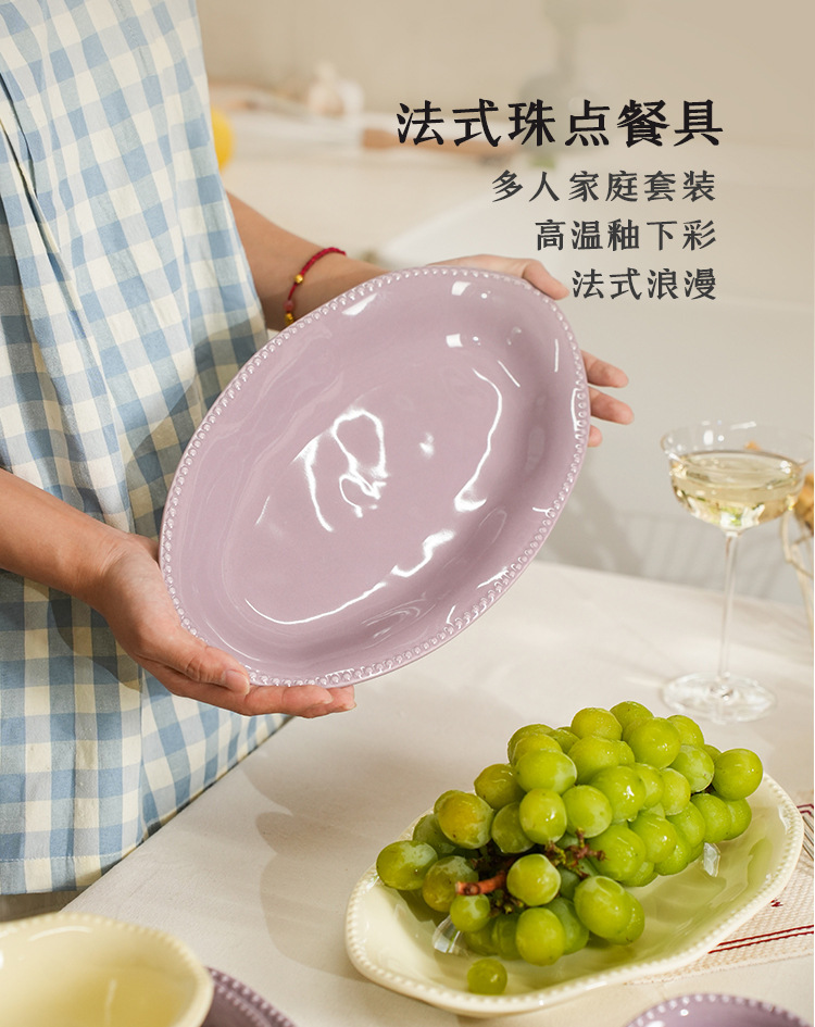 프랑스 스타일 고급 센스 디스크 크림 스타일 식기 세라믹 디너 플레이트 홈 2024 새로운 스타일 라이트 럭셔리 딥 플레이트 볶음 플레이트스토어 가기