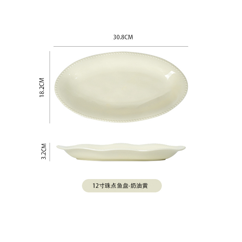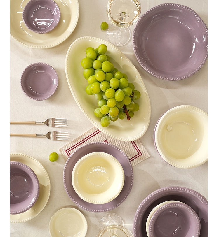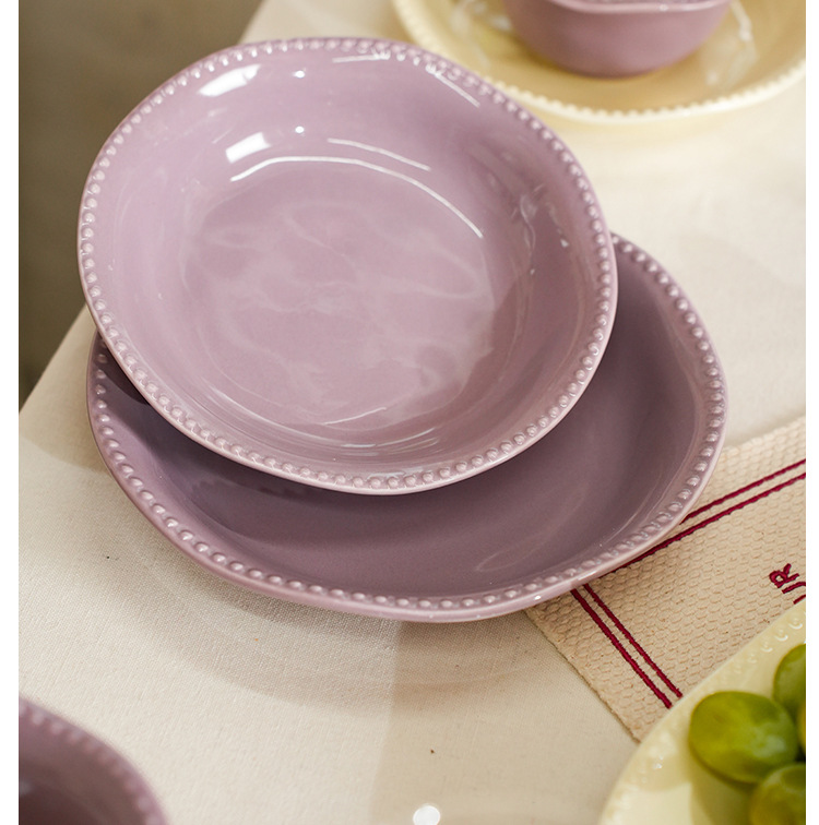 프랑스 스타일 고급 센스 디스크 크림 스타일 식기 세라믹 디너 플레이트 홈 2024 새로운 스타일 라이트 럭셔리 딥 플레이트 볶음 플레이트