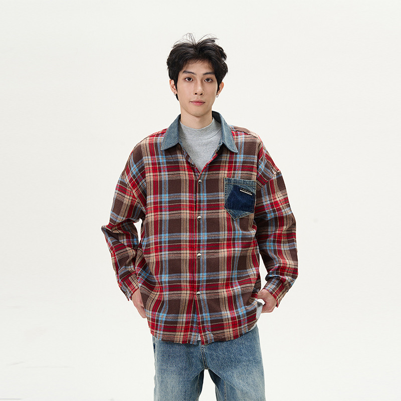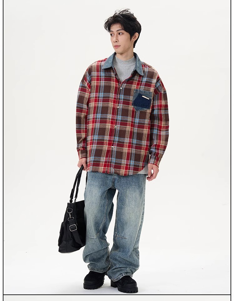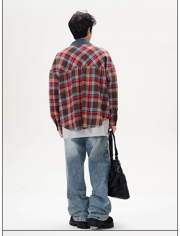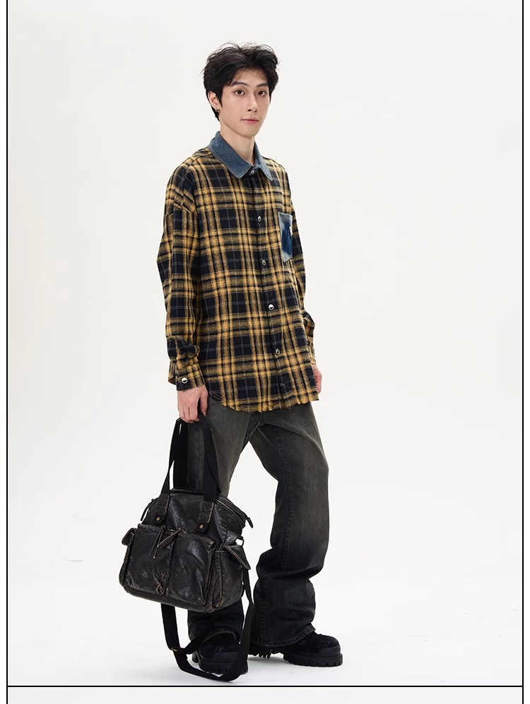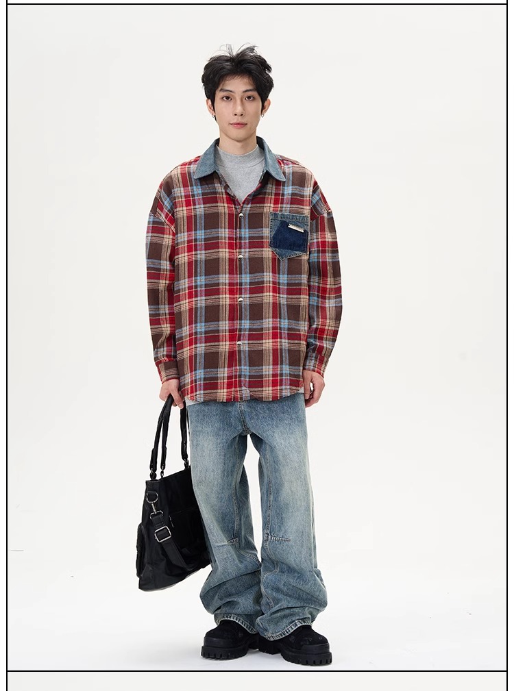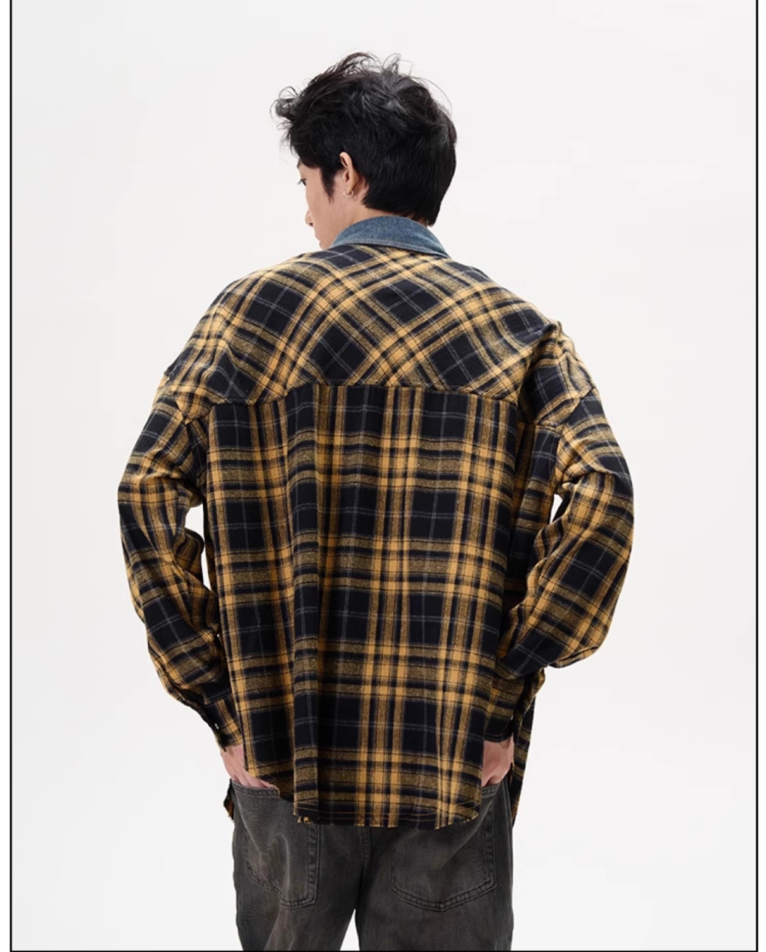 아메리칸 스타일 레트로 격자 무늬 셔츠 남자의 봄과 가을 새로운 틈새 하이 엔드 센스 루즈 패셔너블 브랜드 편안한 캐주얼 자켓 탑스토어 가기