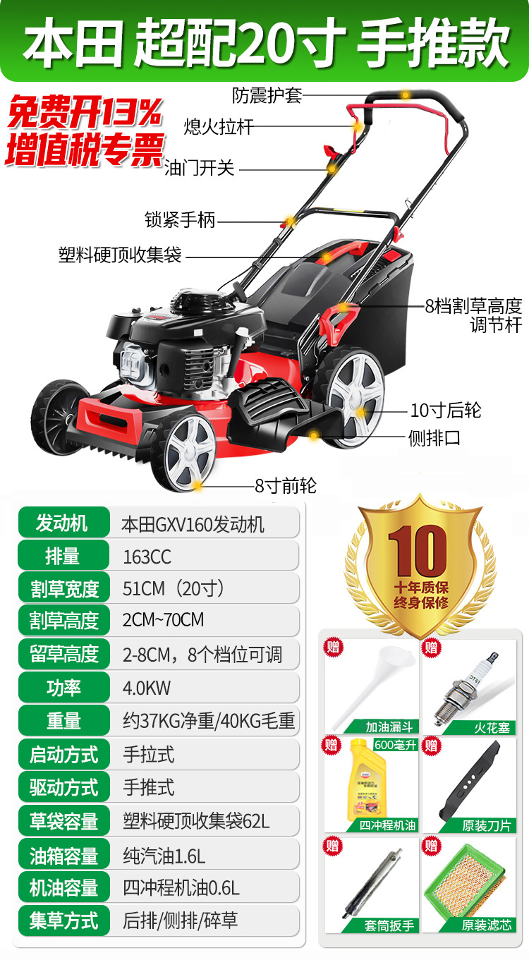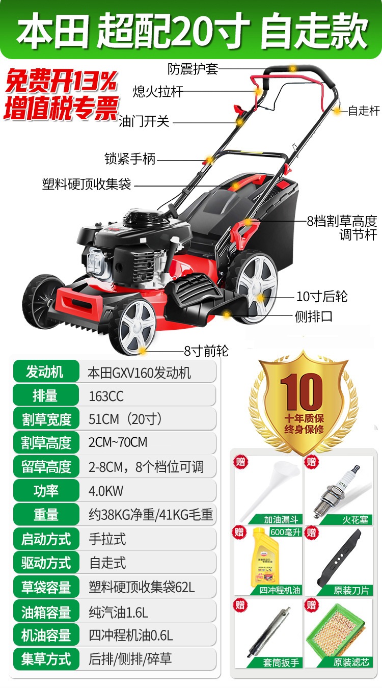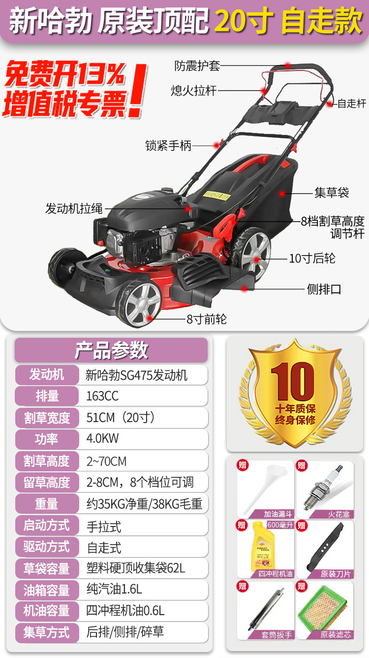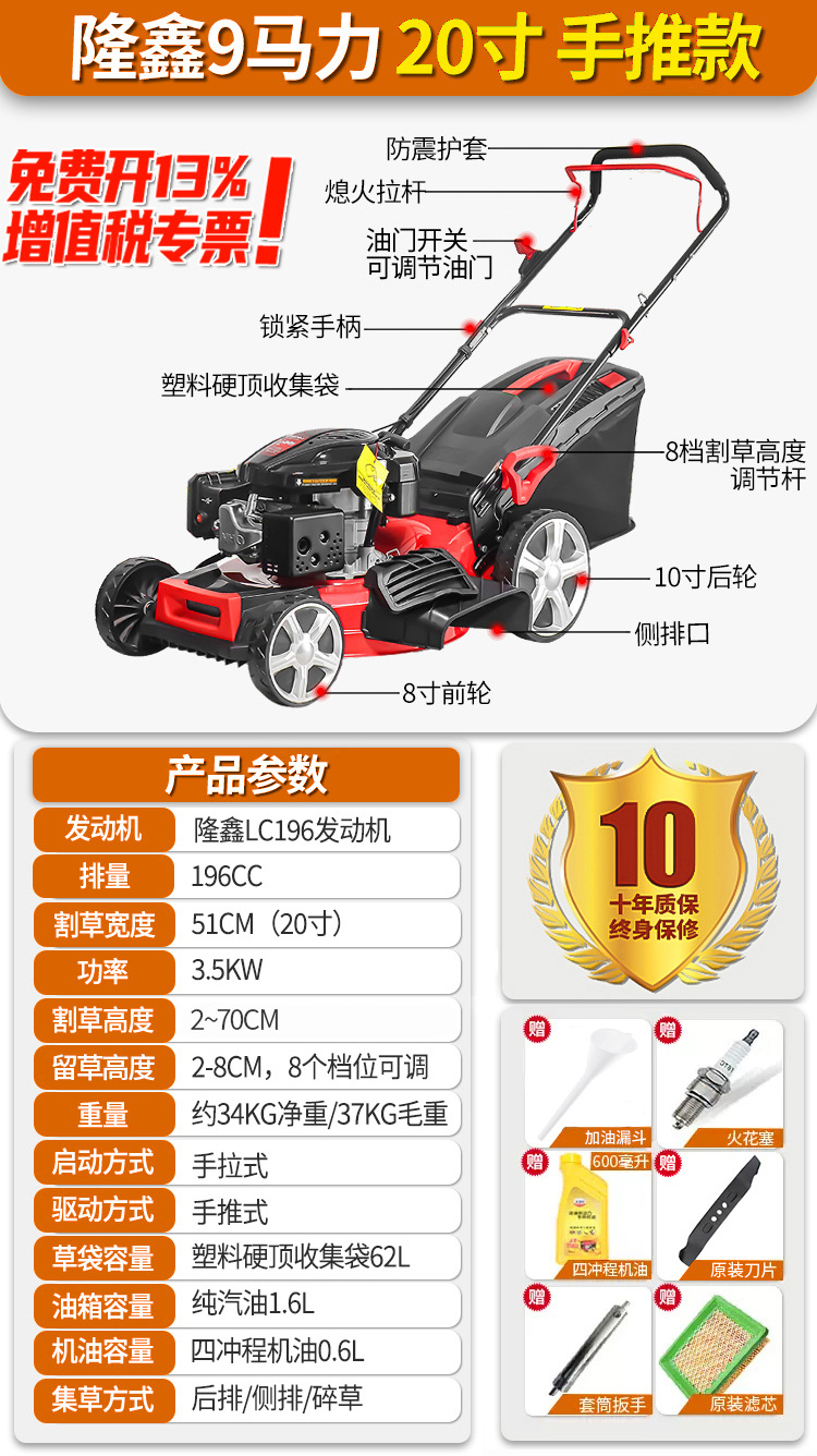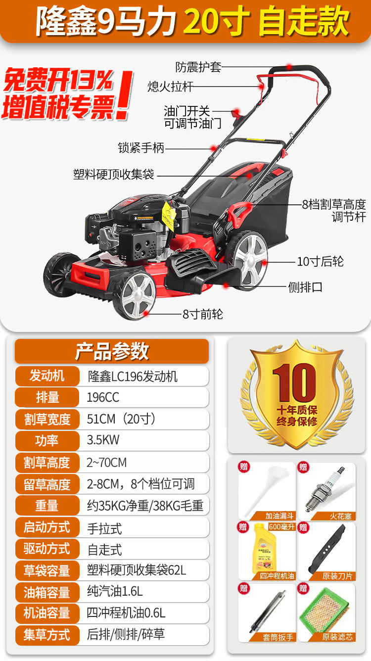 • New Half 9hp 20inch 자체 추진 두꺼운 강철 바닥이 21inch 로 업그레이드되었으며 가격은 변경되지 않습니다.
