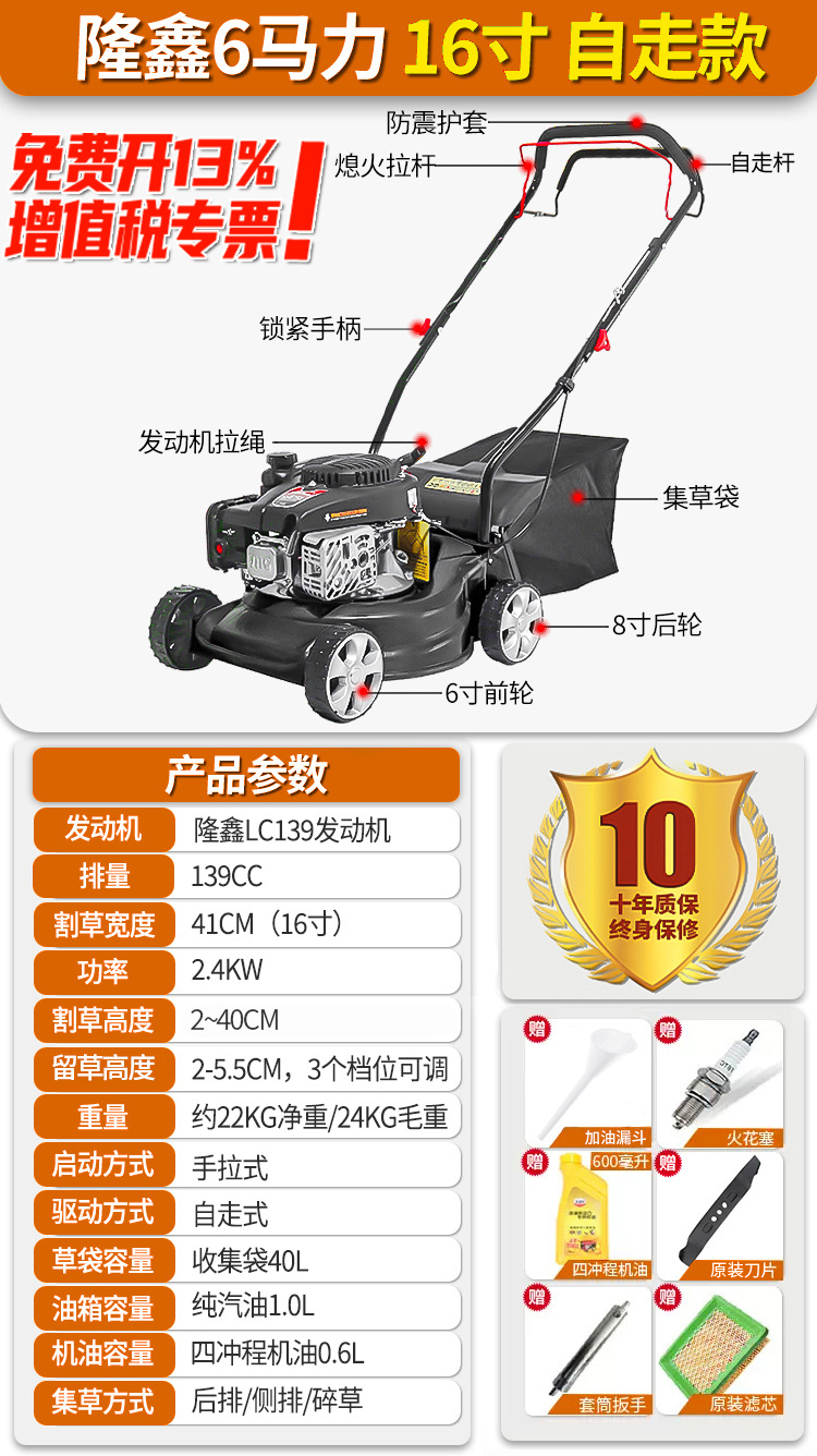 • Loncin 6 hp 16inch 철 섀시 자체 추진 [가정용]