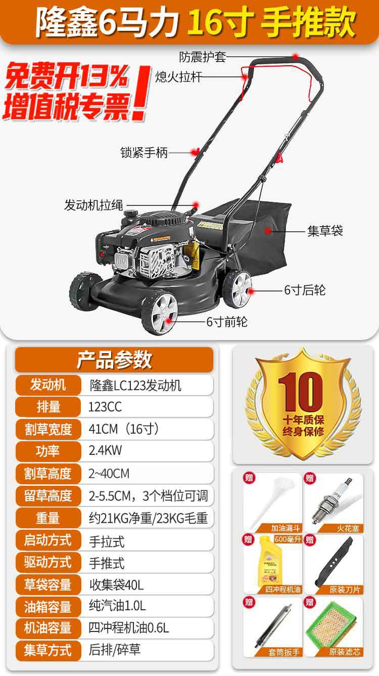 • Longxin 8hp 18inch 핸드 푸시 모델 두꺼운 강철 바닥