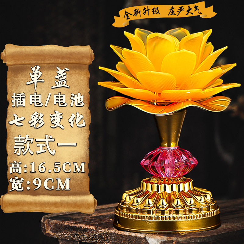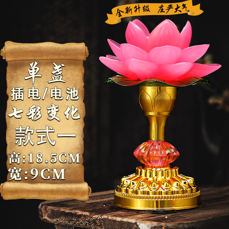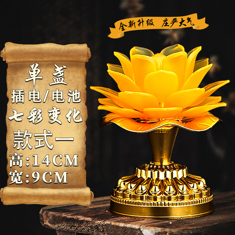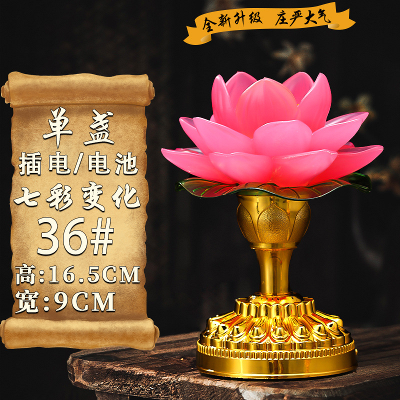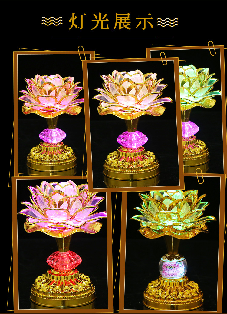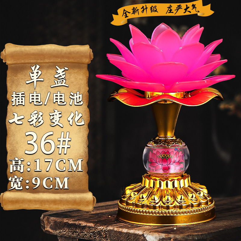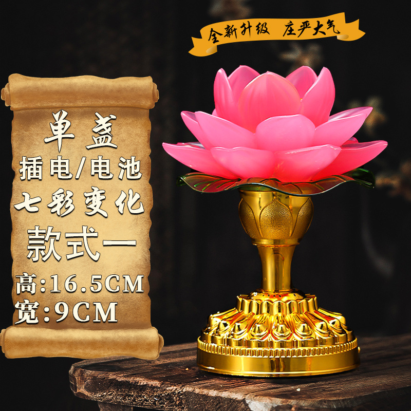 새로운 연꽃 램프, 부처님 램프, 다채로운 가정용 LED 플러그인 불교 사원 램프, 부처님 앞의 연꽃 램프, Changchangling스토어 가기