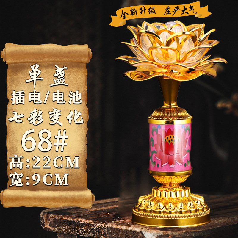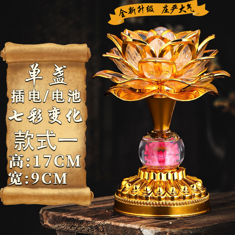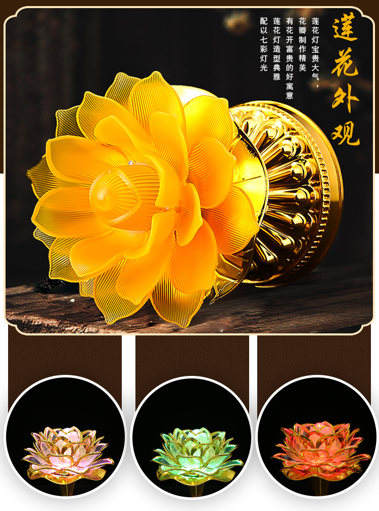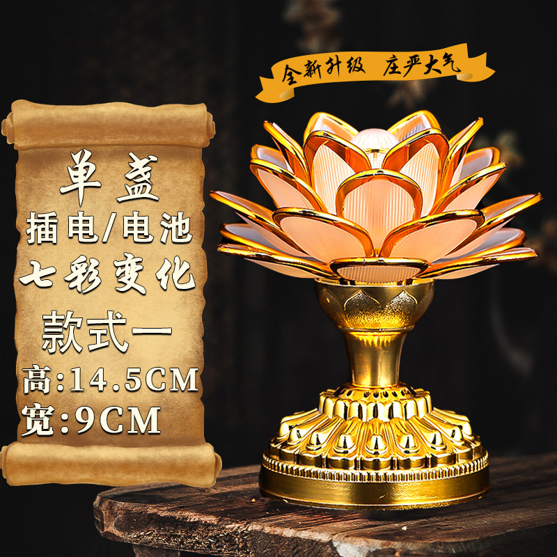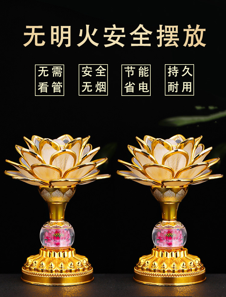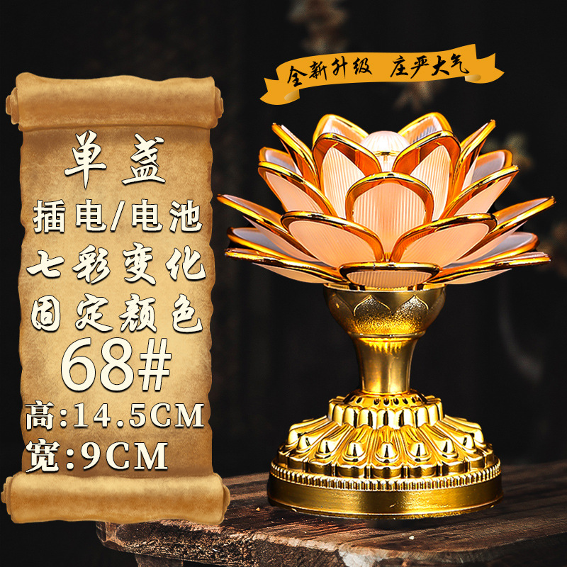 새로운 연꽃 램프, 부처님 램프, 다채로운 가정용 LED 플러그인 불교 사원 램프, 부처님 앞의 연꽃 램프, Changchangling스토어 가기