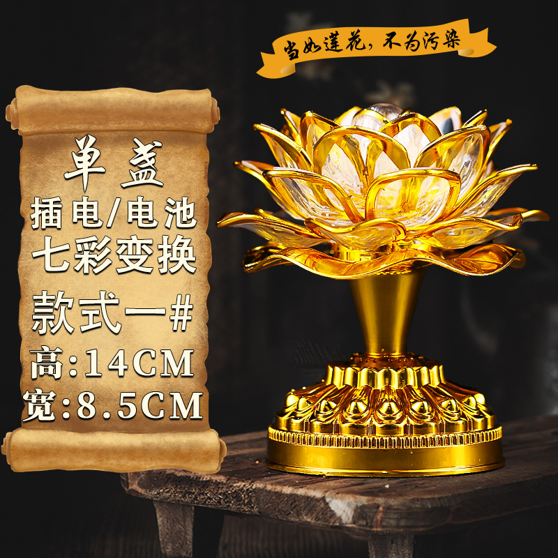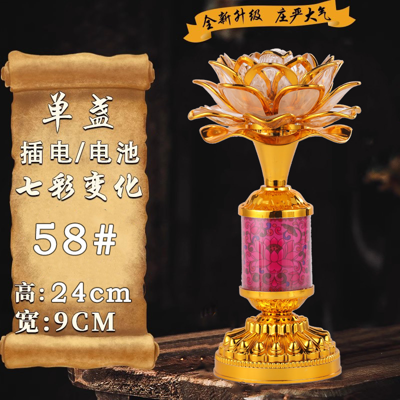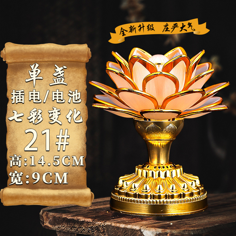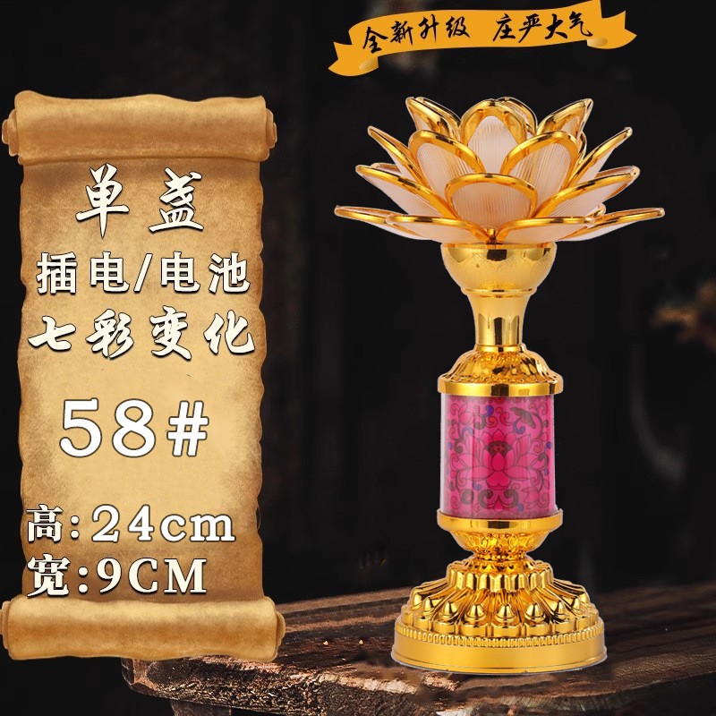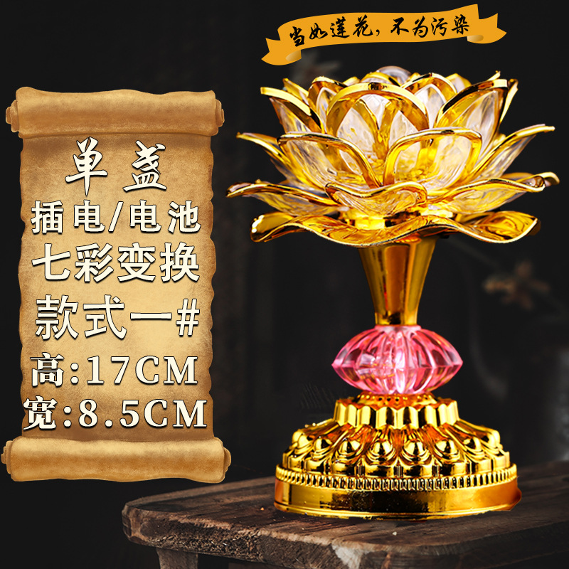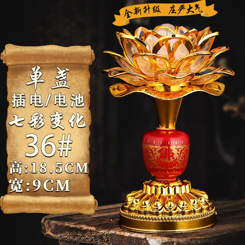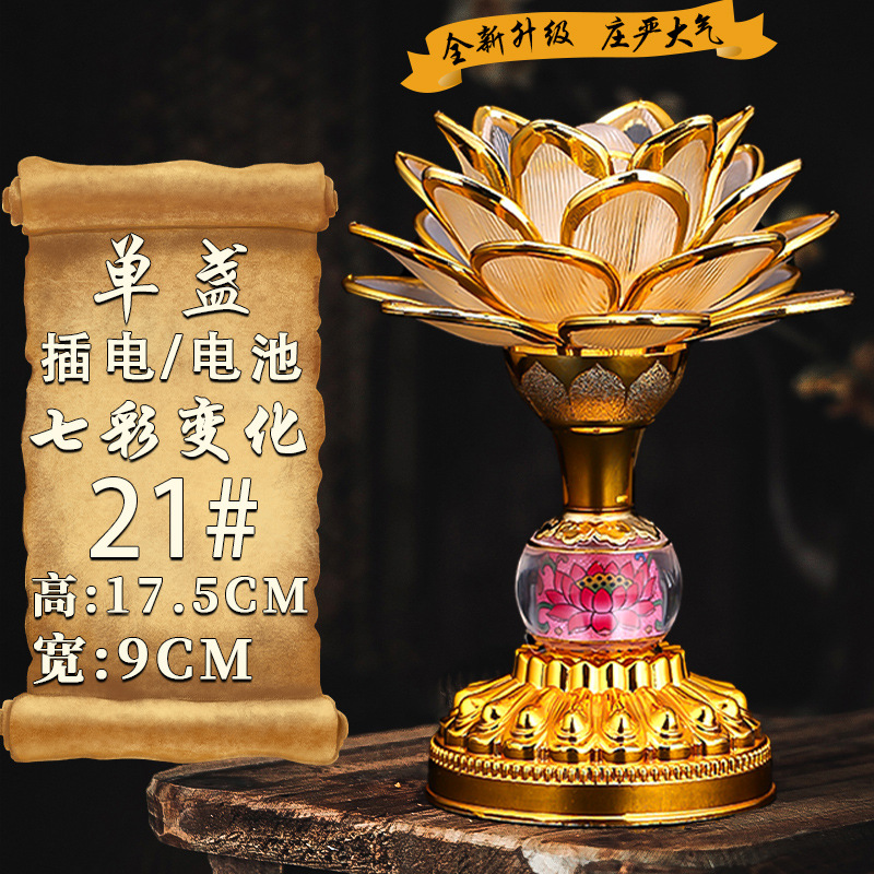 새로운 연꽃 램프, 부처님 램프, 다채로운 가정용 LED 플러그인 불교 사원 램프, 부처님 앞의 연꽃 램프, Changchangling스토어 가기