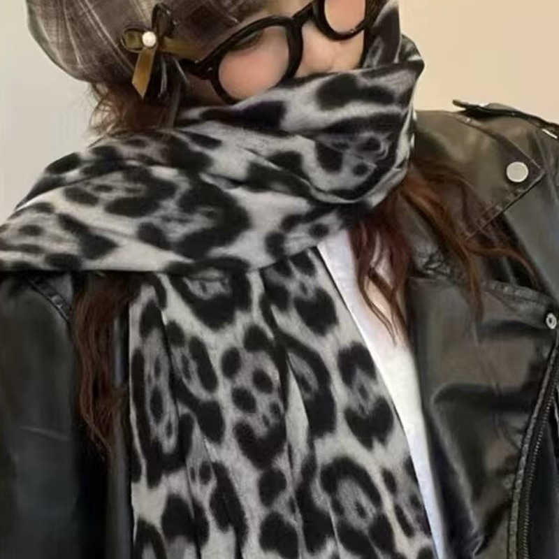 2024 겨울 새로운 스타일 목도리 여성의 하이 엔드 감각 외부 봄과 가을 올 매치 패션 레오파드 무늬 냉장 따뜻한 술 스카프스토어 가기
