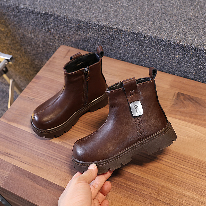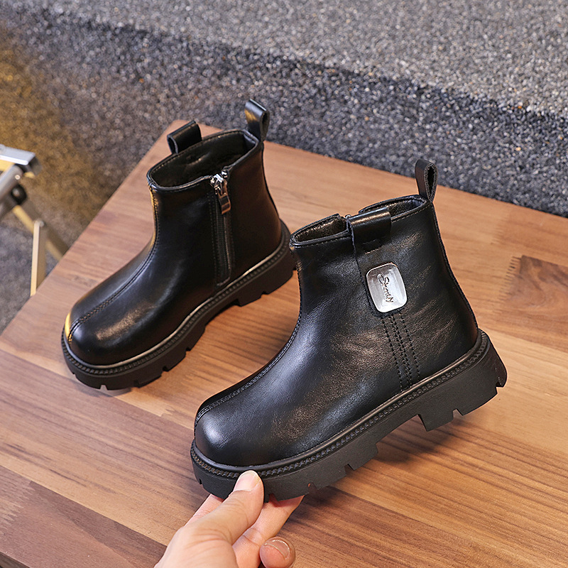 남녀 아동용 2025년 가을 신상품 아동용 숏부츠 한국 스타일 패션 심플 다용도 여아 가죽 부츠 라운드 토 면 부츠스토어 가기