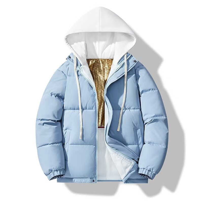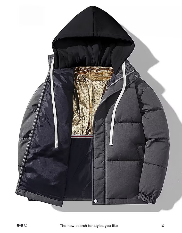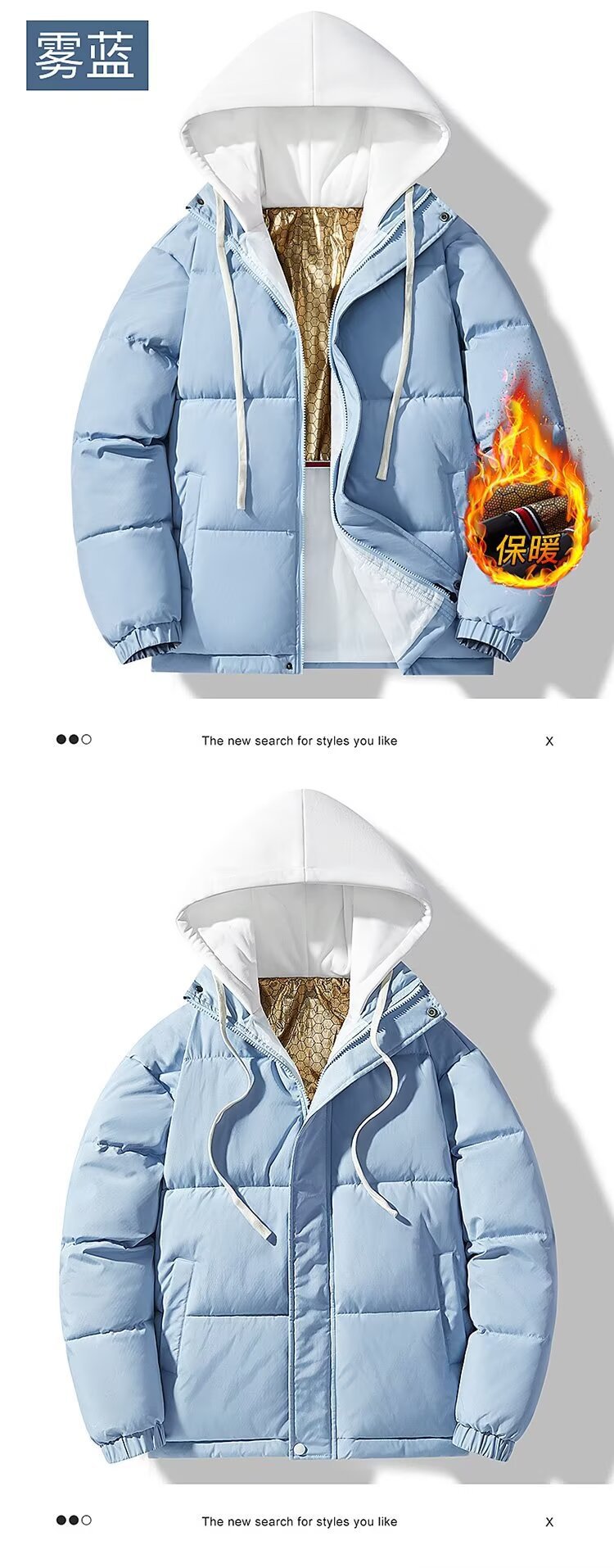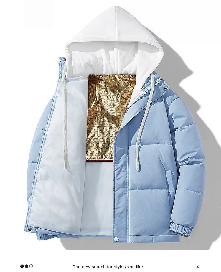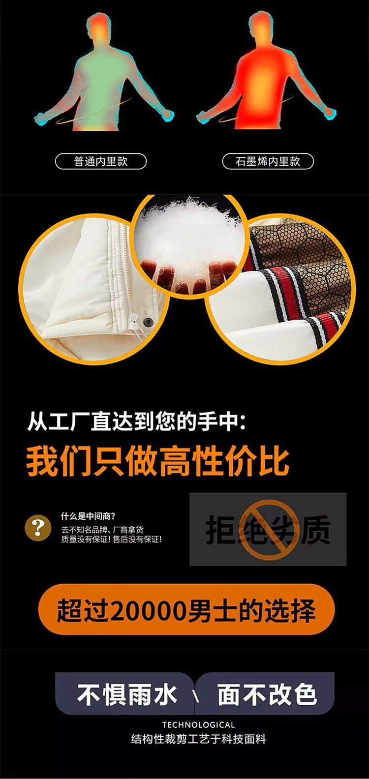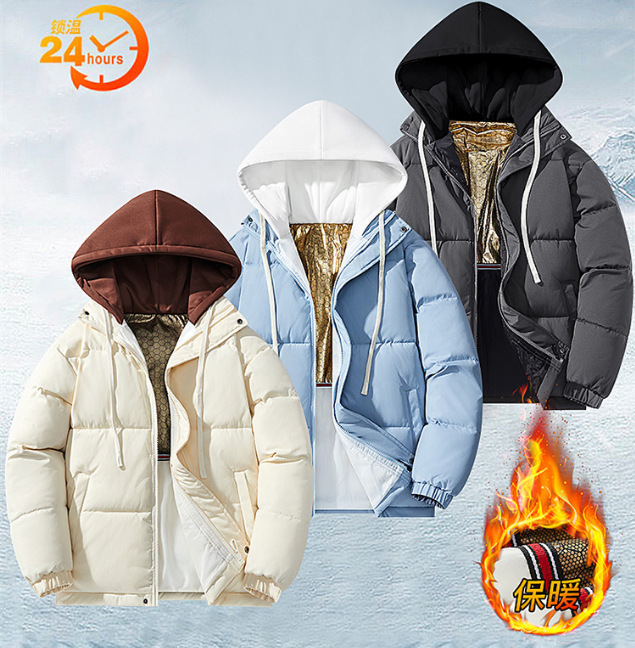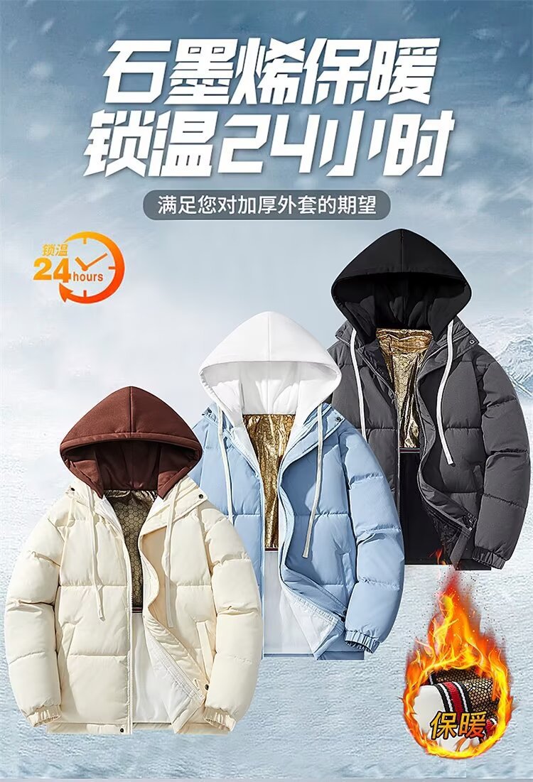 남성과 여성을위한 새로운 그래 핀 자체 가열 면 패딩 재킷 겨울 코트 따뜻한 두꺼운 가짜 2 피스 빵 코트 코트스토어 가기
