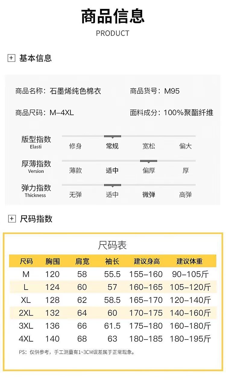 • 4XL 사이즈는 85-100kg 이내를 권장합니다.
