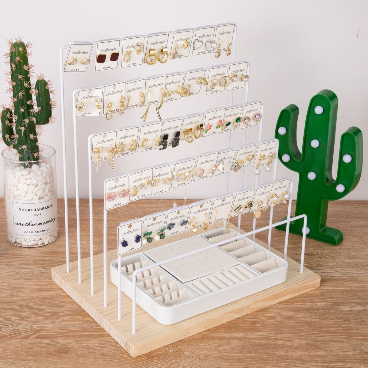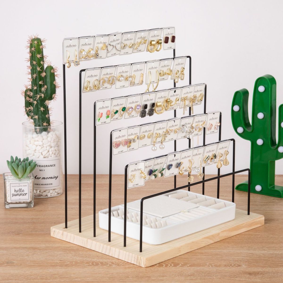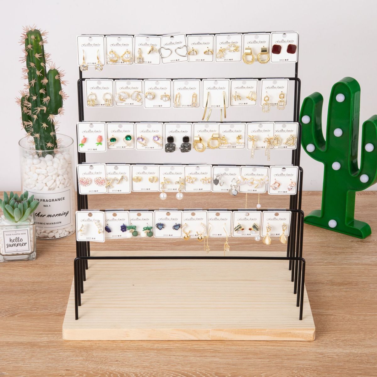 새로운 단철 귀걸이 디스플레이 랙 홈 귀걸이 교수형 골판지 보석 랙 귀걸이 및 귀 클립 라이브 디스플레이 레이 레드스토어 가기