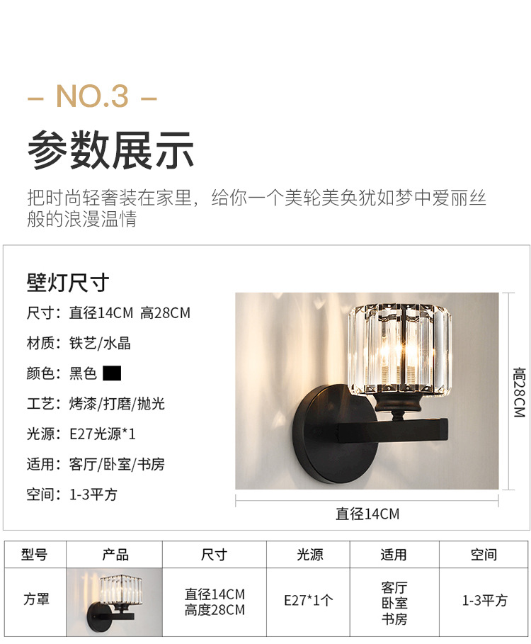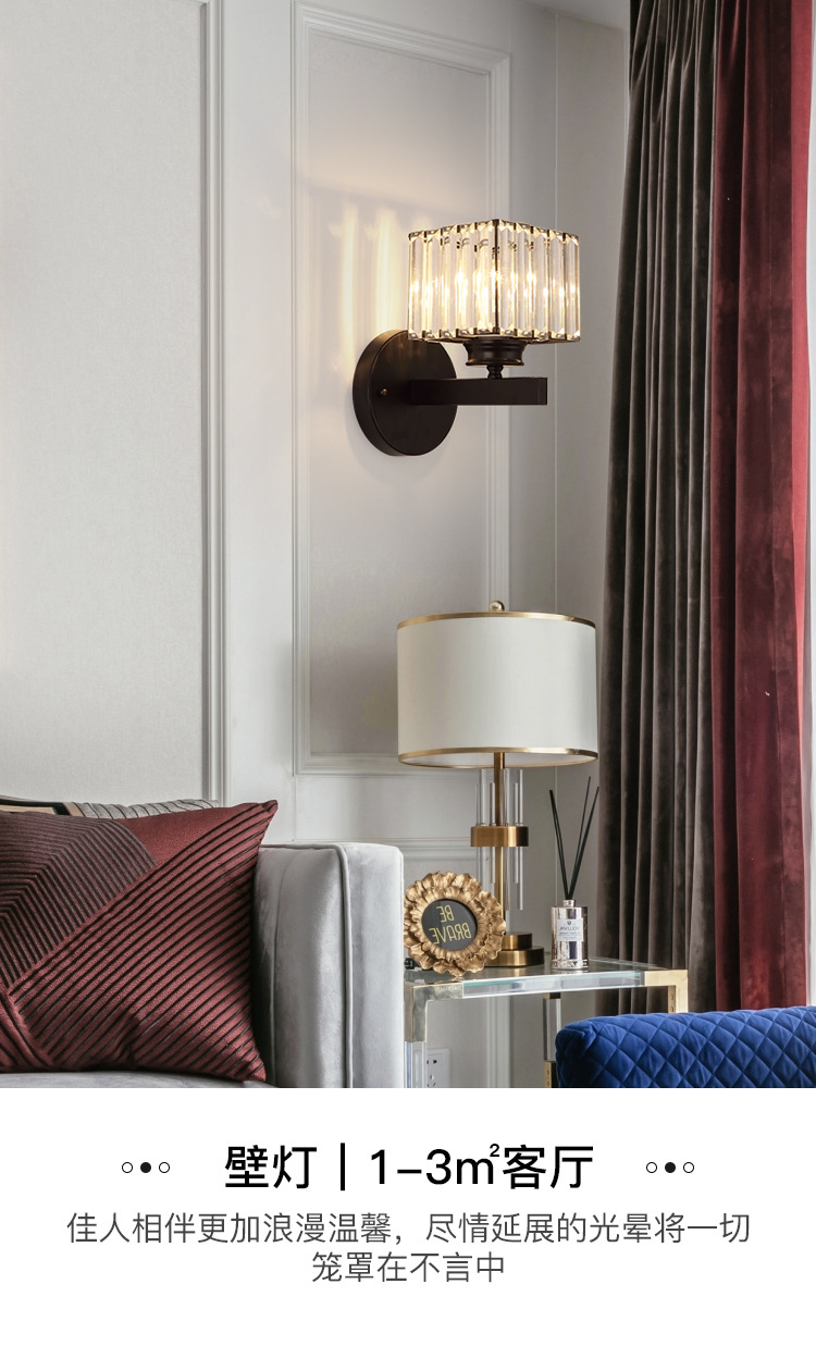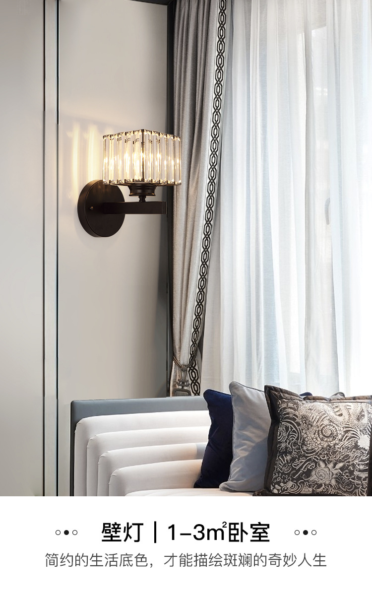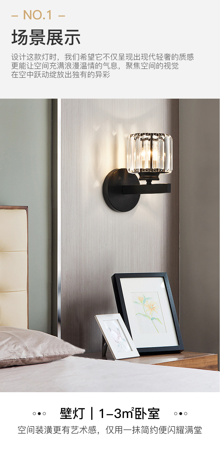 现代轻奢水晶灯卧室床头灯简约大气客厅壁灯网红极简主卧房间灯具
