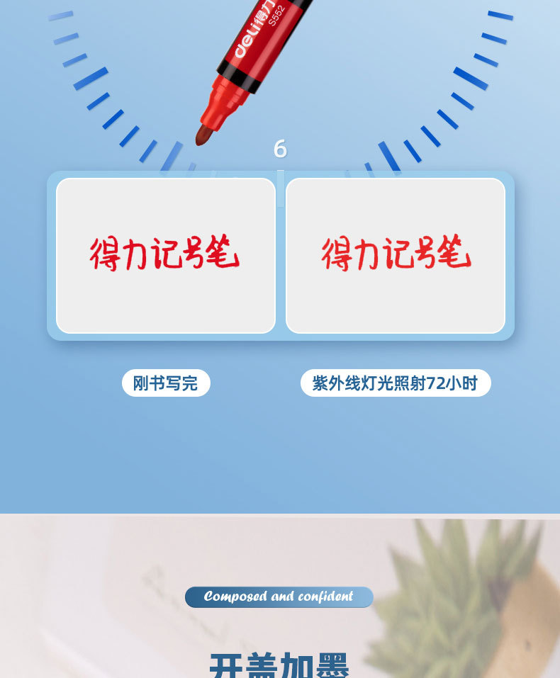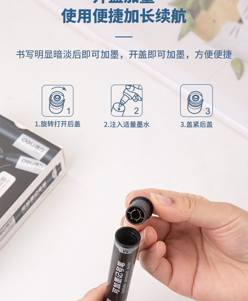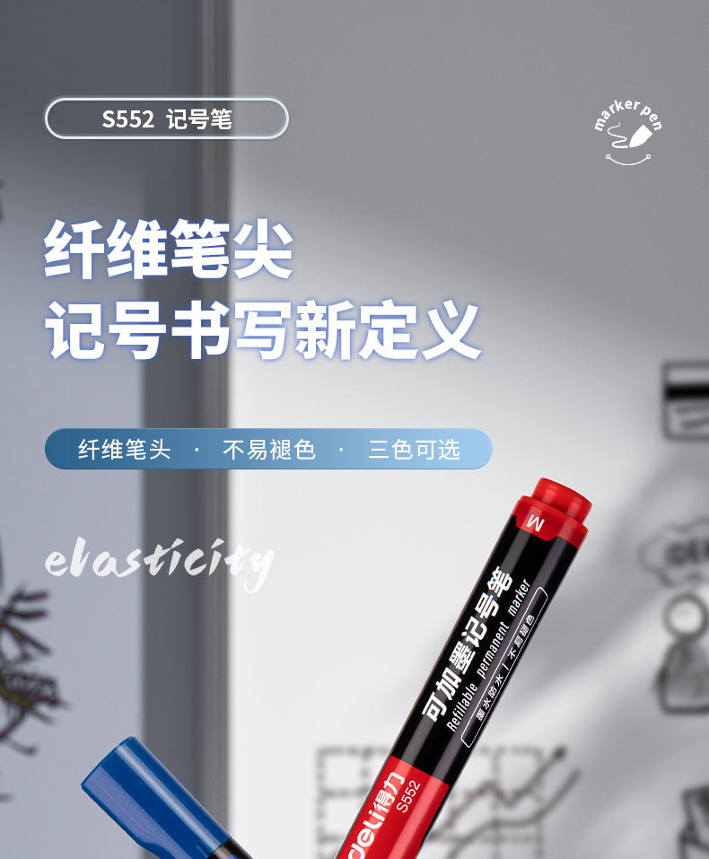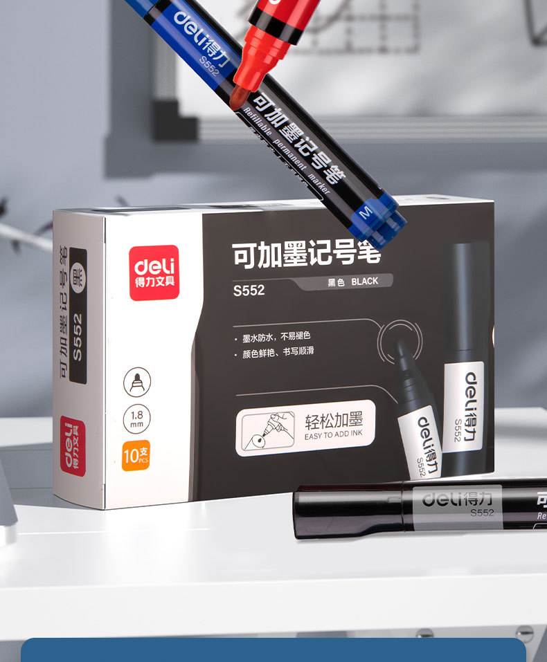 델리 S552 잉크 추가 마커 두꺼운 헤드 비 페이딩 s632 큰 머리 잉크 유성 마커스토어 가기