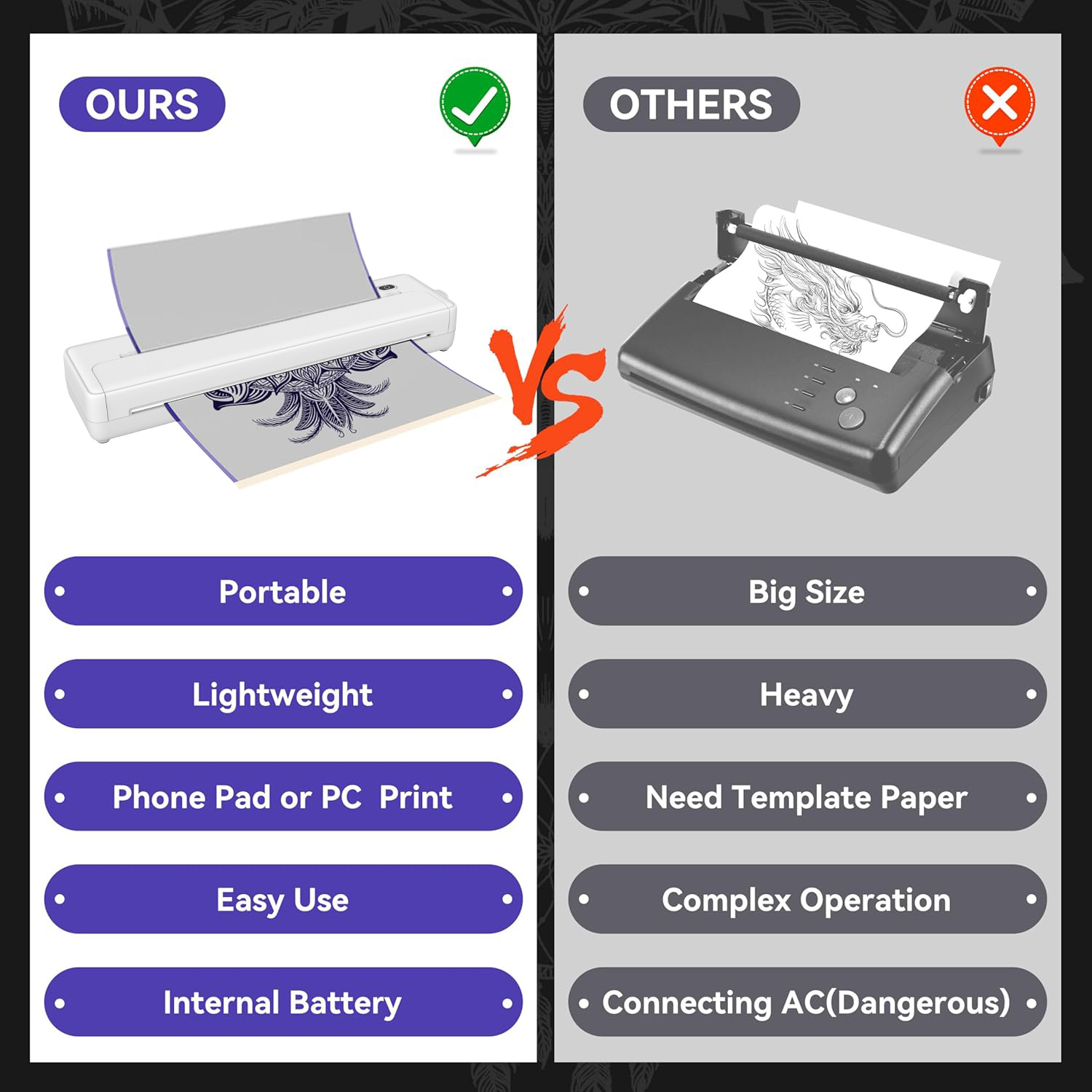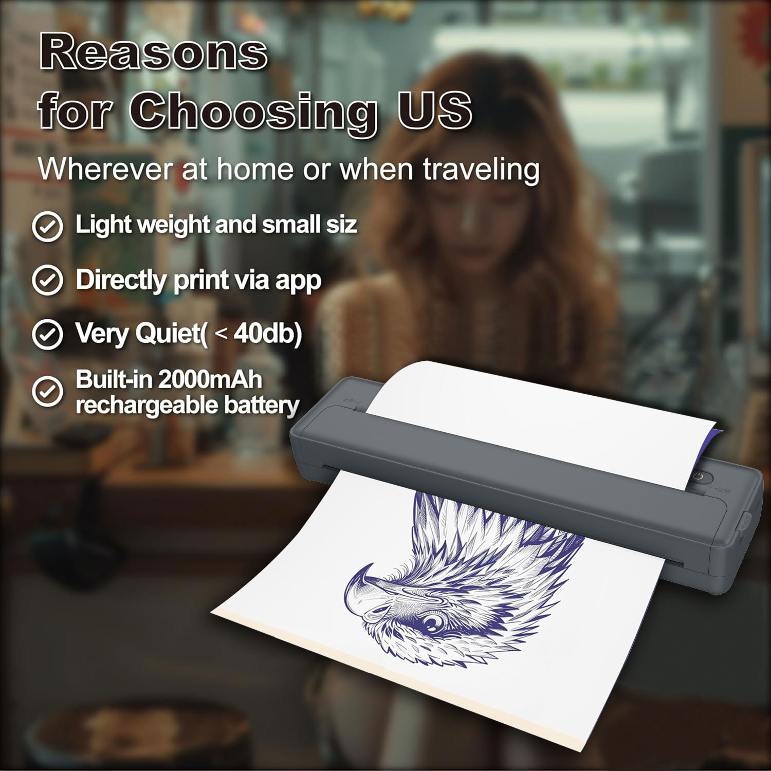 连接方式:蓝牙无线 USB电脑连接打印 无墨黑白打印